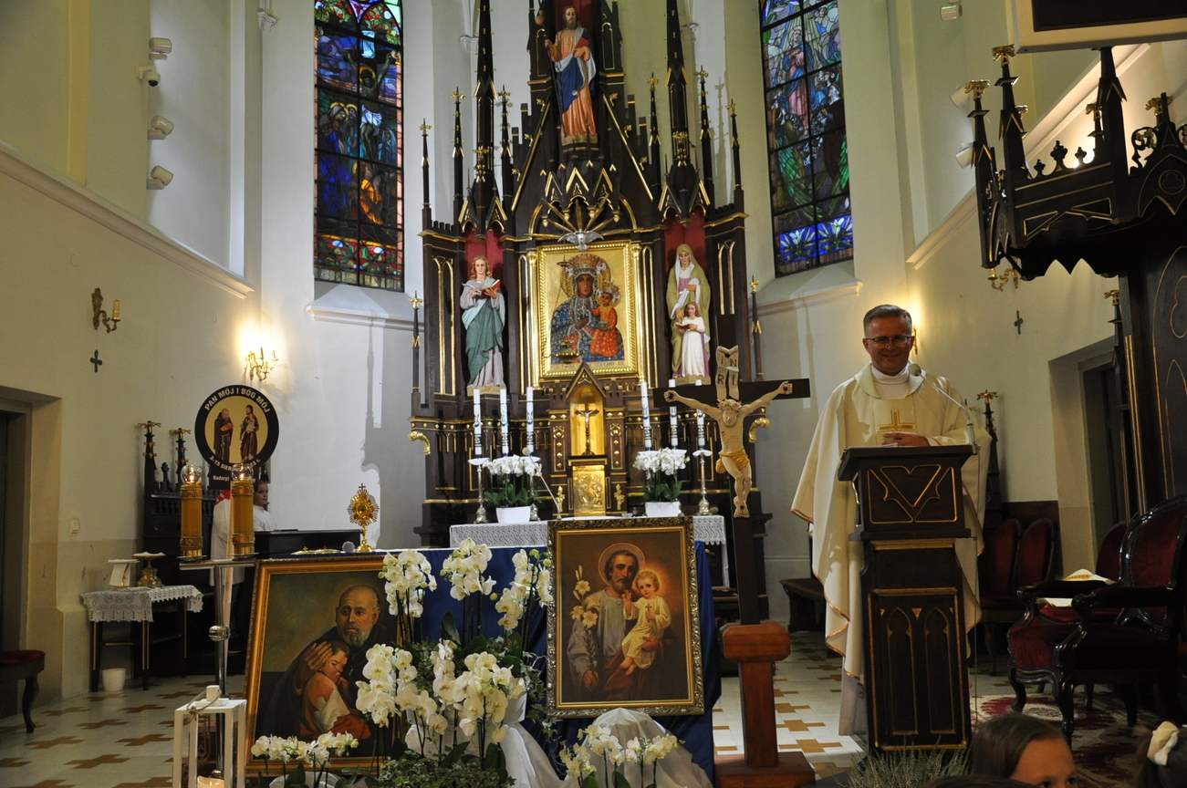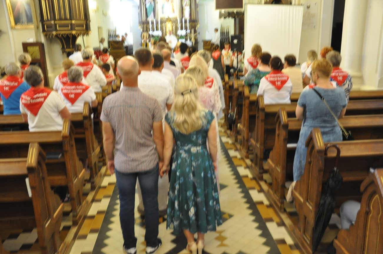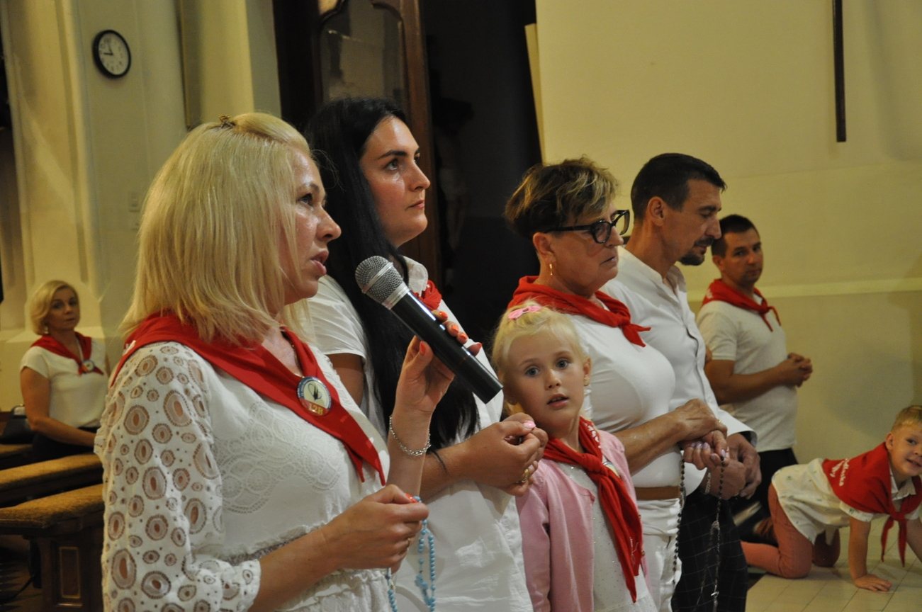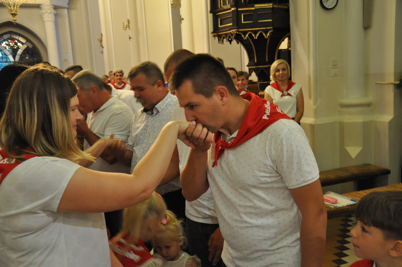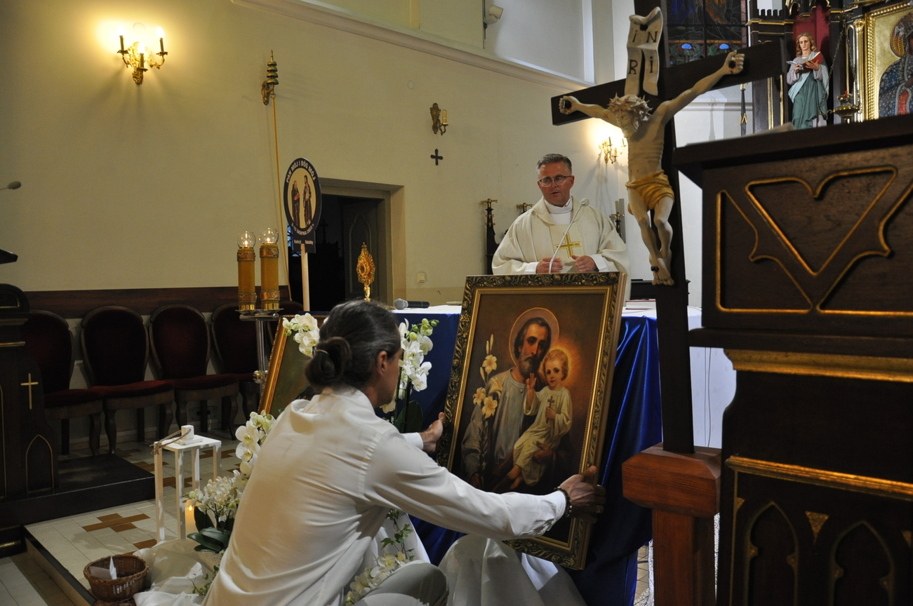Czwarty dzień pielgrzymki przebiegał pod hasłem RODZINA. Szczególnym patronem  dnia dzisiejszego był Św. Józef, którego wizerunek w uroczystej procesji do ołtarza  przynieśli przedstawiciele mężów i ojców naszej rodziny parafialnej. Małżonkowie przed Bogiem i w obecności swoich dzieci odnowili przysięgę małżeńską i jak to było w dniu ślubu, razem podeszli aby przyjąć Pana Jezusa do swego serca i życia rodzinnego. A rozważając tajemnice Różańca Świętego dziękowali za otrzymane łaski i prosili o błogosławieństwo na dalsze lata.