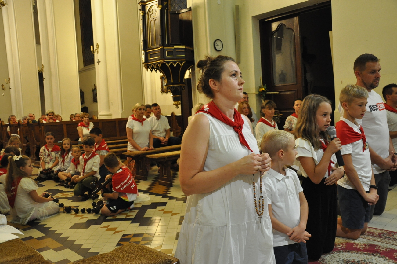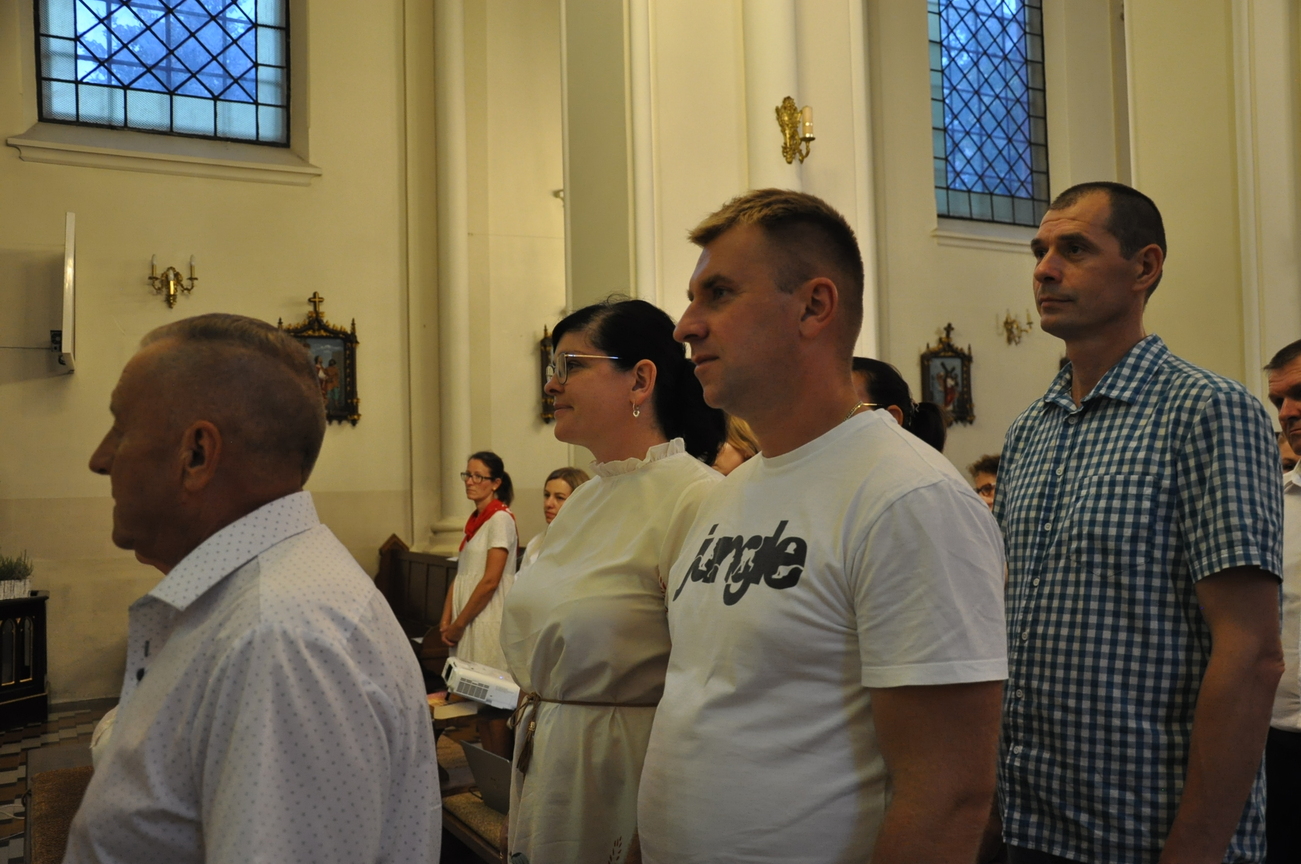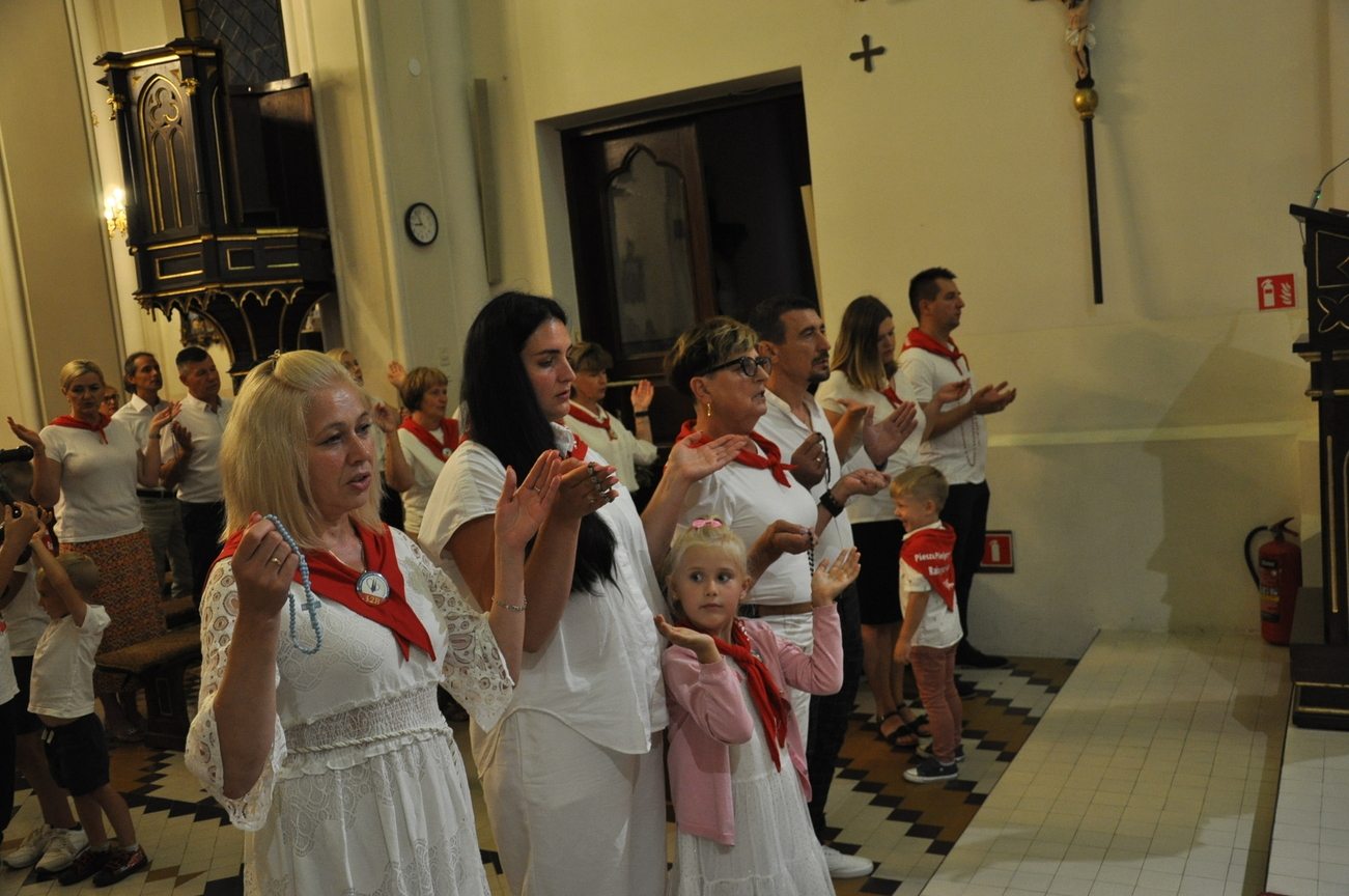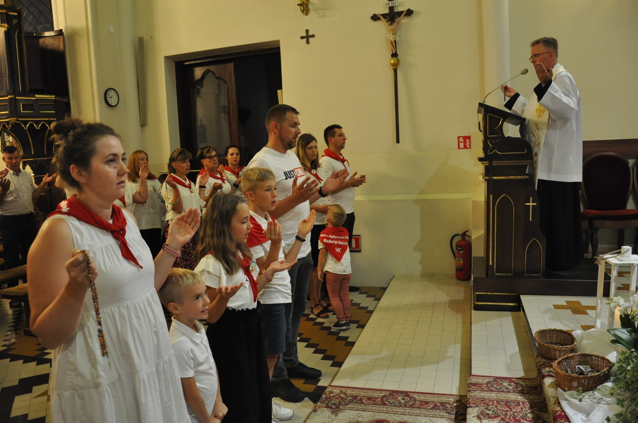 Czwarty dzień pielgrzymki przebiegał pod hasłem RODZINA. Szczególnym patronem  dnia dzisiejszego był Św. Józef, którego wizerunek w uroczystej procesji do ołtarza  przynieśli przedstawiciele mężów i ojców naszej rodziny parafialnej. Małżonkowie przed Bogiem i w obecności swoich dzieci odnowili przysięgę małżeńską i jak to było w dniu ślubu, razem podeszli aby przyjąć Pana Jezusa do swego serca i życia rodzinnego. A rozważając tajemnice Różańca Świętego dziękowali za otrzymane łaski i prosili o błogosławieństwo na dalsze lata.