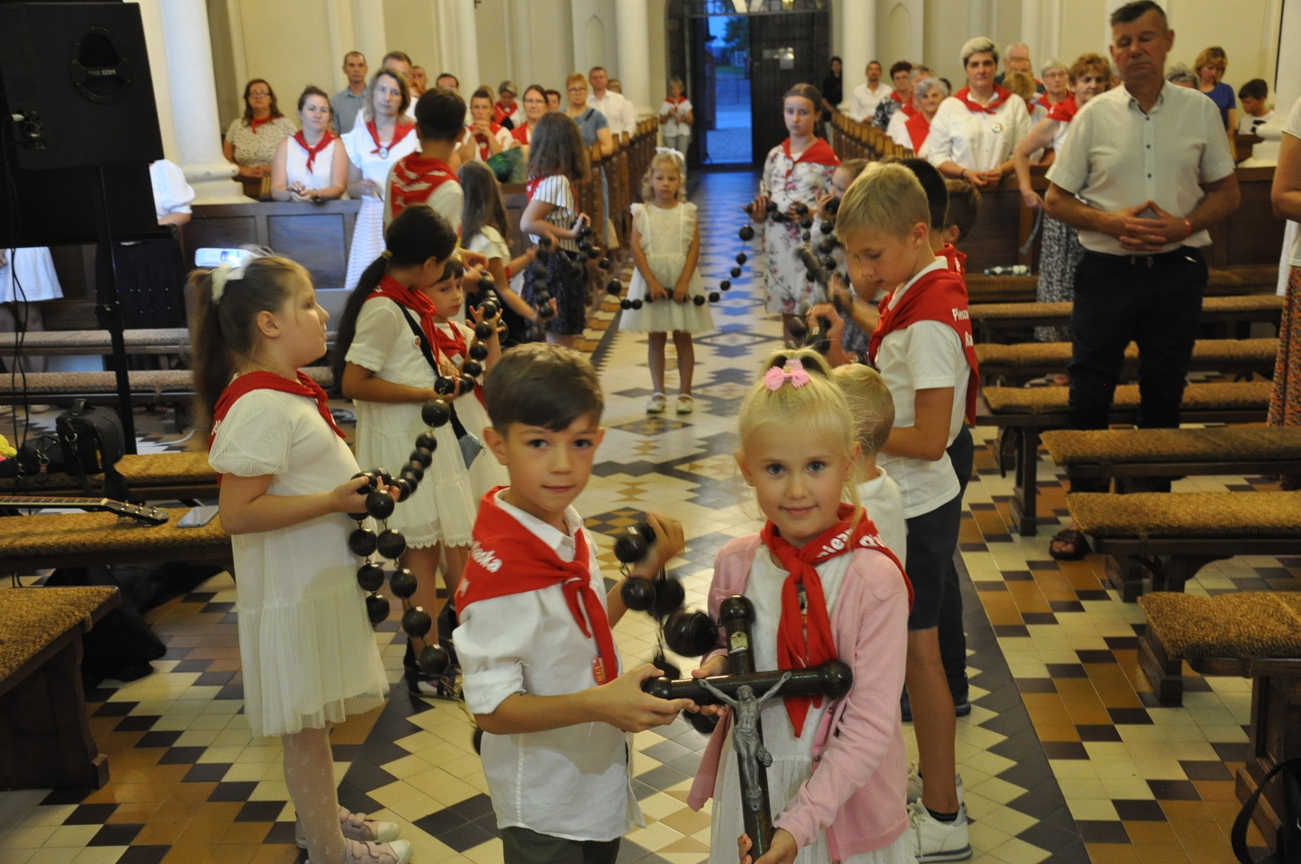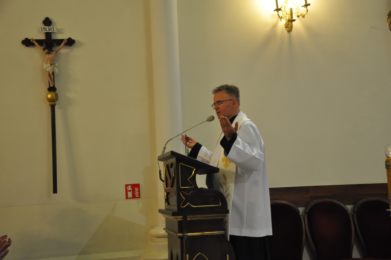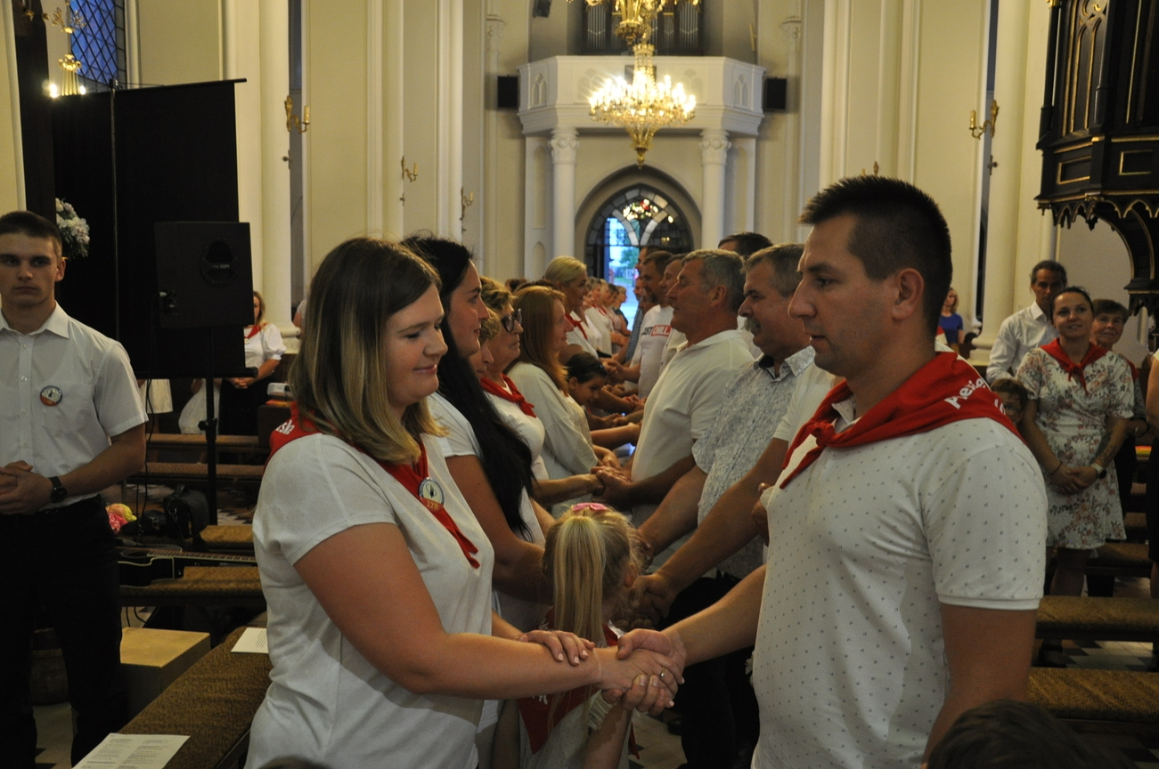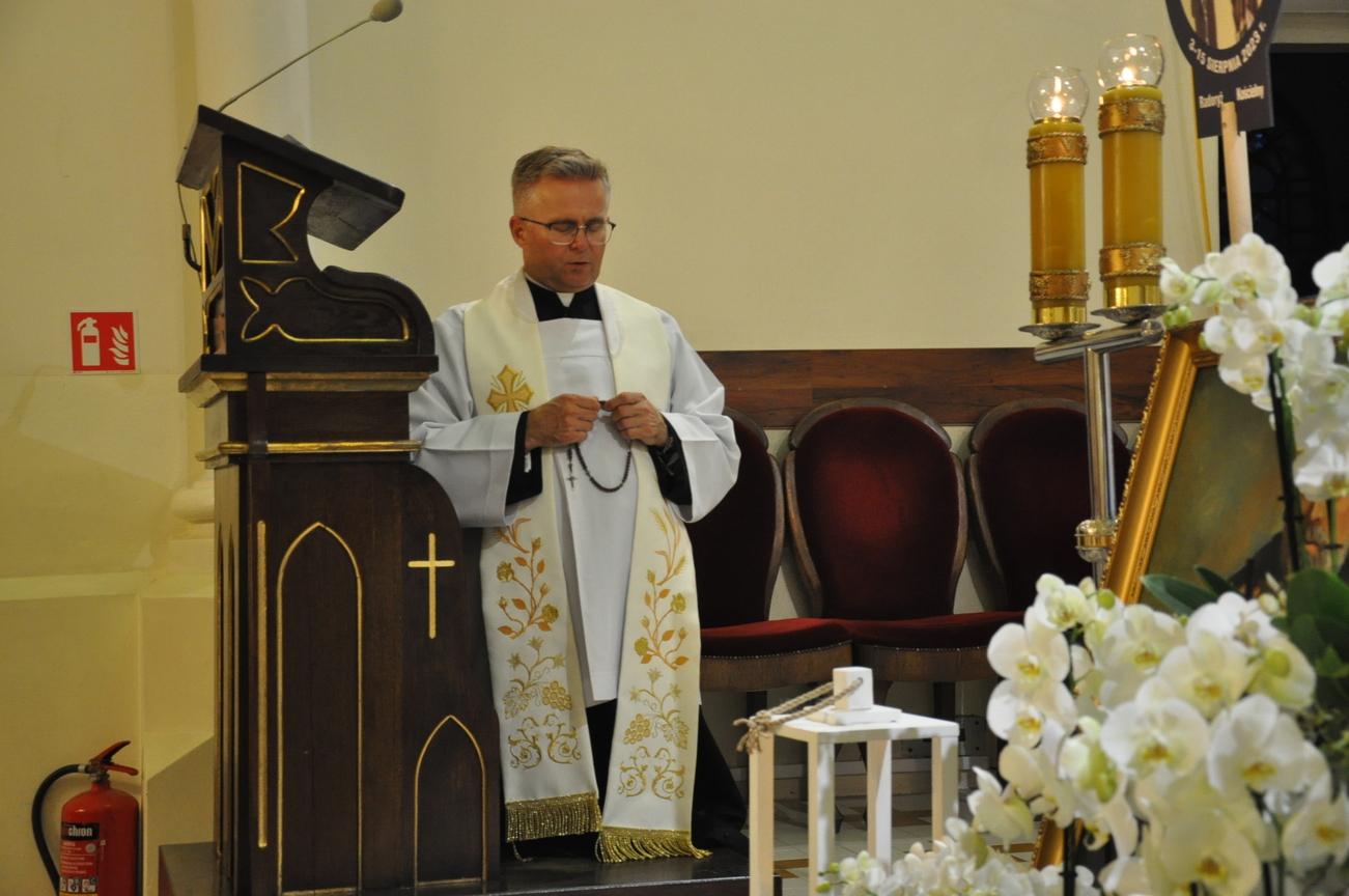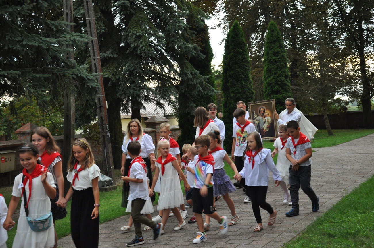 Czwarty dzień pielgrzymki przebiegał pod hasłem RODZINA. Szczególnym patronem  dnia dzisiejszego był Św. Józef, którego wizerunek w uroczystej procesji do ołtarza  przynieśli przedstawiciele mężów i ojców naszej rodziny parafialnej. Małżonkowie przed Bogiem i w obecności swoich dzieci odnowili przysięgę małżeńską i jak to było w dniu ślubu, razem podeszli aby przyjąć Pana Jezusa do swego serca i życia rodzinnego. A rozważając tajemnice Różańca Świętego dziękowali za otrzymane łaski i prosili o błogosławieństwo na dalsze lata.