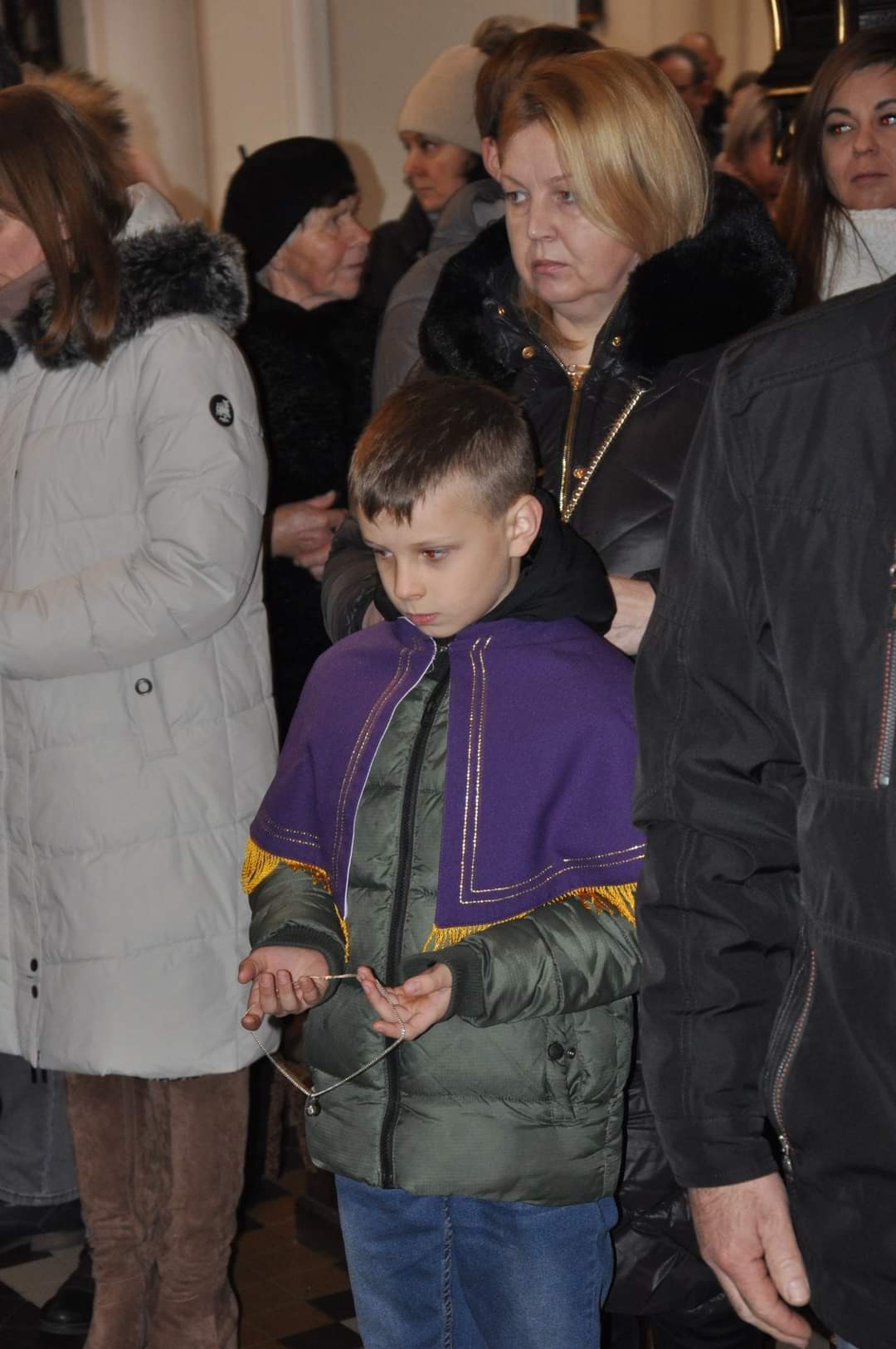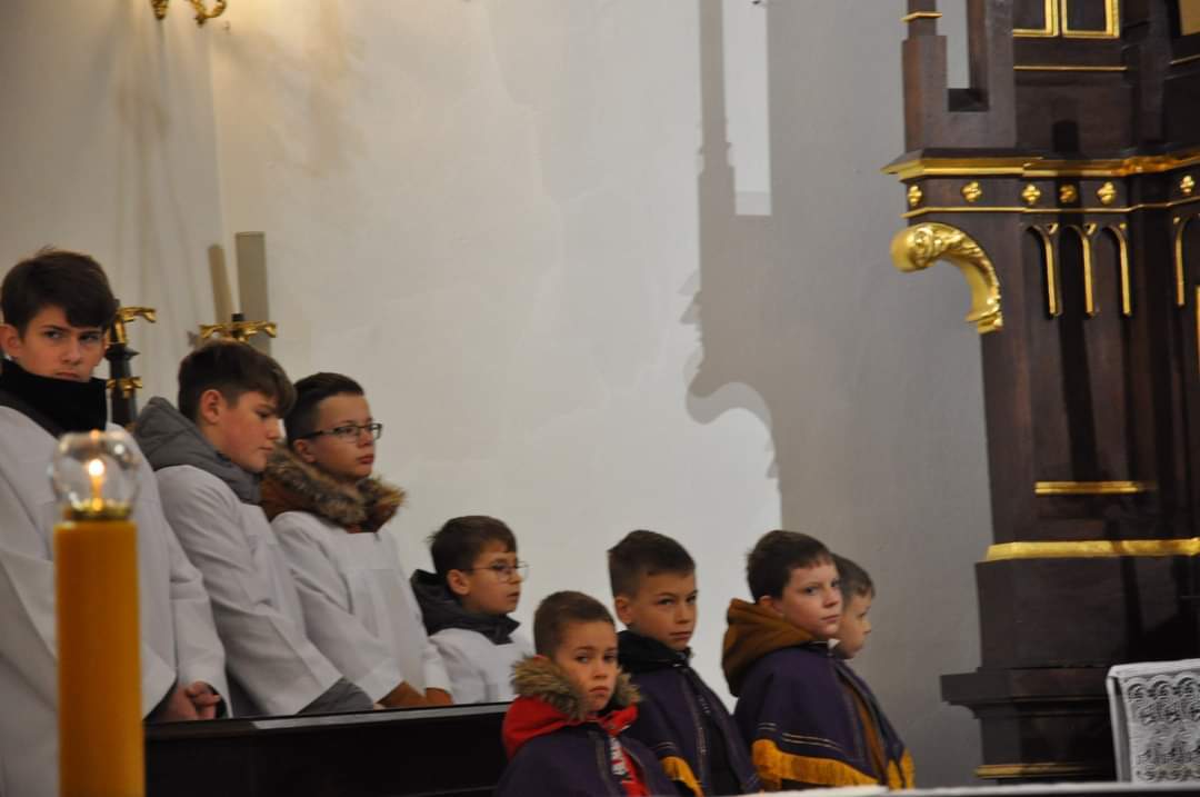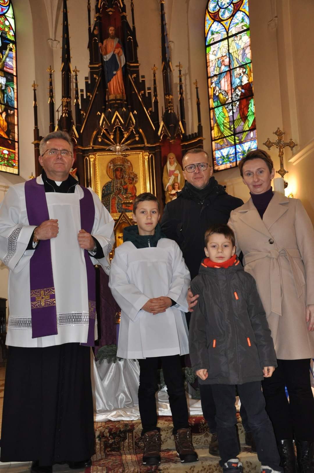 W czasie niedzielnej Eucharystii do grona ministrantów został włączony jeden z kandydatów - Dominik. Ksiądz celebrans poświęcił komżę ministrancką, a rodzice Dominika, pomogli mu włożyć strój służby przy ołtarzu oraz pobłogosławili na lata trwaniu przy ołtarzu.