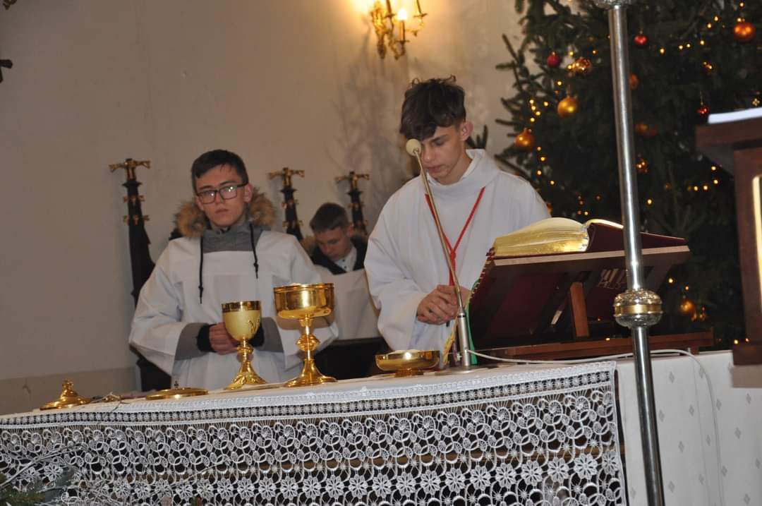 Każdego roku uroczysta Msza święta Pasterka wzrusza serca, nie inaczej było 24 grudnia 2023 roku. Poprzedzona  kolędowaniem przygotowanym przez młodzież zrzeszoną w KSM- pięknie wprowadziła parafian i gości licznie zebranych w radoryskiej świątyni w wyjątkowy nastrój celebrowania Bożego Narodzenia.