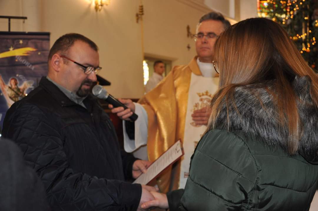 Podczas Mszy świętych o godzinie 10 oraz o godzinie 12 małżonkowie odnowili przysięgę małżeńską. Homilia skłaniała nas do pochylenie się nad pytaniem: CZY W CENTRUM NASZEGO ŻYCIA RODZINNEGO JEST JEZUS?? Tak było w Rodzinie z Nazaretu. Nie złamały ich żadne troski - ani konieczność ucieczki do obcego kraju, ani trudy dnia codziennego, ani bolesne słowa i zdrady bliskich osób. Ale oni pokazują nam dziś jak żyć: UFAĆ BOGU WE WSZYTSKIM, tym co dobre i co trudne. Po homilii przedstawiciel mężów oraz przedstawicielka żon odczytali poruszające treści. Oto fragment: