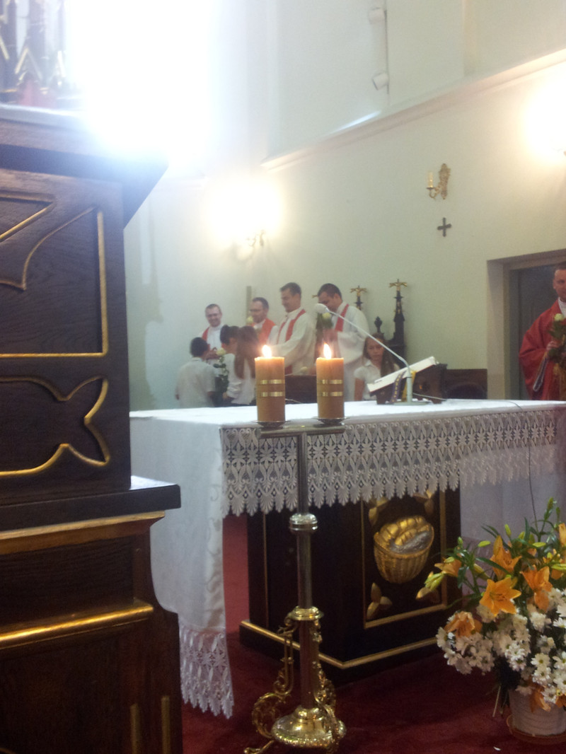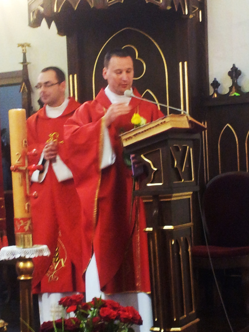 W sobotę 7 czerwca 2014r. Ksiądz Łukasz wraz z kolegami kursowymi świętował w naszej parafii 6 rocznicę święceń kapłańskich. Zyczymy Księdzu wielu łask Bożych i błogosławięstwa Bożego na dalsze lata kapłaństwa.