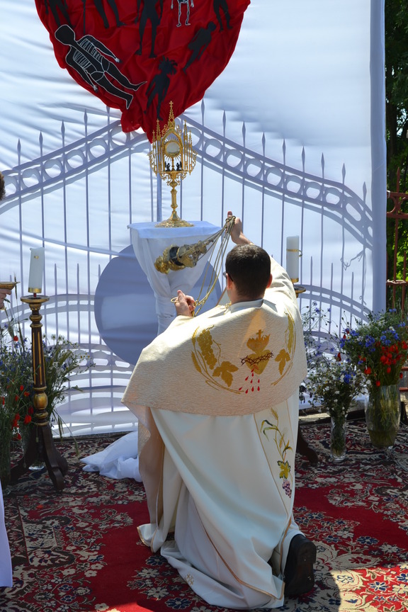 W dniu dzisiejszym obchodziliśmy Uroczystość Najświętszego Ciała i Krwi Pańskiej, potocznie zwaną Bożym Ciałem. Wspominaliśmy przeistoczenie chleba i wina w Ciało i Krew Chrystusa. Pamiątkę tego wydarzenia wspominamy również w Wielki Czwartek, wtedy jednak rozpamiętuje się również Mękę Jezusa Chrystusa, Uroczystość Bożego Ciała ma natomiast charakter dziękczynny.W naszej Parafii uroczystości rozpoczęły się Eucharystią o godz. 10.15. Po błogosławieństwie ruszyła procesja Eucharystyczna do czterech ołtarzy. Przy każdym z nich wsłuchiwaliśmy się w treść Ewangelii.
