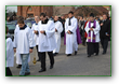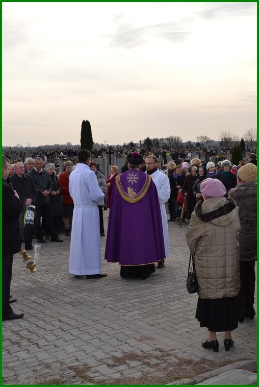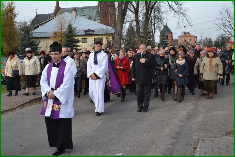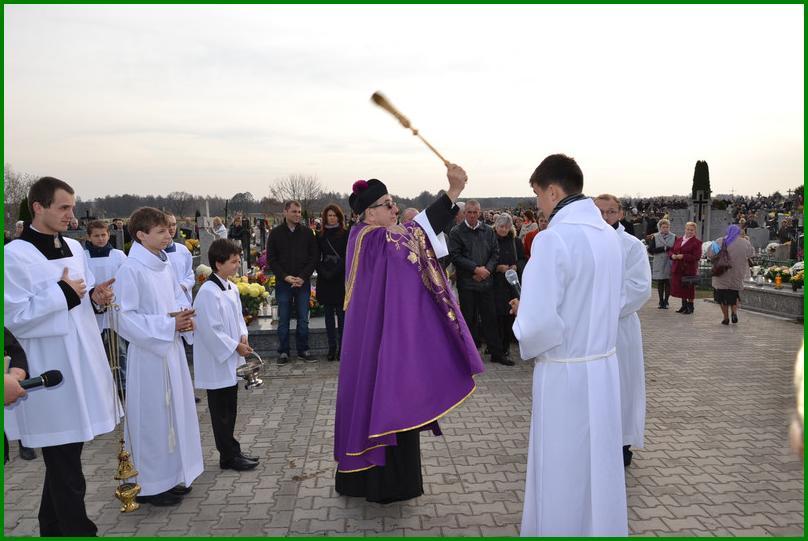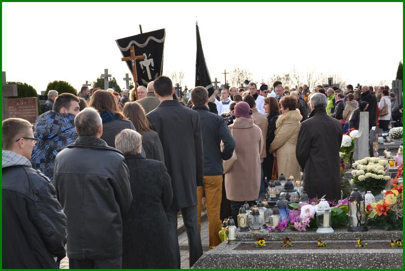Właśnie dzisiaj 01.11.2013 r. po raz kolejny głębiej wsłuchaliśmy się i pochyliliśmy nad słowami wyrażonymi w CREDO: wiary w świętych obcowanie i życie wieczne. To właśnie dzisiaj przeżyliśmy święto WSZYSTKICH ŚWIĘTYCH. W naszej parafii Msze Święte zostały odprawione jak w każdą niedzielę. O 12:00 została odprawiona uroczysta suma, której przewodniczył ks. proboszcz natomiast kazanie wygłosił ks. wikariusz – Łukasz. Po Eucharystii wyruszyła procesja na cmentarz grzebalny. Tam został odmówiony różaniec oraz poświęcono nowe pomniki. Aura była sprzyjająca. Bardzo dużo parafian oraz gości wzięło udział w tym święcie oraz procesji.