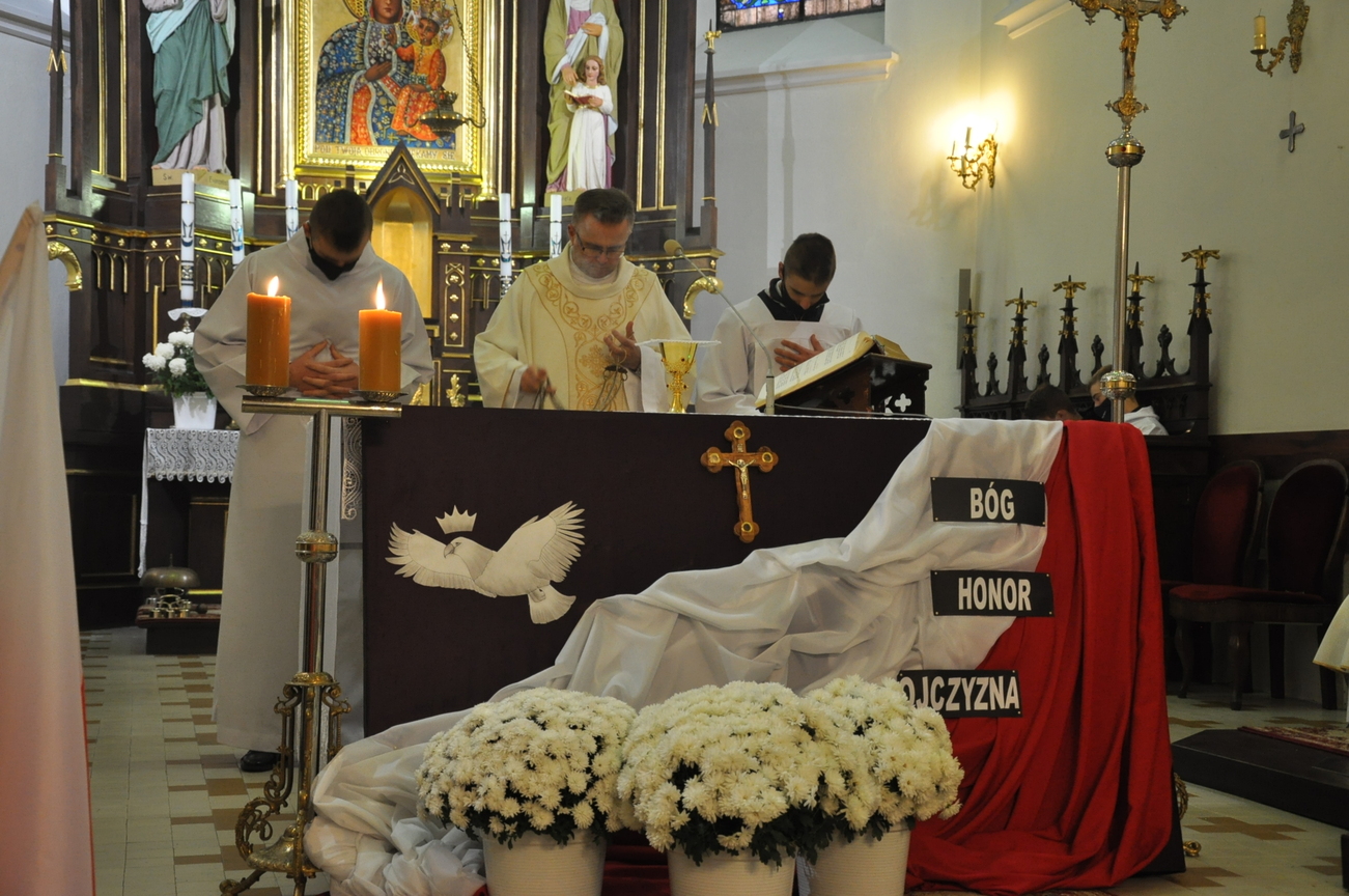 11 listopada na Mszy Św.  o godz. 8.30 modliliśmy się za naszą Ojczyznę. Młodzież z KSMu przygotowała dekorację i miała oprawę Liturgii. Pamiętając o naszych bohaterach po zakończonej Eucharystii udała się na cmentarz na grób nieznanych żołnierzy.