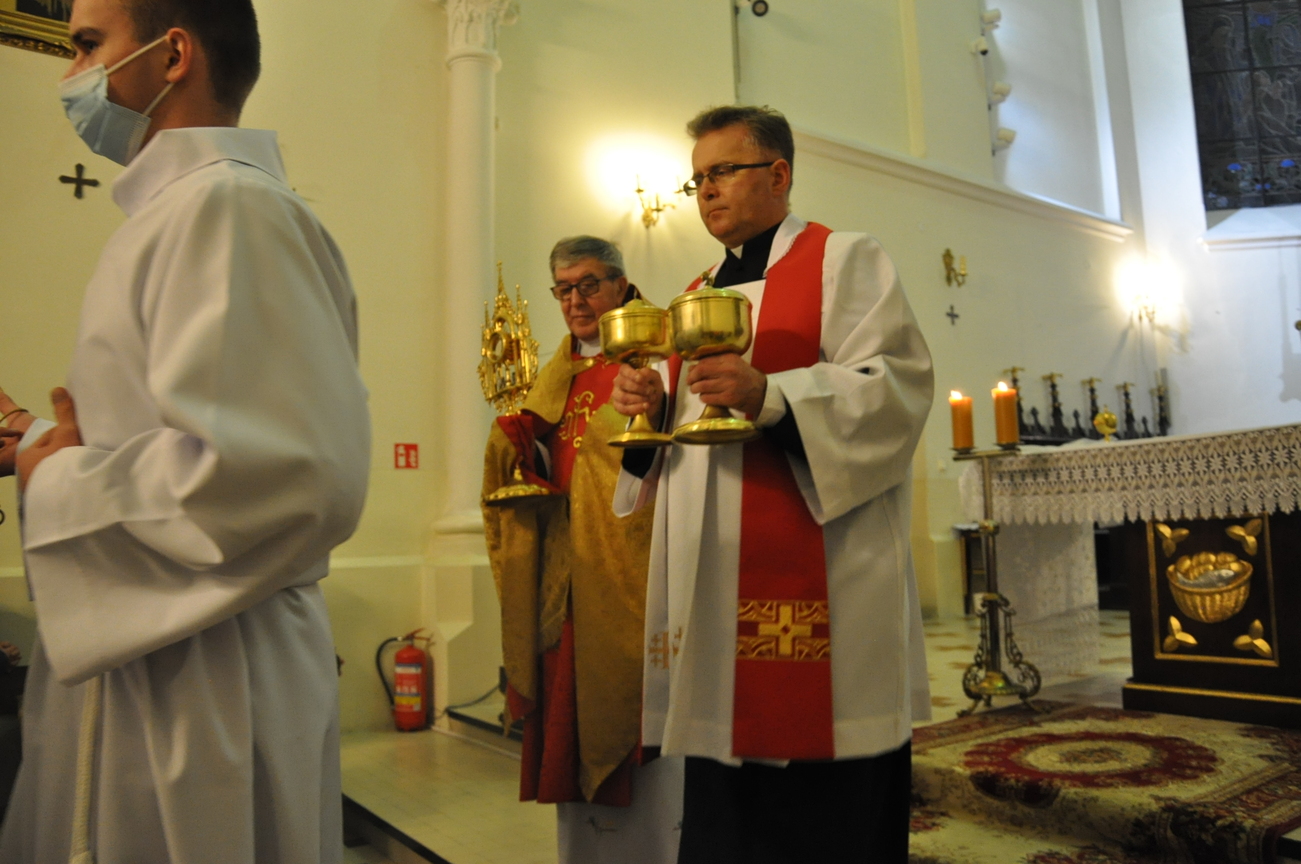 Wielki Piątek to dzień Krzyża, pamiątka śmierci Pana Jezusa. Krzyż jest w centrum liturgii. Przez cały dzień nie sprawuje się Mszy Świętej. Komunii udziela się tylko w czasie Liturgii Męki Pańskiej. Zakazuje się sprawowania Sakramentów, poza Namaszczeniem Chorych i Spowiedzią. Na początku celebrans z asystą zbliża się do Ołtarza. Procesja wejścia odbywa się w milczeniu, bez śpiewu. Kapłan oddaje cześć Chrystusowi Zbawicielowi – leżąc krzyżem. Wierni w tym czasie, klęcząc, w milczeniu uwielbiają Pana za Jego miłość i przepraszają za swoje grzechy. Następnie odczytuje się opis Męki Pańskiej z Ewangelii Świętego Jana. Potem uroczyście odsłania się Krzyż. W czasie tej czynności kapłan trzykrotnie śpiewa: „Oto drzewo krzyża, na którym zawisło Zbawienie świata”, na co ludzie odpowiadają: „Pójdźmy z pokłonem.” Następnie wszyscy wierni mogą podejść i ucałować odsłonięty Krzyż – w tym roku ze względu epidemii w naszym imieniu uczynił to ks. Proboszcz. Potem uczestnicy Liturgii mogą przyjąć Komunię. Na zakończenie Nabożeństwa przenosi się Najświętszy Sakrament do bocznego ołtarza – Grobu Pańskiego, w monstrancji okrytej przezroczystym welonem. Procesja odbywa się przy śpiewie: „Odszedł Pasterz nasz, co ukochał lud”. Po liturgii znowu odkrywa się ołtarz. Adoracja Najświętszego Sakramentu w Grobie Pańskim trwa do późnych godzin wieczornych.