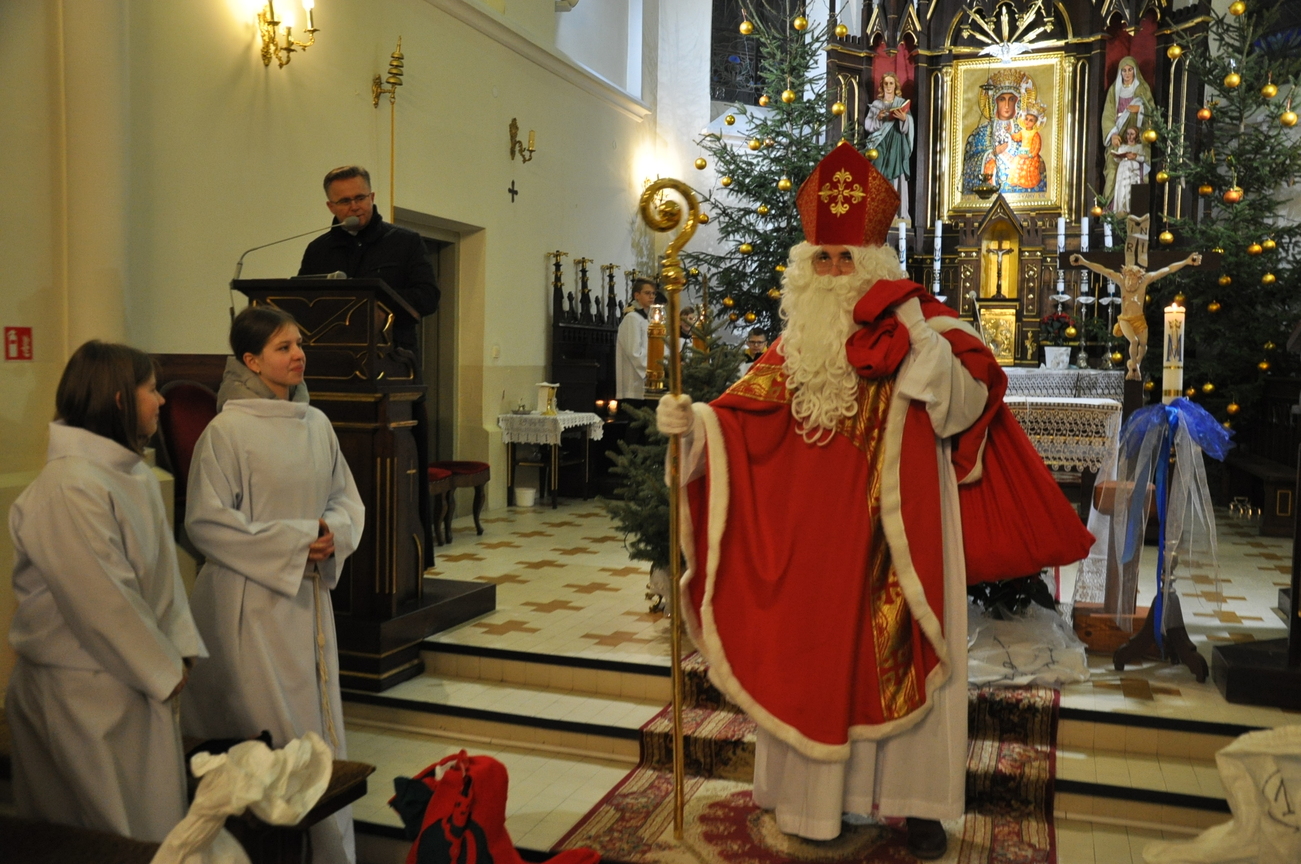 24 grudnia po Mszy św. były odwiedziny św. Mikołaja w naszej parafii. Dzieci, które przychodziły na roraty otrzymały wspaniały prezent. Była to miła niespodzianka za trud i wysiłek włożony w poranne wstawanie. Nie zabrakło uśmiechów na twarzach maluchów. Miło będą wspominać tegoroczne roraty.