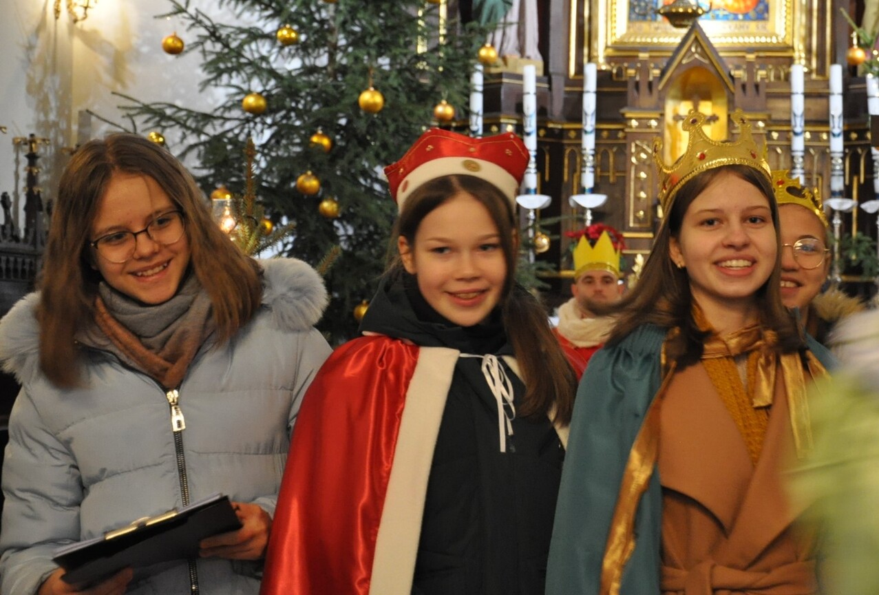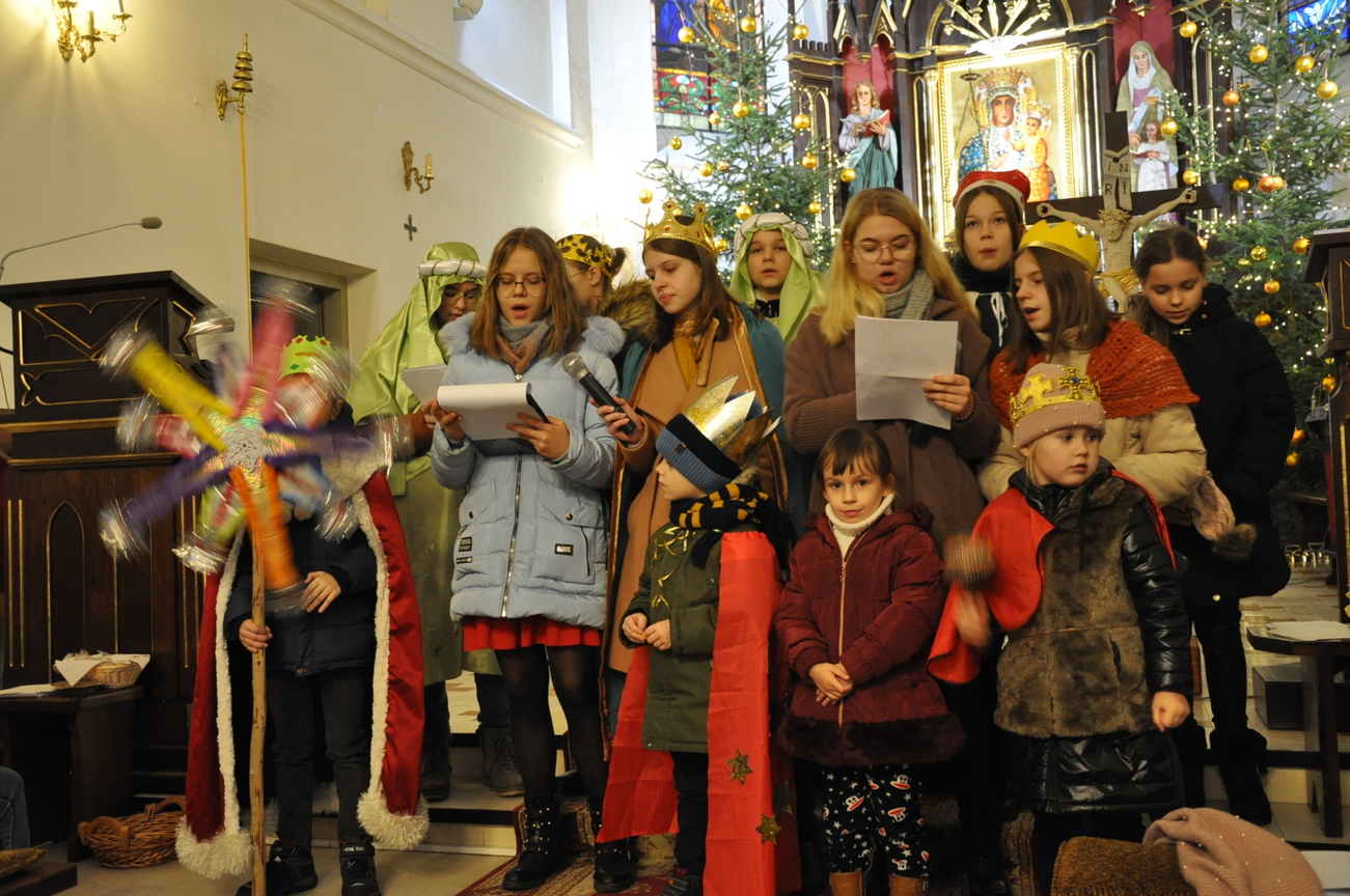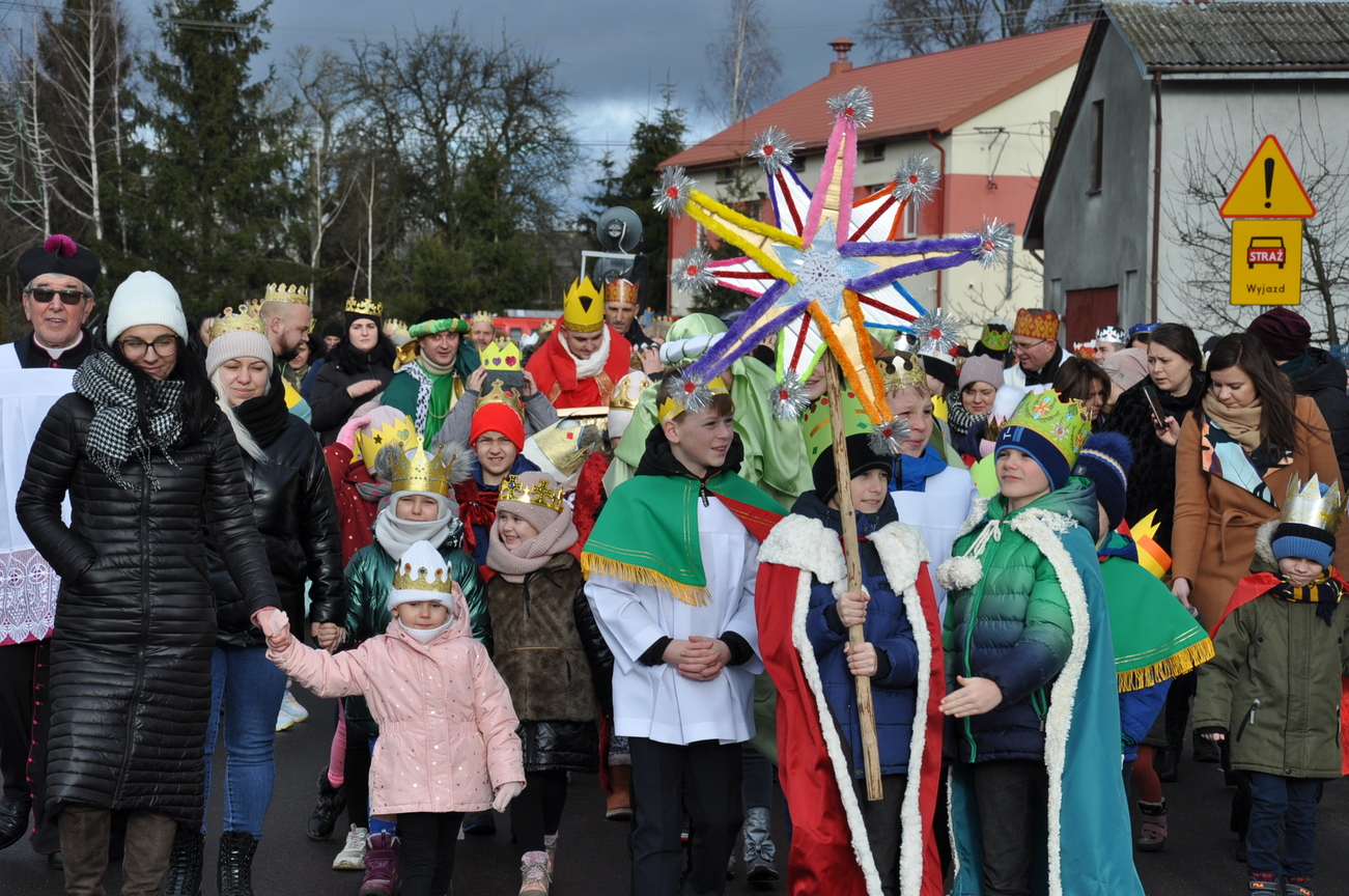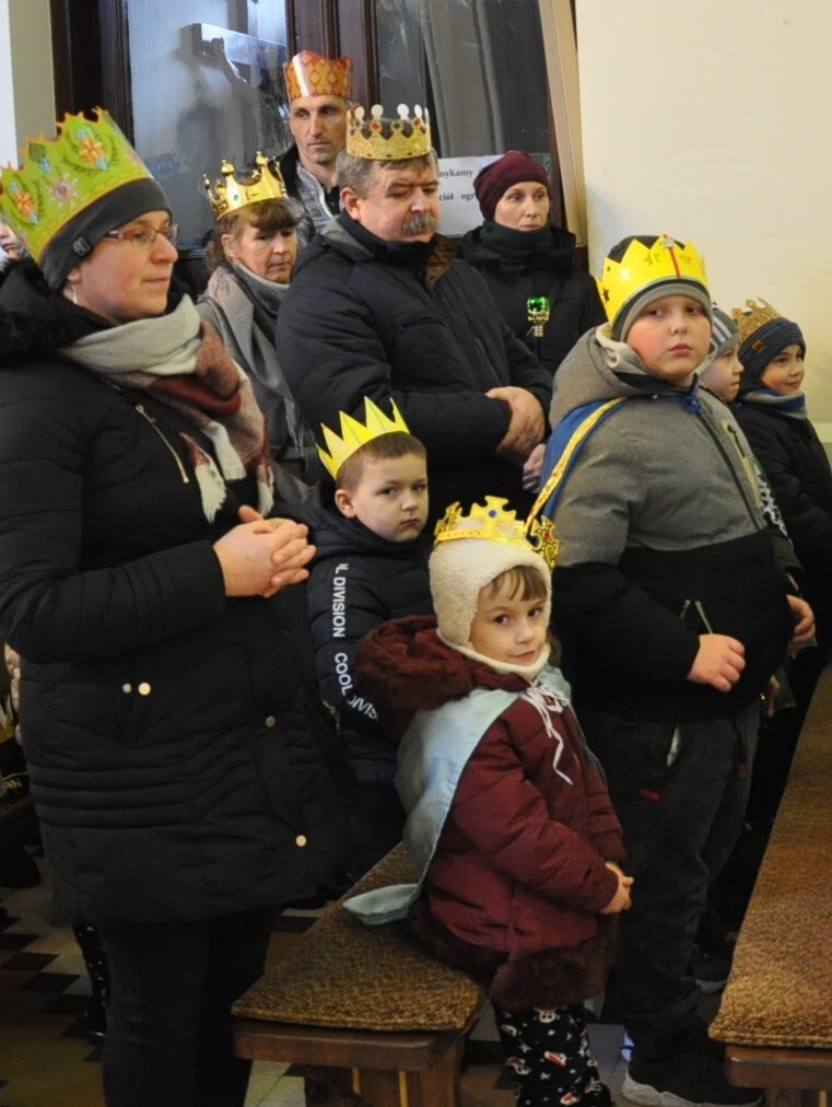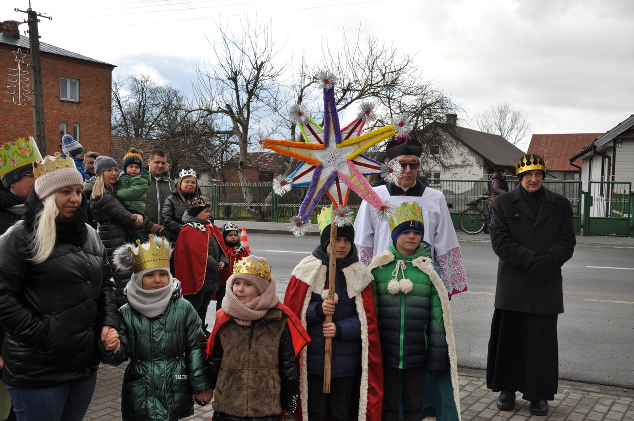 W dniu dzisiejszym (06.01.22) obchodzimy Święto Objawienia Pańskiego, potocznie zwane Świętem Trzech Króli. Obchody rozpoczęliśmy orszakiem z trzema królami na czele, który wyruszył spod budynku OSP Radoryż Kościelny. Po dotarciu do świątyni  Mędrcy złożyli u stóp Jezusa w stajence swoje dary: kadzidło, mirrę i złoto ( złoto symbolizuje godność królewską, kadzidło - godność kapłańską, a mirra zwiastuje wypełnienie proroctwa i zapowiada śmierć). Następnie uczestniczyliśmy we Mszy Świętej, w trakcie której ks. wikariusz dokonał poświęcenia kredy oraz kadzidła. Po odprawionej Eucharystii młodzież z KSM-u wspólnie z całym Kościołem śpiewała kolędy i pastorałki.