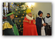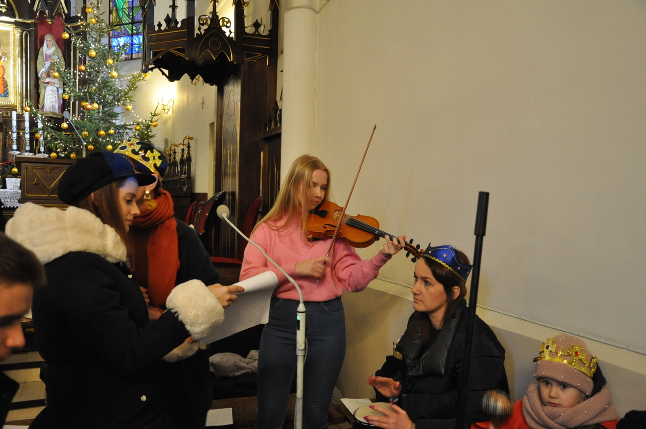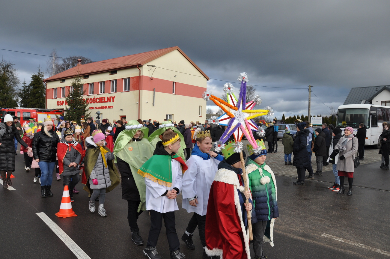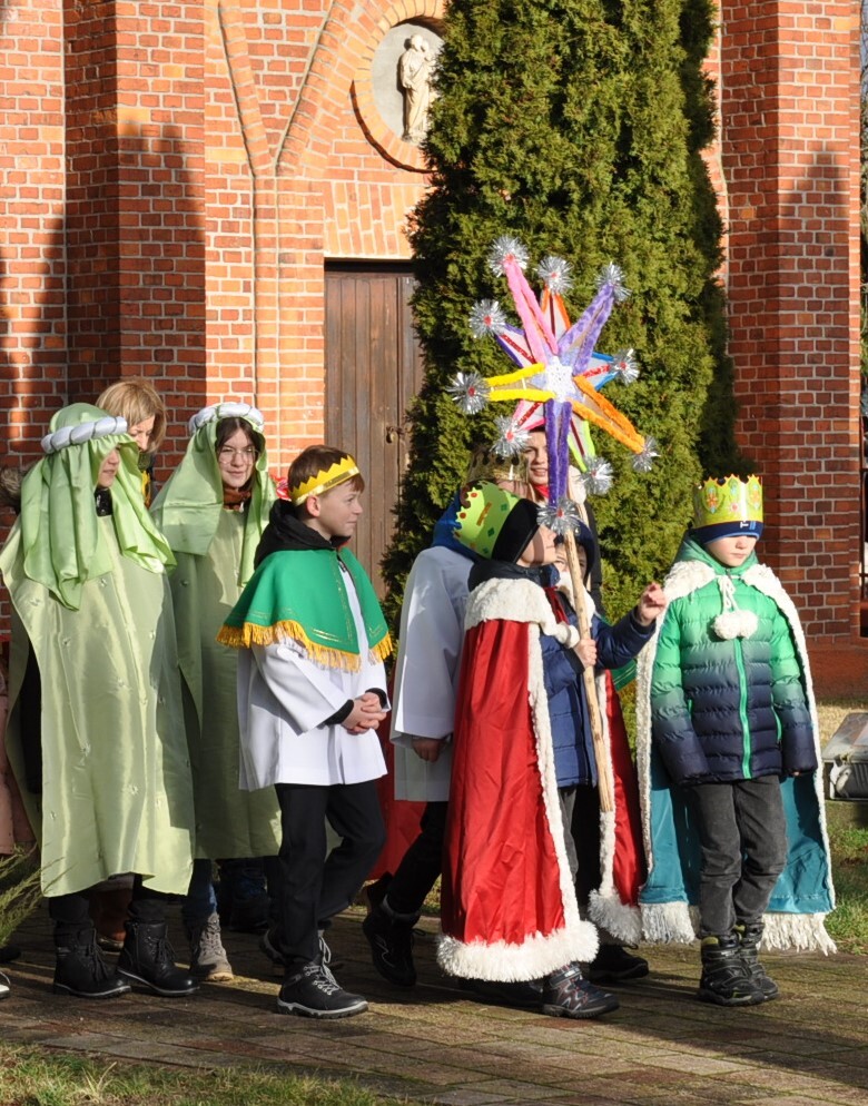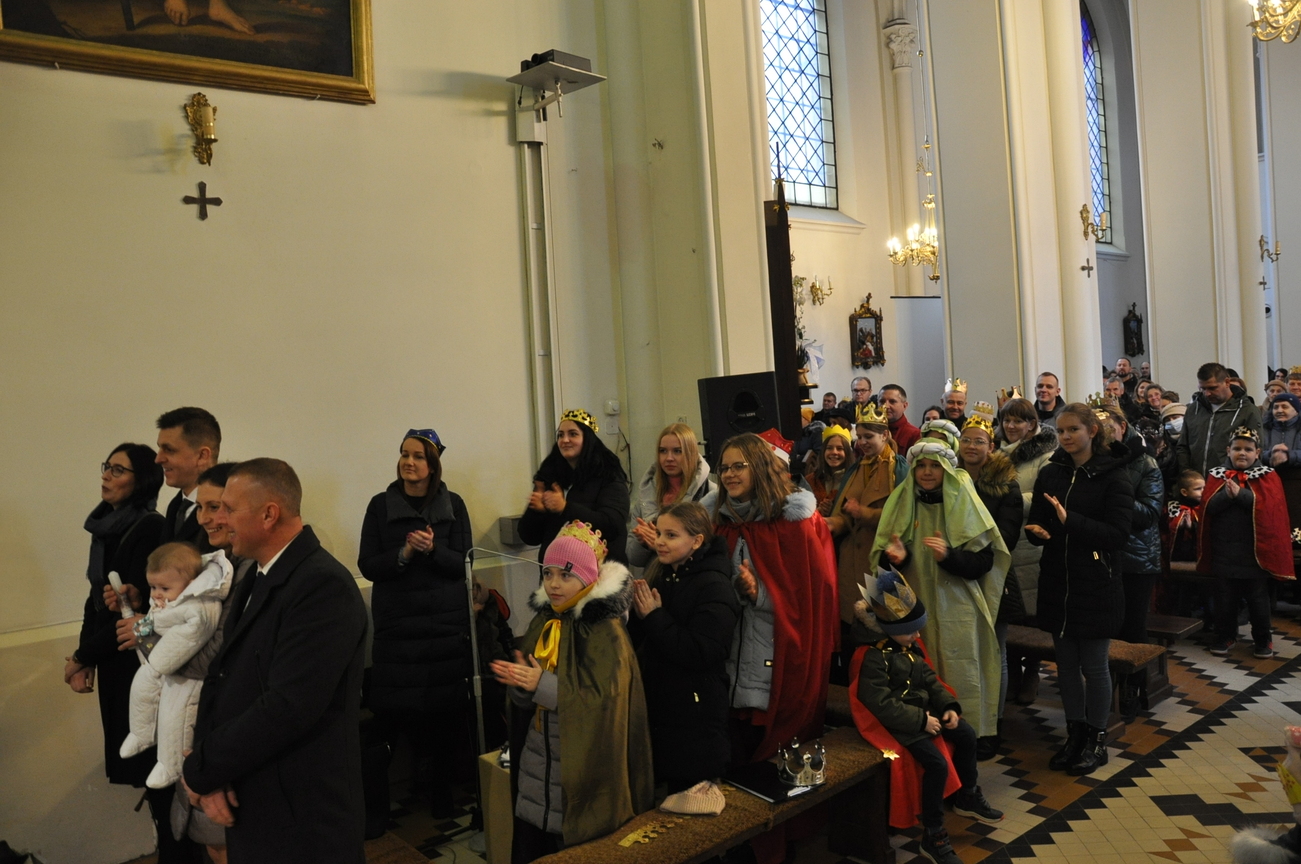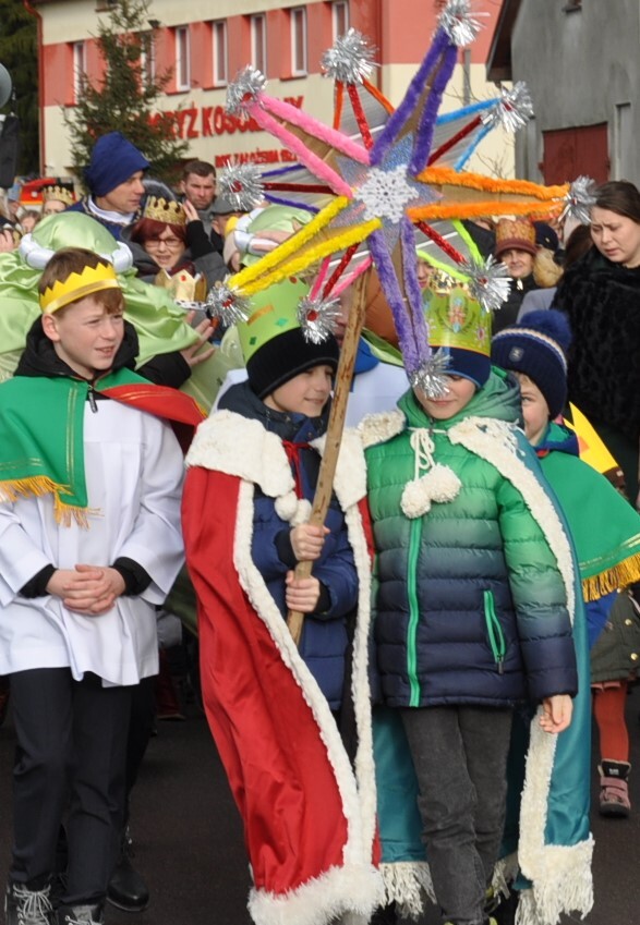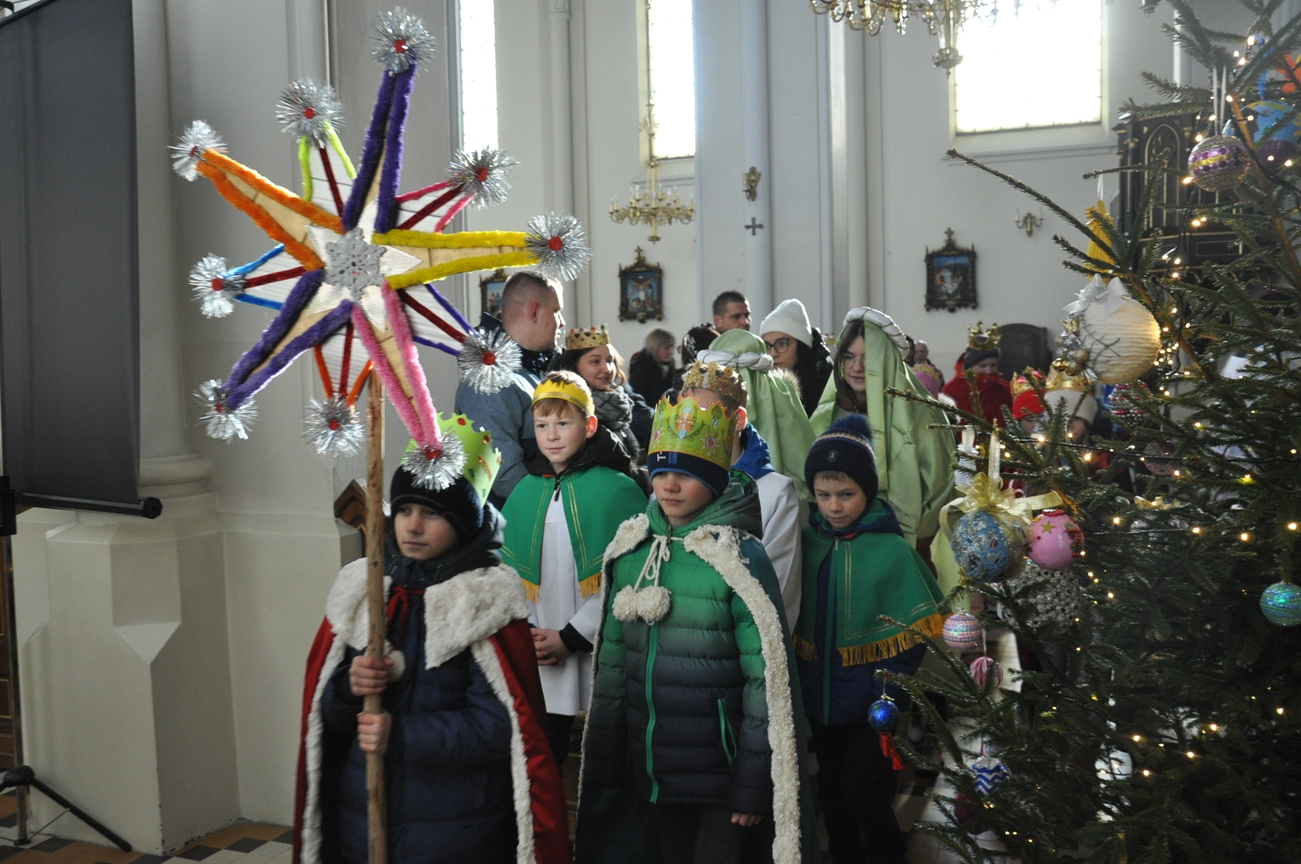 W dniu dzisiejszym (06.01.22) obchodzimy Święto Objawienia Pańskiego, potocznie zwane Świętem Trzech Króli. Obchody rozpoczęliśmy orszakiem z trzema królami na czele, który wyruszył spod budynku OSP Radoryż Kościelny. Po dotarciu do świątyni  Mędrcy złożyli u stóp Jezusa w stajence swoje dary: kadzidło, mirrę i złoto ( złoto symbolizuje godność królewską, kadzidło - godność kapłańską, a mirra zwiastuje wypełnienie proroctwa i zapowiada śmierć). Następnie uczestniczyliśmy we Mszy Świętej, w trakcie której ks. wikariusz dokonał poświęcenia kredy oraz kadzidła. Po odprawionej Eucharystii młodzież z KSM-u wspólnie z całym Kościołem śpiewała kolędy i pastorałki.