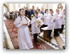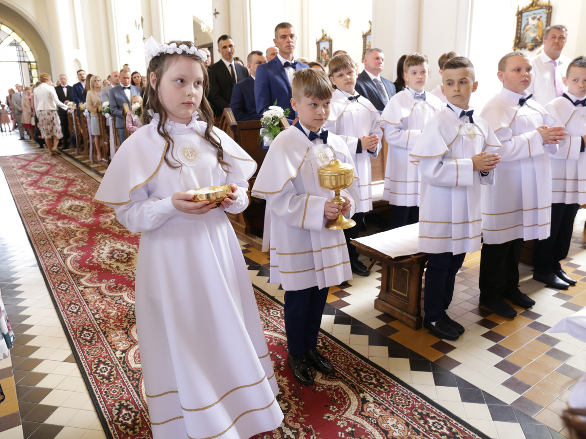 15 maja podczas Mszy św. o godz. 12.00 była Uroczystość I Komunii Świętej. Do jej przystąpienia przygotowywało się przez cały rok 47 dzieci pod opieką ks. Sławka i pań katechetek. Jako prezent w darze do Kościoła ofiarowali oni tron pod monstrancję podczas wystawienia Najświętszego Sakramentu. Gratulujemy młodym, że od teraz będą mogli już w pełni uczestniczyć w Eucharystii. Niech ich piękne białe stroje w, których byli podczas uroczystości zawsze im przypominają o czystości serca. Życzymy pięknej przygody poznawania życia z Bogiem.