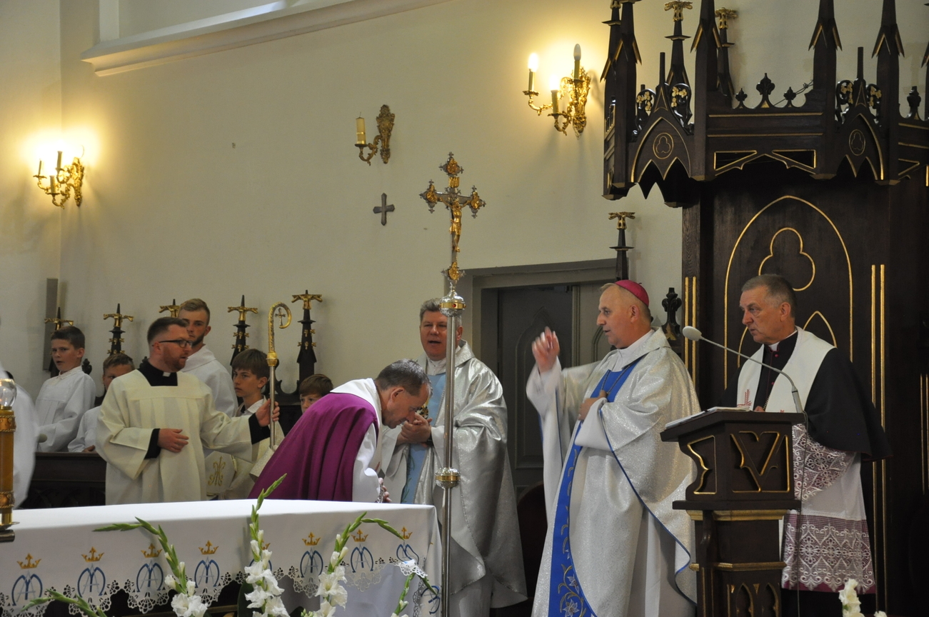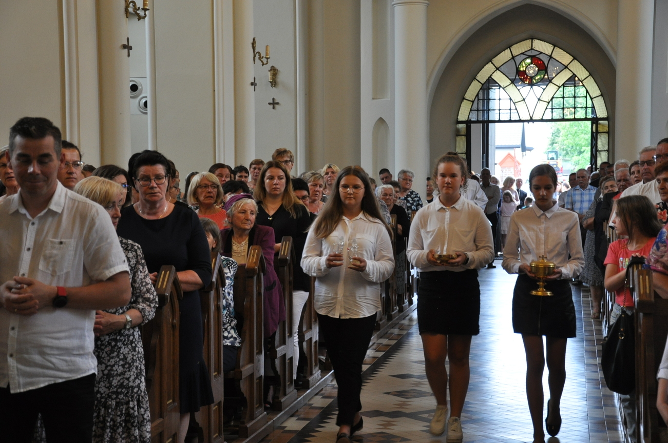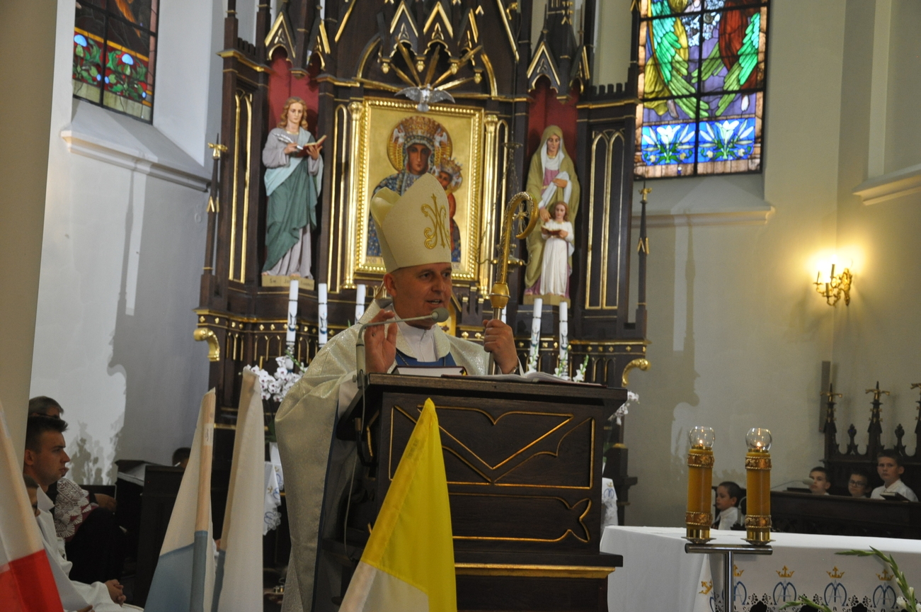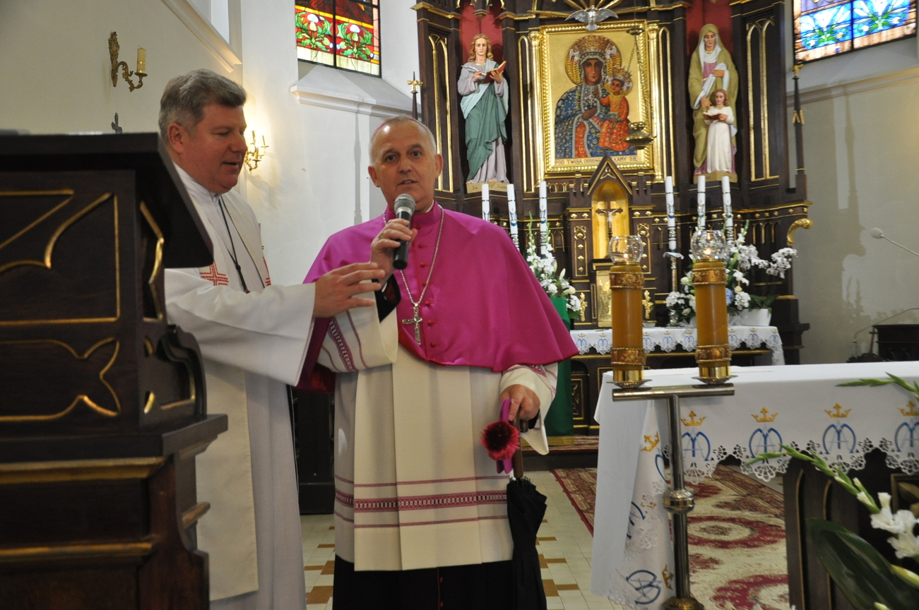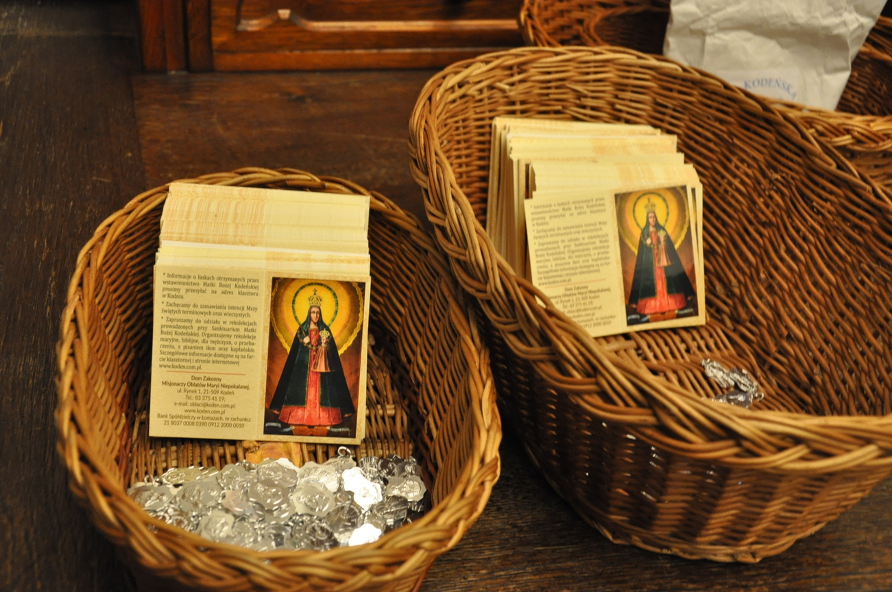 2 lipca do świątyni parafialnej przybyły znaki święte – kopia Obrazu Matki Bożej Kodeńskiej i relikwie Bł. Męczenników Podlaskich. Tego dnia Mszy św. o godz. 16.00 przewodniczył ks. biskup Grzegorz Suchodolski. Mówił On o tym, jak ważna jest jedność w życiu człowieka i życie z Panem Bogiem. Po zakończonej Liturgii o godz. 19.00 było nabożeństwo różańcowe, po którym można było przyjąć szkaplerz kodeński - w jego tematykę wprowadził nas ojciec oblat Dariusz.