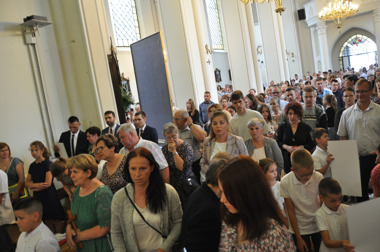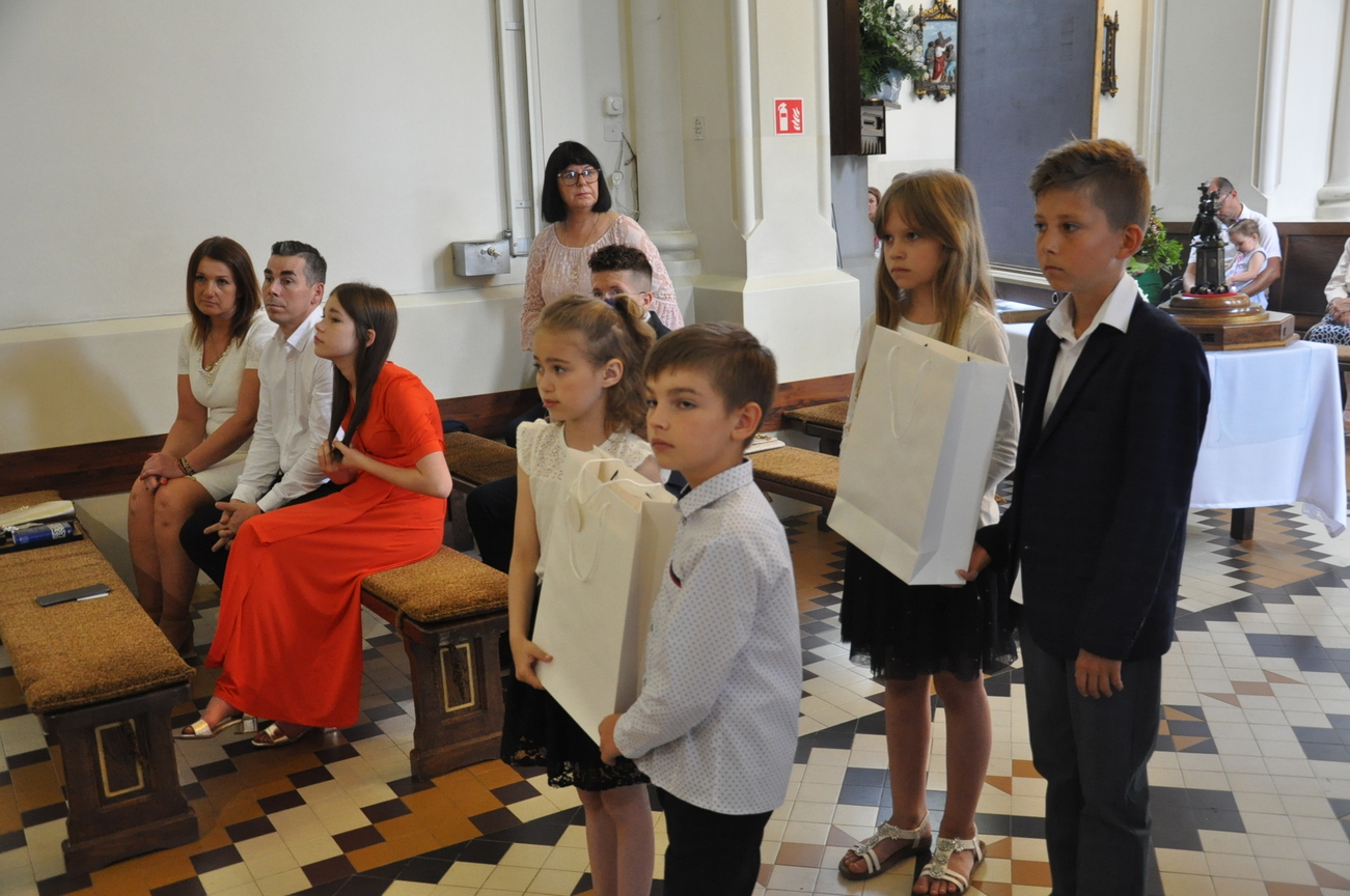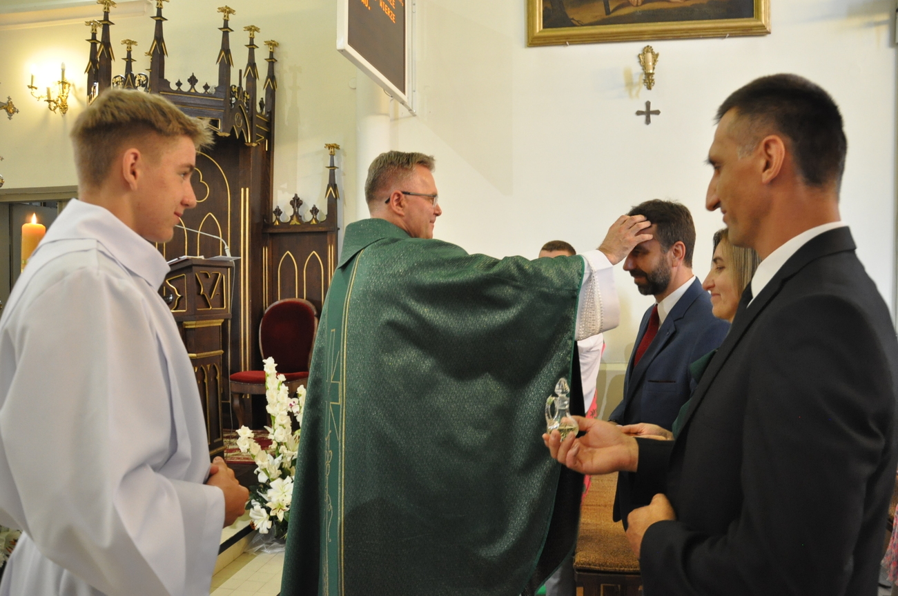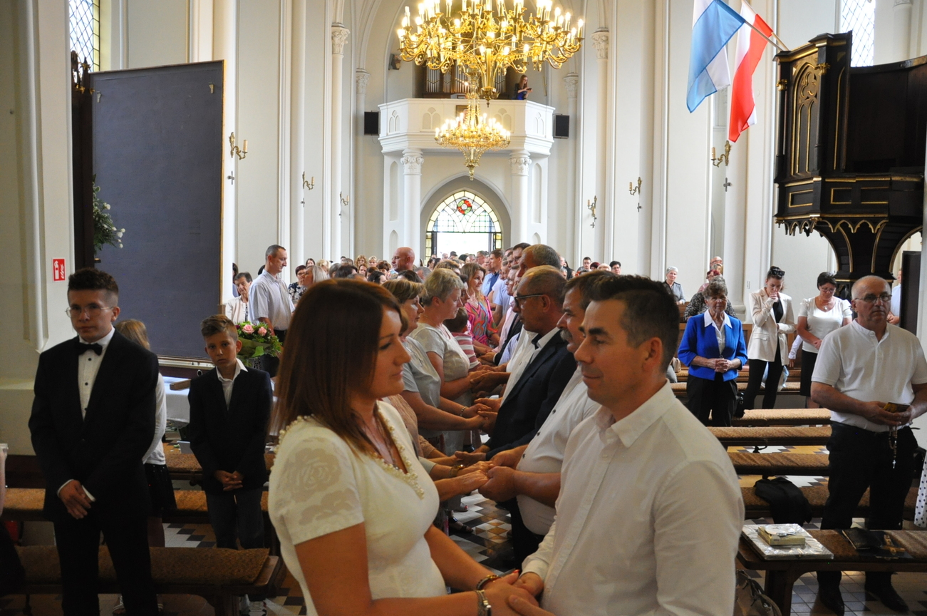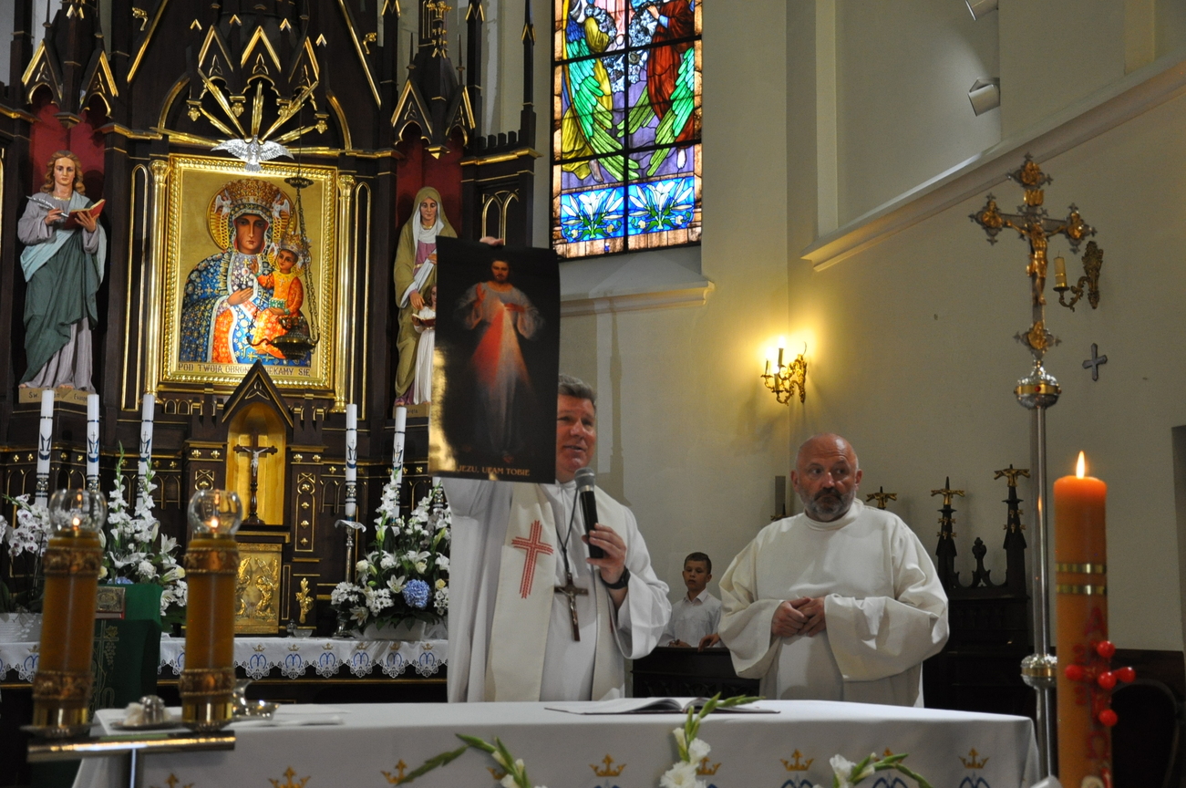 3 lipca zakończyły się Parafialne Misje Ewangelizacyjne. Tego dnia podczas Mszy św. małżonkowie mogli odnowić swoje przyrzeczenia ślubne. Tak się pięknie złożyło, że dzisiaj podczas Eucharystii o godz. 10.15 do naszej wspólnoty parafialnej został włączony Oliwier i piękne świadectwo życia dała para małżonków, która obchodziła 50 rocznicę ślubu. Młodzi dzisiaj często zwlekają z zawarciem sakramentu małżeństwa, bo nie widzą szczęśliwych małżeństw. Ksiądz Jacek zachęcał i zapraszał na rekolekcje dla małżonków do Siedlanowa. Na zakończenie Misji nasi Misjonarze zostawili nam pamiątkowe obrazy Jezusa Miłosiernego. Składamy serdeczne podziękowania naszym Misjonarzom za wygłoszone do nas słowo oraz wszystkim tym, którzy w nich uczestniczyli.