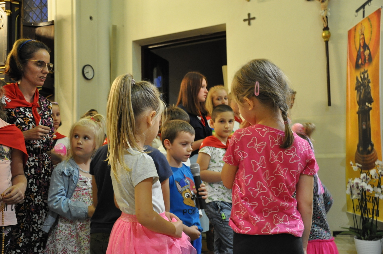Świętowaliśmy dzisiaj DZIEŃ DZIECKA. Z tej okazji dzieci przygotowały oprawę liturgiczną i procesję z darami zakończoną błogosławieństwem z rąk ks. kanonika Mieczysława i ks. Sławka. Po Mszy Św. Głosy Naszych najmłodszych pątników rozbrzmiewały w świątyni podczas rozważania radosnych tajemnic Różańca Świętego. Na koniec wszystkie dzieci otrzymały coś słodkiego od ks. Sławka.