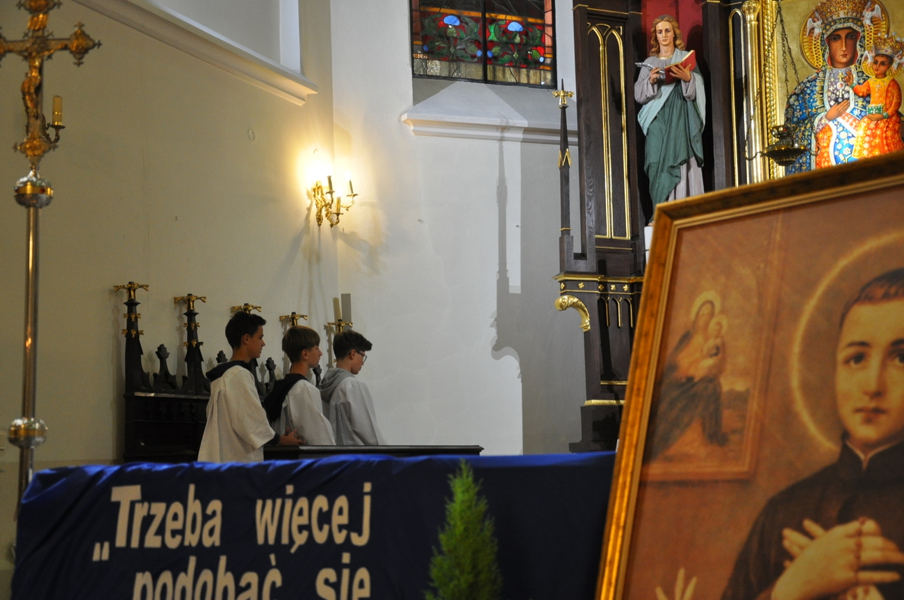 Dnia  16 września 2022 roku odbyła się adoracja Najświętszego sakramentu. Najpierw jednak wysłuchaliśmy słów, które Bóg do nas kieruje i spotkaliśmy żywego Jezusa w Eucharystii. Tematem adoracji był życiorys i nauczanie świętego Stanisława Kostki. Dla nas jako wspólnoty ludzi młodych święty Stanisław jest wzorem do naśladowania na ścieżkach wiary. Jest on patronem służby ołtarza, młodzieży, dzieci oraz Katolickiego Stowarzyszenia Młodzieży. Zaśpiewaliśmy hymn KSMu, Apel Jasnogórski oraz tradycyjnie, pieśń wieczorną.