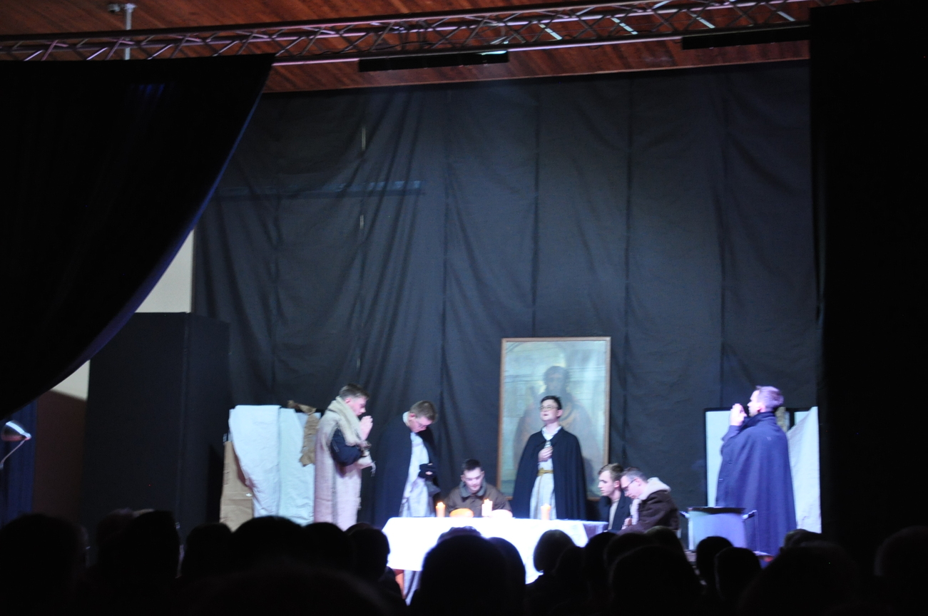 30 listopada w niedzielny wieczór grupa 54 osobowa wraz z księdzem wikariuszem Sławomirem wybrała się na sztukę kleryków z III roku pt. " Dobry jak chleb" do Wyższego Seminarium Duchownego w Nowym Opolu. Była ona zainspirowana postacią Św. brata Alberta Chmielowskiego. Klerycy wspaniale wczuli się w grę przydzielonych postaci. Na samym początku mieliśmy możliwość zwiedzania seminarium i poznawania jego ukrytych komnat. Następnie w 9 scenkowej scenografii została przedstawiona sztuka przez alumnów, którzy niedawno wrócili po przerwie wakacyjnej do swojej dalszej formacji duchowej i przyoblekli się w sutanny. Po wszystkim została jeszcze atrakcja „Muzeum smaków” bez którego wyjazd nie był by udany. W trakcie drogi nie zabrakło akcentu muzycznego i wspaniałych pieśni, no i oczywiście hitu tegorocznej pielgrzymki "Babcia, dziadek, mama, tata, siostry, bracia - pełna chata…". Po wzmocnieniu duchowym i fizycznym parafianie szczęśliwie powrócili zadowoleni do domów. Są wdzięczni, że choć przez chwile mogli poczuć sie jak w prawdziwym teatrze. Klerykom z WSD dziękujemy bardzo za występ i życzymy błogosławieństwa Bożego na dalszą formację i realizację powołania kapłańskiego. Niech dobry Pan Bóg Was prowadzi wraz z Maryją Matką powołań kapłańskich przez trud dźwigania krzyża dnia codziennego.
