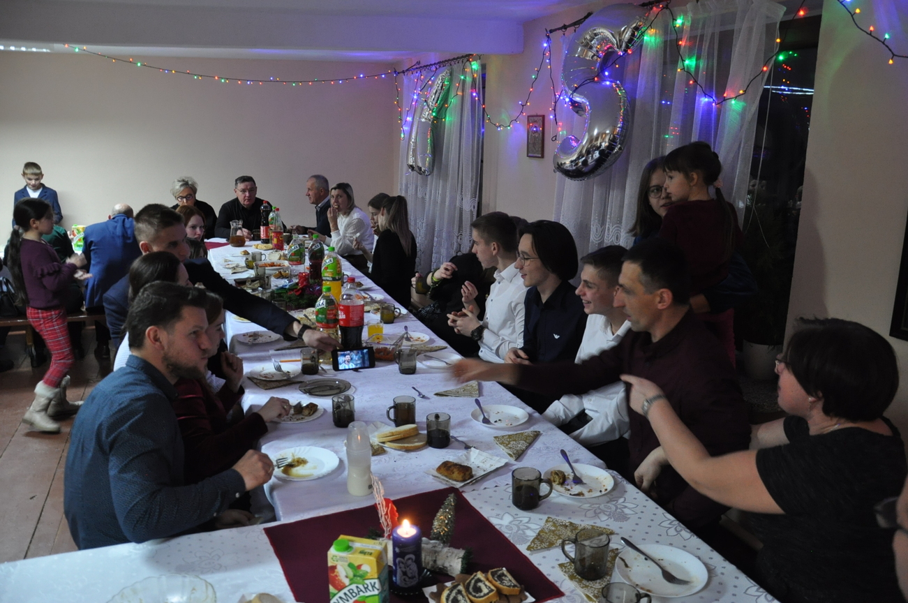 Zasiadając do stołu pomodliliśmy się o Boże błogosławieństwo dla nas i naszych rodzin, wysłuchaliśmy fragmentu z Ewangelii wg św. Łukasza o narodzeniu Pana Jezusa (Łk.2,1-14), by wreszcie jako wielka rodzina KSMowska podzielić się opłatkiem. Nie zabrakło wspólnego kolędowania i wieczerzy.