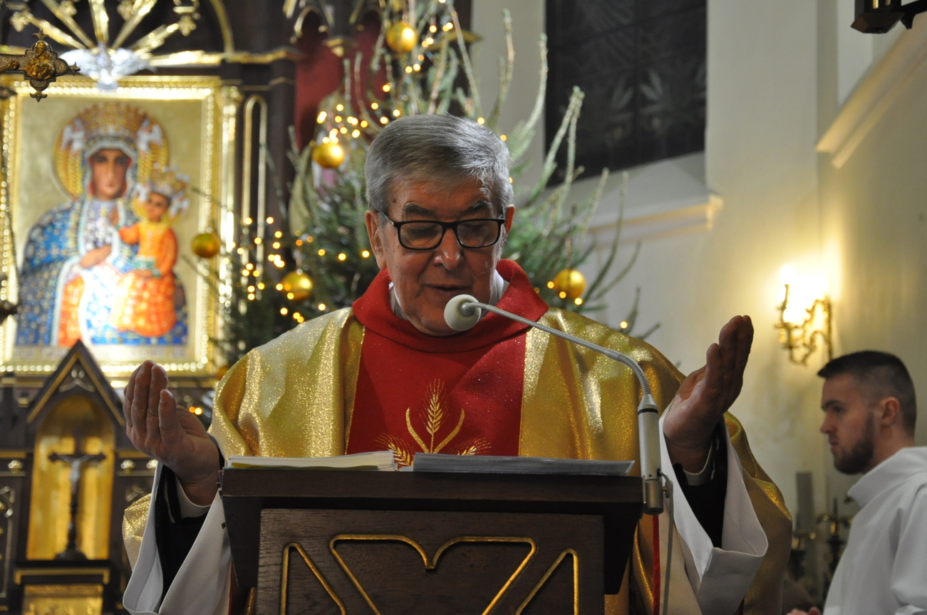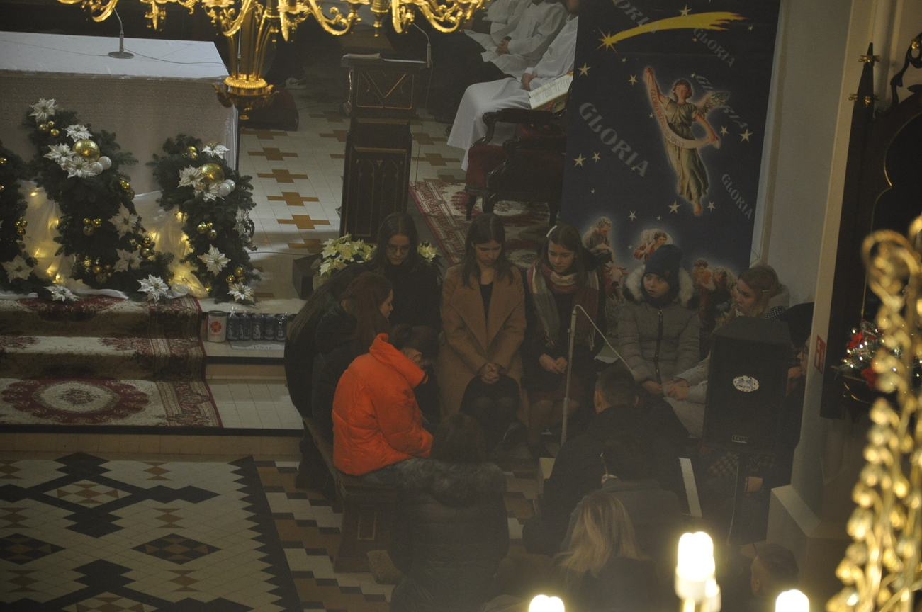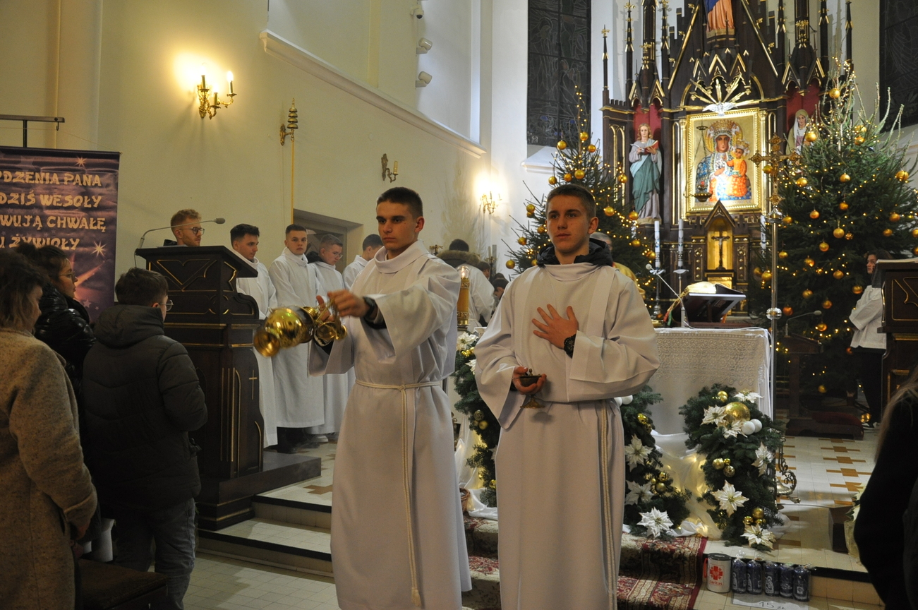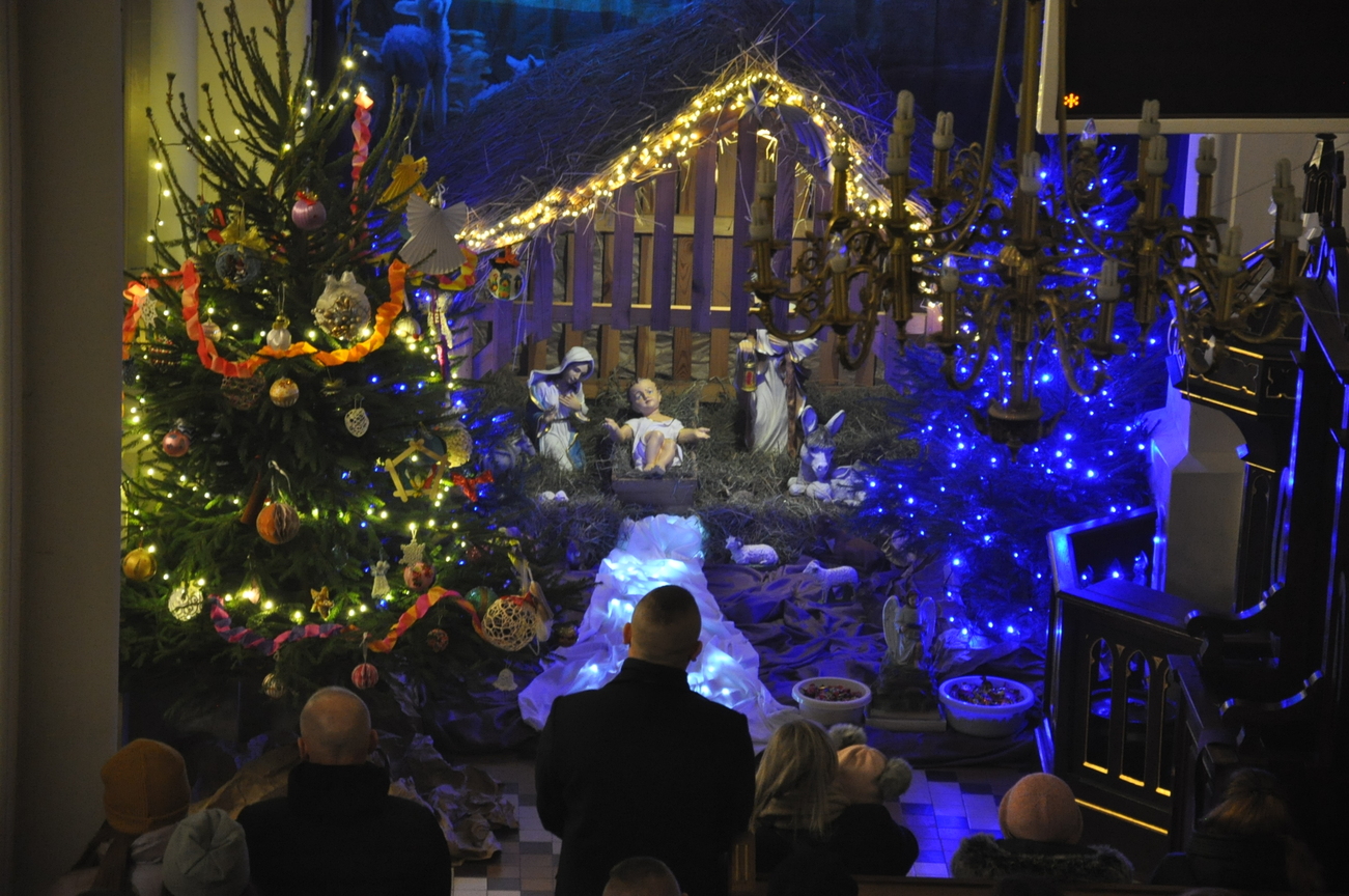 Dzisiaj (24.12.22) o godzinie 22:00 rozpoczęliśmy obchody Bożego Narodzenia Mszą Świętą nazywaną Pasterką. Liturgię poprzedziło wspólne kolędowanie prowadzone przez młodzież z KSM-u. W uroczystej procesji przeniesiono do szopki i złożono w żłóbku symboliczną figurkę Dzieciątka Jezus. W homilii ksiądz kanonik Mieczysław przytoczył słowa polskiego wieszcza Adama Mickiewicza: „Wierzysz, że Bóg zrodził się w Betlejemskim żłobie! Lecz biada Ci, jeżeli nie zrodził się w tobie”. Życzymy, aby każdy człowiek doświadczył we własnym sercu Bożego Narodzenia