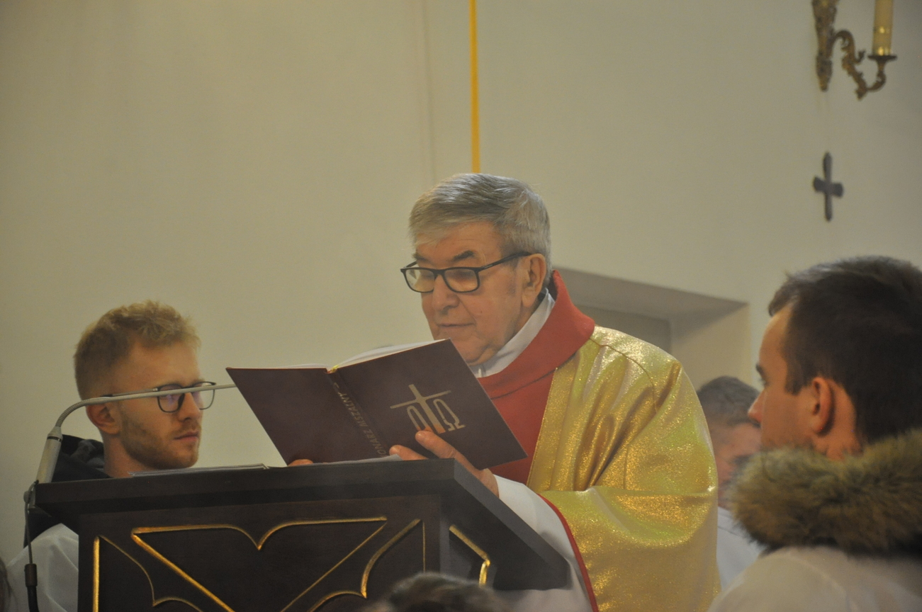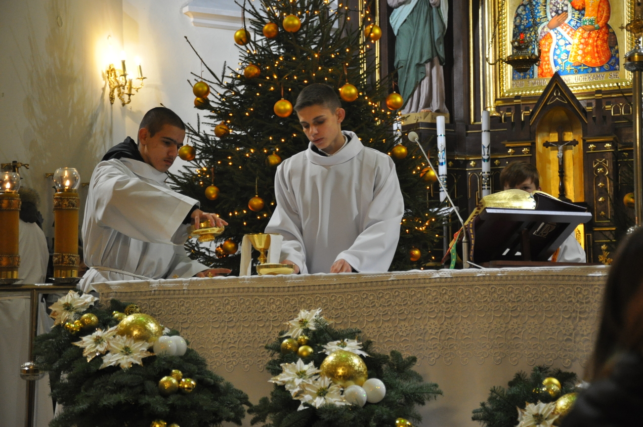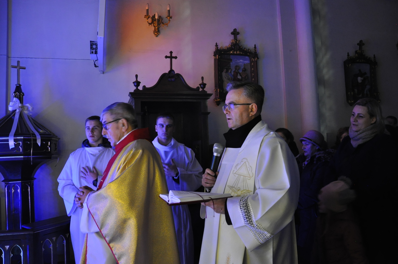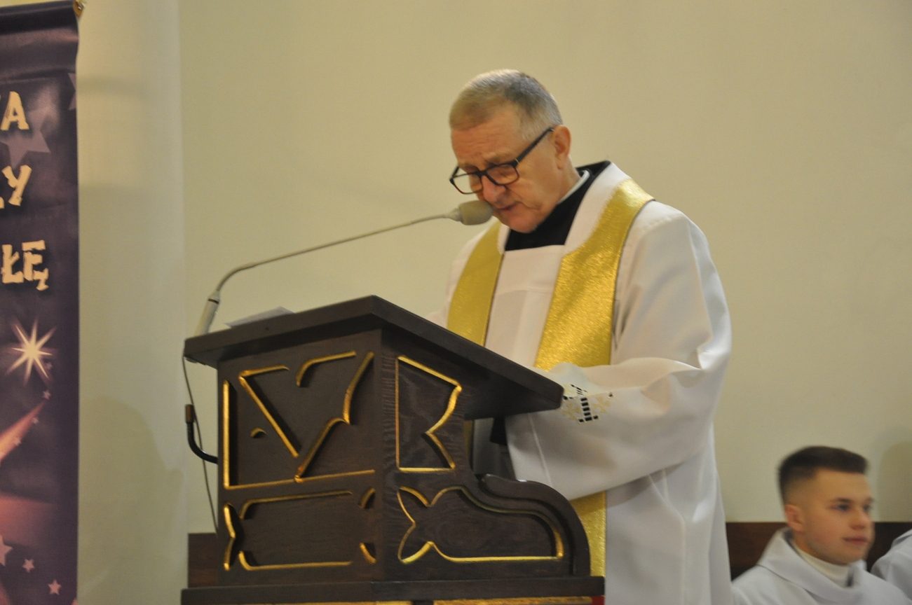 Dzisiaj (24.12.22) o godzinie 22:00 rozpoczęliśmy obchody Bożego Narodzenia Mszą Świętą nazywaną Pasterką. Liturgię poprzedziło wspólne kolędowanie prowadzone przez młodzież z KSM-u. W uroczystej procesji przeniesiono do szopki i złożono w żłóbku symboliczną figurkę Dzieciątka Jezus. W homilii ksiądz kanonik Mieczysław przytoczył słowa polskiego wieszcza Adama Mickiewicza: „Wierzysz, że Bóg zrodził się w Betlejemskim żłobie! Lecz biada Ci, jeżeli nie zrodził się w tobie”. Życzymy, aby każdy człowiek doświadczył we własnym sercu Bożego Narodzenia