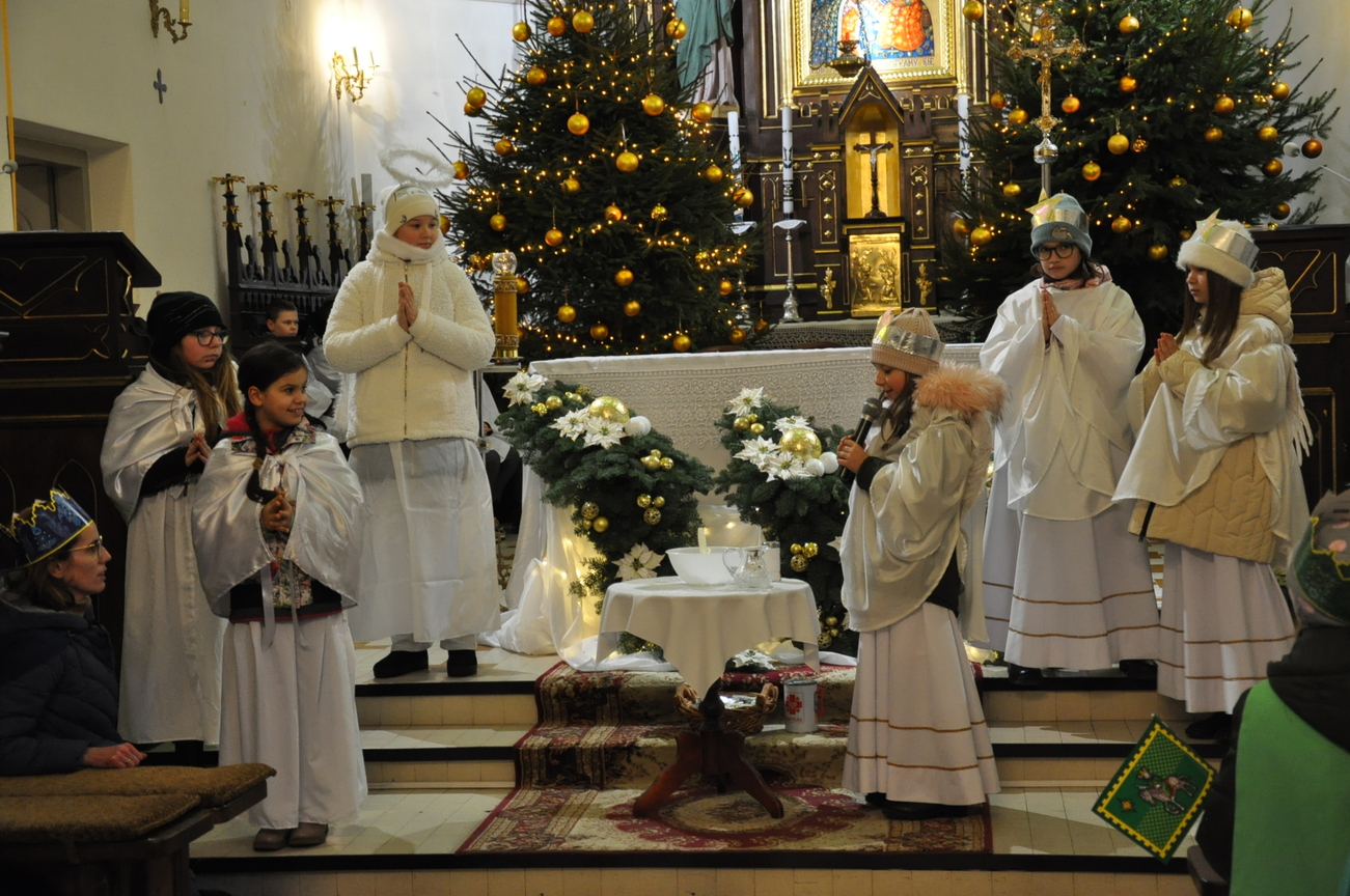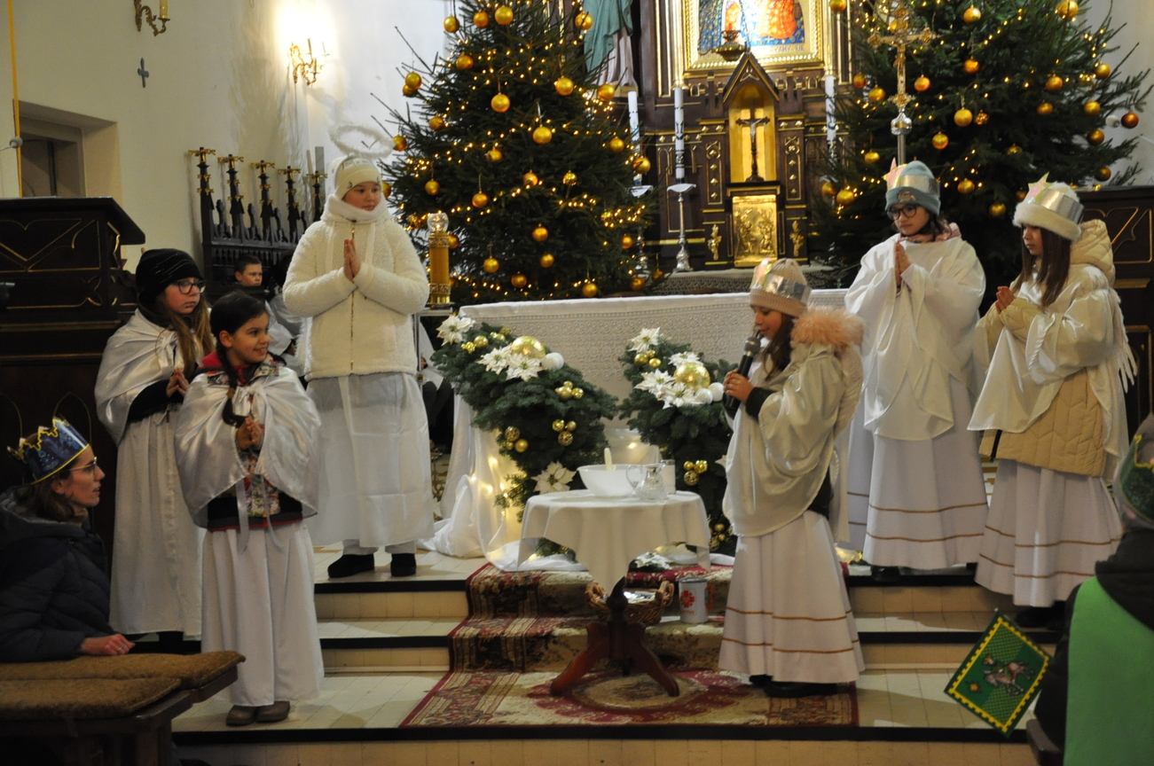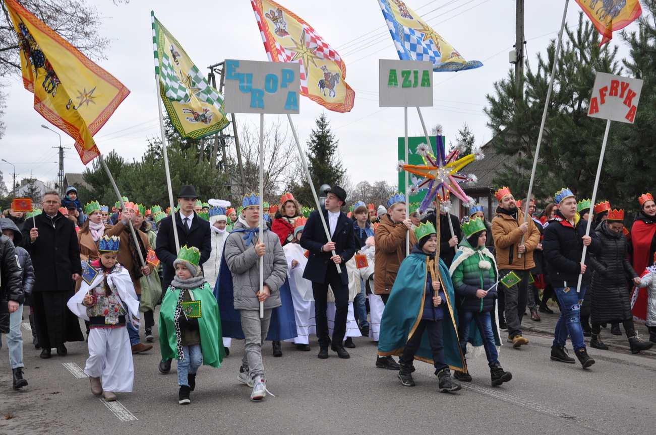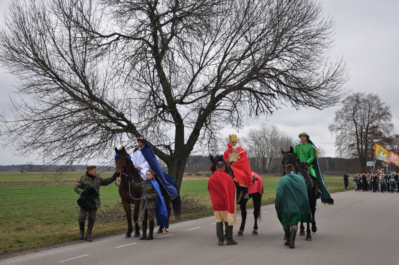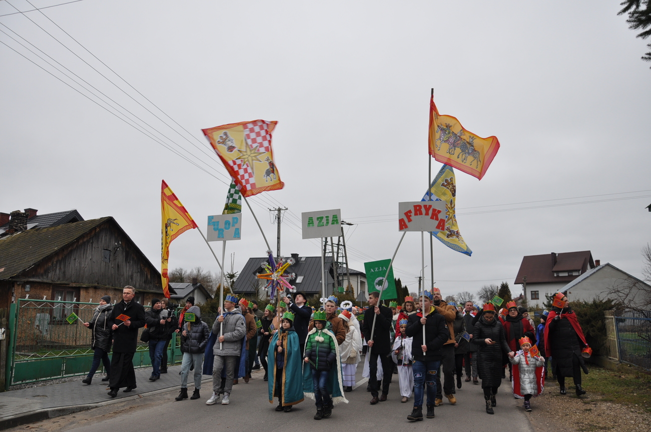 6 stycznia, w Święto Objawienia Pańskiego, potocznie zwane Świętem Trzech Króli, w naszej parafii odbył się Uroczysty orszak z udziałem Mędrców. Rozpoczął się on o godz. 11.15, scenką teatralną w szkole podstawowej w Radoryżu Kościelnym. Następnie - za światłem gwiazdy- Mędrcy ruszyli w drogę konno, a za nimi ludzie, przyobleczeni w kolorystyczny podział Azji, Europy i Afryki. Podczas pieszej wędrówki ulicami parafii rozbrzmiewały radosne śpiewy kolęd. Po wejściu do świątyni Mędrcy pokłonili się Bożej Dziecinie i ofiarowali złoto, mirrę i kadzidło. Chwilę po godzinie 12.00 uczestniczyliśmy we wspólnej Mszy św., przyglądając się przekazaniu drogocennych darów. Po uroczystym błogosławieństwie kapłańskim Mędrcy rozdawali słodkie upominki naszym małym łasuchom. Wielbłądy, które nie dotarły do małej i spokojnej parafii położonej za górami i lasami zastąpiły przyjazne konie. Wywołały one pozytywny odbiór nie tylko wśród maluchów. Po zakończonej Eucharystii nie obyło się bez wspólnych zdjęć z Mędrcami i ich towarzyszami. Nie zabrakło również gadżetów podkreślających tą uroczystość: były korony, flagi i chorągiewki wraz ze słodkim darem. Wszyscy uczestnicy są zadowoleni z tegorocznych obchodów tego święta. Już czekamy na kolejne takie wydarzenie. ZAPRASZAMY NA FOTORELACJĘ Z TEGO PIĘKNEGO WYDARZENIA