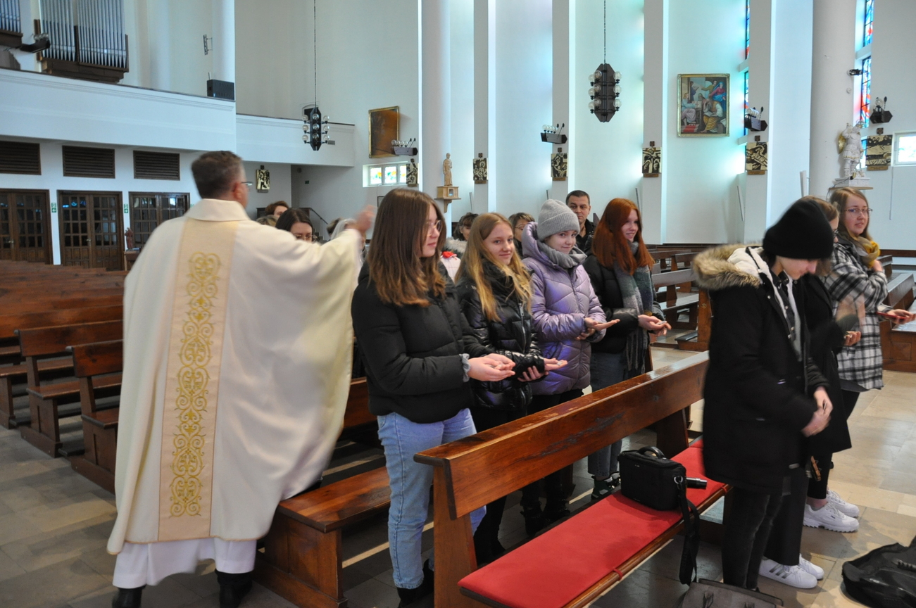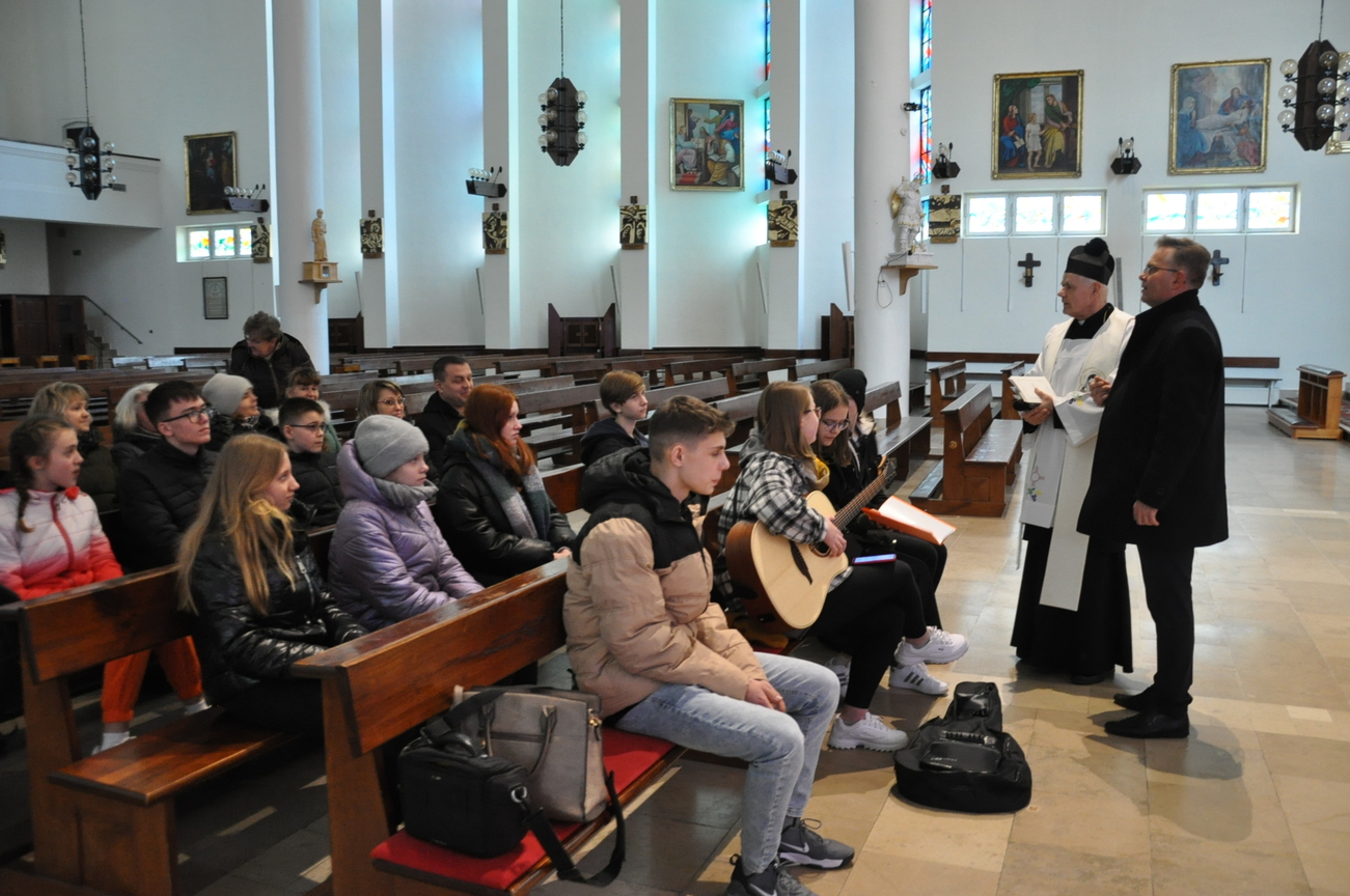 11 marca w sobotni pochmurny dzień grupa parafian z ks. wikariuszem Sławomirem odwiedziła powyższe miejsca. Na dobry początek powierzyli się św. Józefowi w Sanktuarium, gdzie ksiądz Opiekun sprawował Eucharystię za pielgrzymów i w ich intencjach. Tam ks. proboszcz Sławomir Olopiak - były wikariusz naszej parafii - skierował kilka słów do grupy i rozdał pamiątki z patronem Sanktuarium.