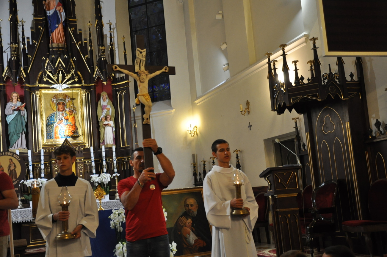 Drugi dzień naszego duchowego wędrowania, to piątek - dzień pokutny, a więc nabożeństwo Drogi Krzyżowej, którą poprowadzili mężczyźni naszej parafii. Na wzór błogosławionych Męczenników Podlaskich, dali świadectwo swojej wiary. Wszyscy zgromadzeni w kościele wyznali wiarę w Boga ściskając w dłoni KRZYŻ, symbol naszego odkupienia i nadziei.