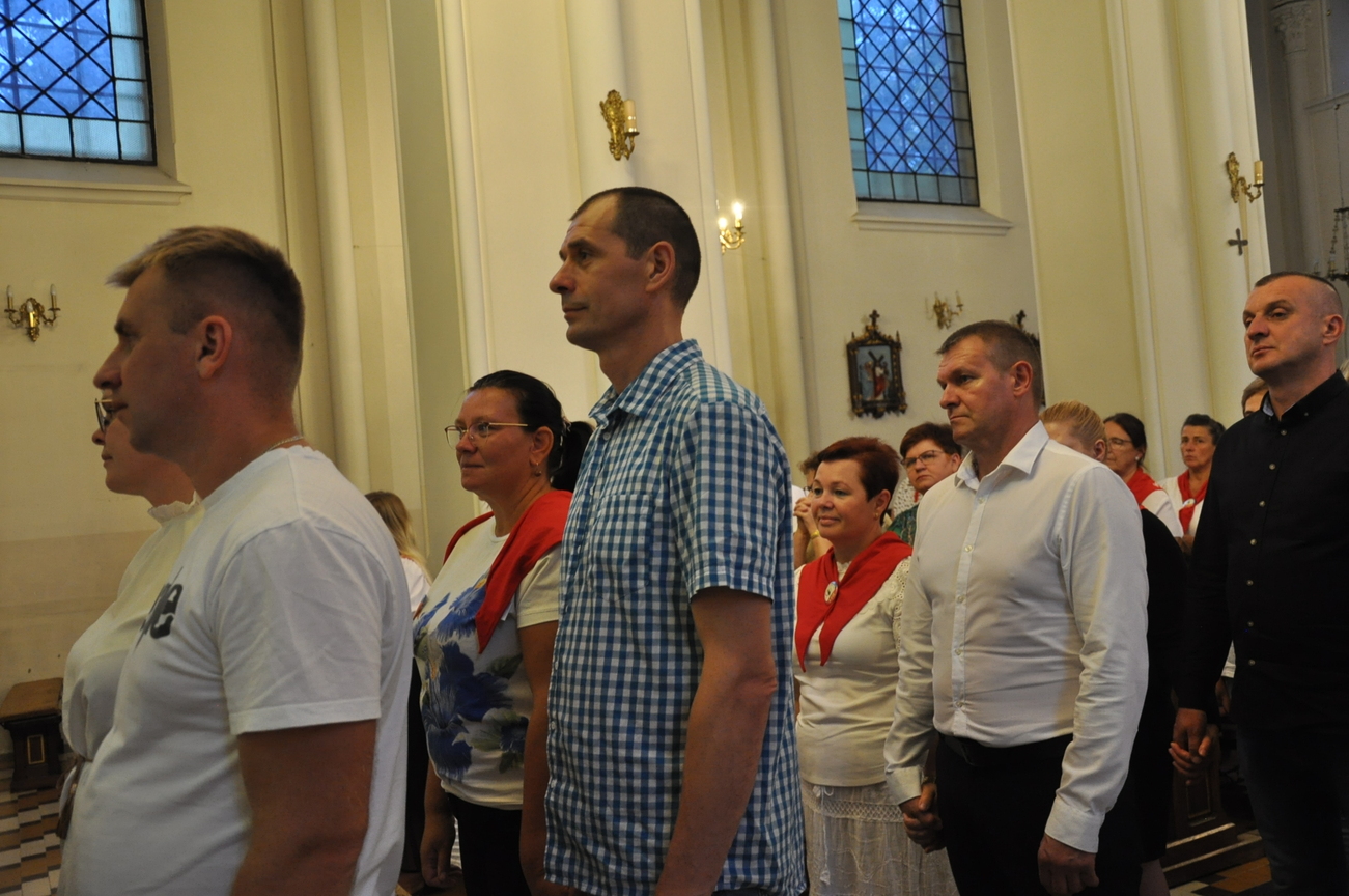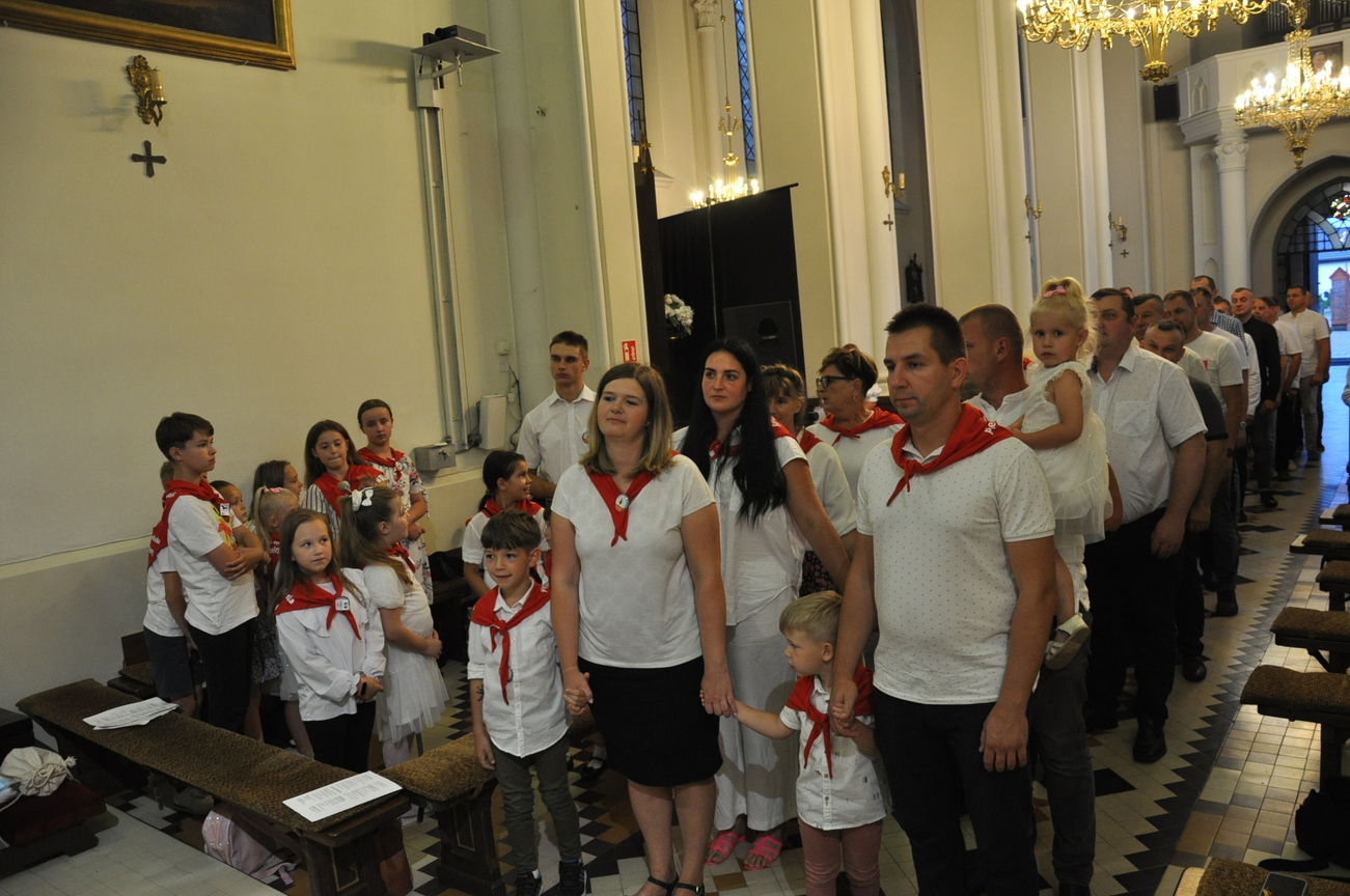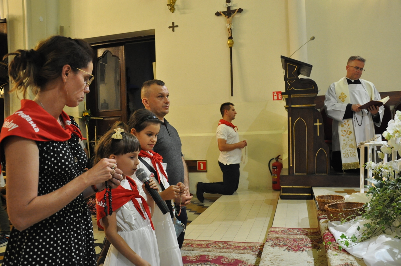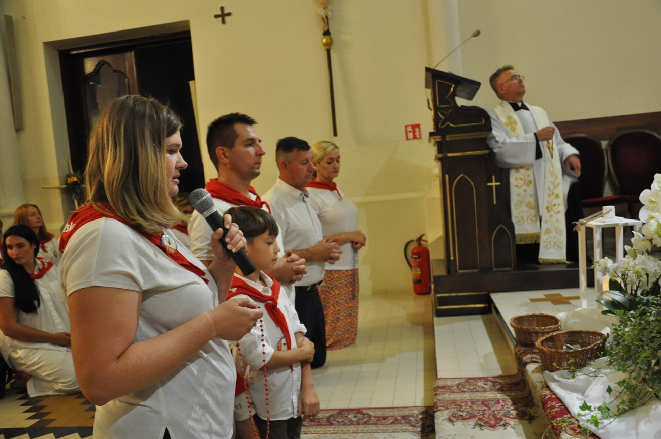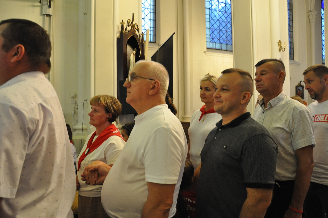 Czwarty dzień pielgrzymki przebiegał pod hasłem RODZINA. Szczególnym patronem  dnia dzisiejszego był Św. Józef, którego wizerunek w uroczystej procesji do ołtarza  przynieśli przedstawiciele mężów i ojców naszej rodziny parafialnej. Małżonkowie przed Bogiem i w obecności swoich dzieci odnowili przysięgę małżeńską i jak to było w dniu ślubu, razem podeszli aby przyjąć Pana Jezusa do swego serca i życia rodzinnego. A rozważając tajemnice Różańca Świętego dziękowali za otrzymane łaski i prosili o błogosławieństwo na dalsze lata.