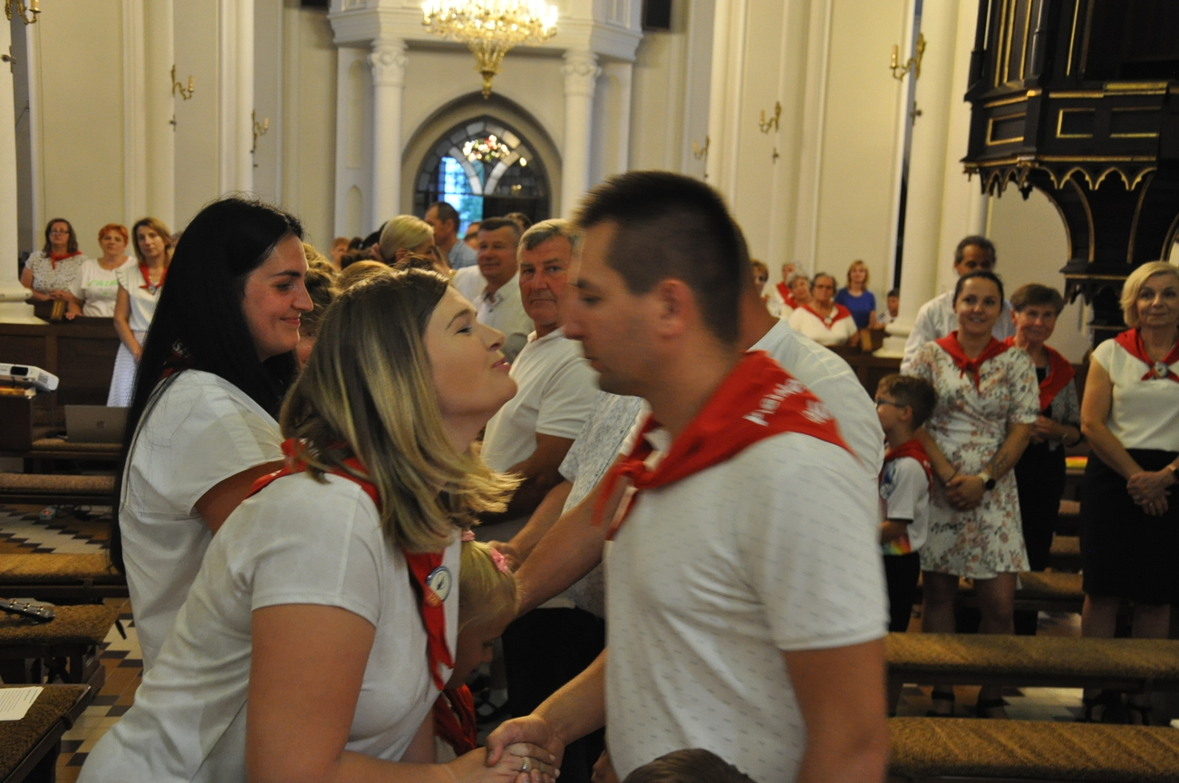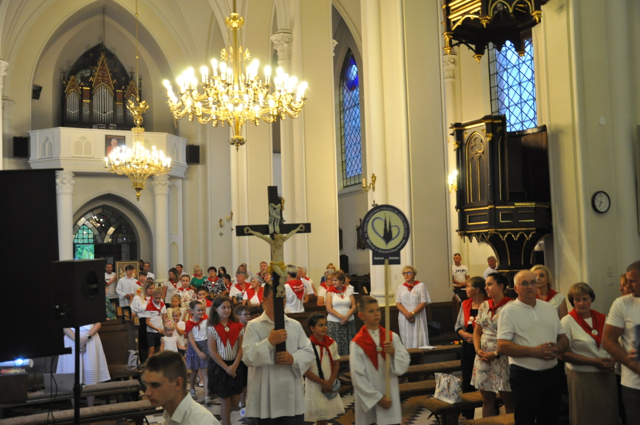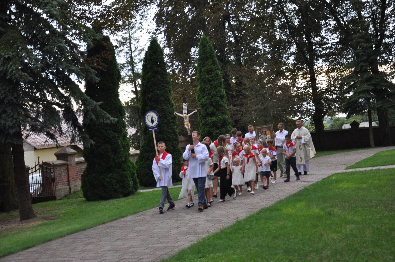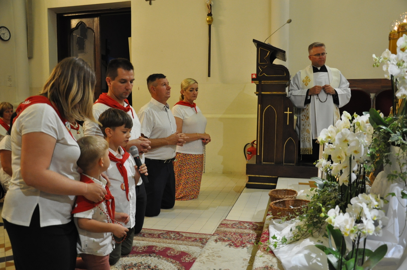 Czwarty dzień pielgrzymki przebiegał pod hasłem RODZINA. Szczególnym patronem  dnia dzisiejszego był Św. Józef, którego wizerunek w uroczystej procesji do ołtarza  przynieśli przedstawiciele mężów i ojców naszej rodziny parafialnej. Małżonkowie przed Bogiem i w obecności swoich dzieci odnowili przysięgę małżeńską i jak to było w dniu ślubu, razem podeszli aby przyjąć Pana Jezusa do swego serca i życia rodzinnego. A rozważając tajemnice Różańca Świętego dziękowali za otrzymane łaski i prosili o błogosławieństwo na dalsze lata.