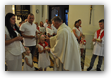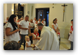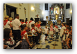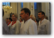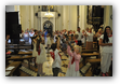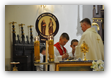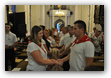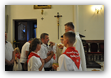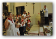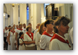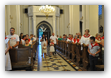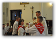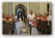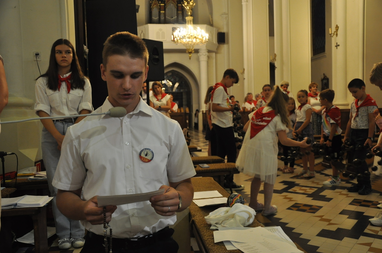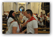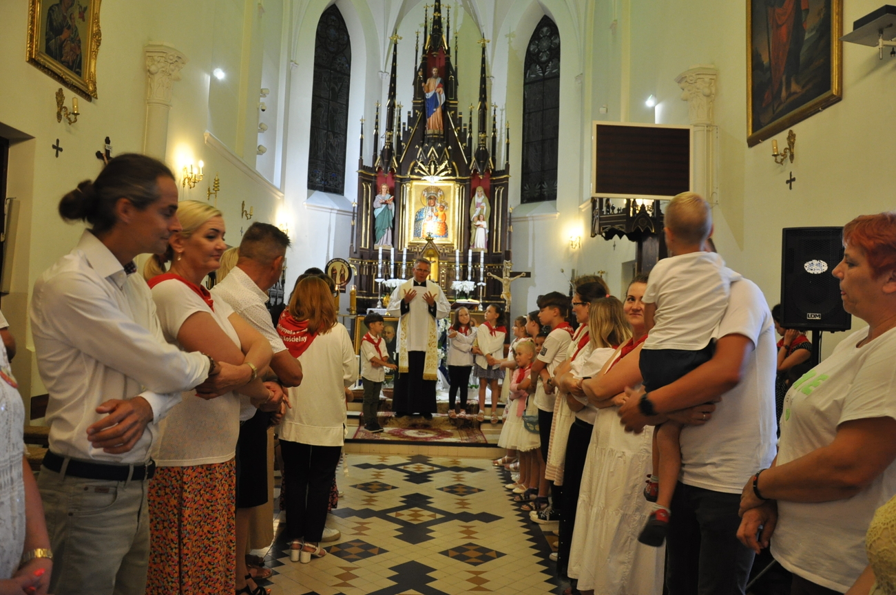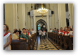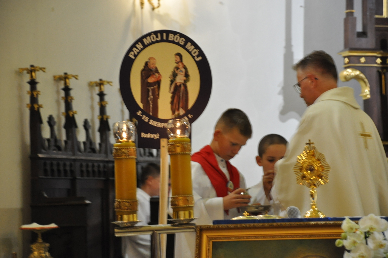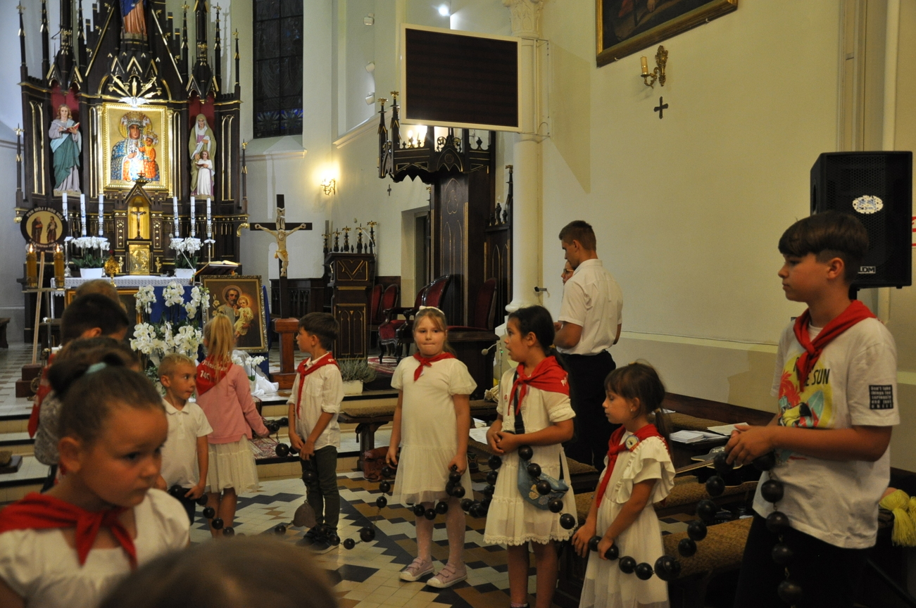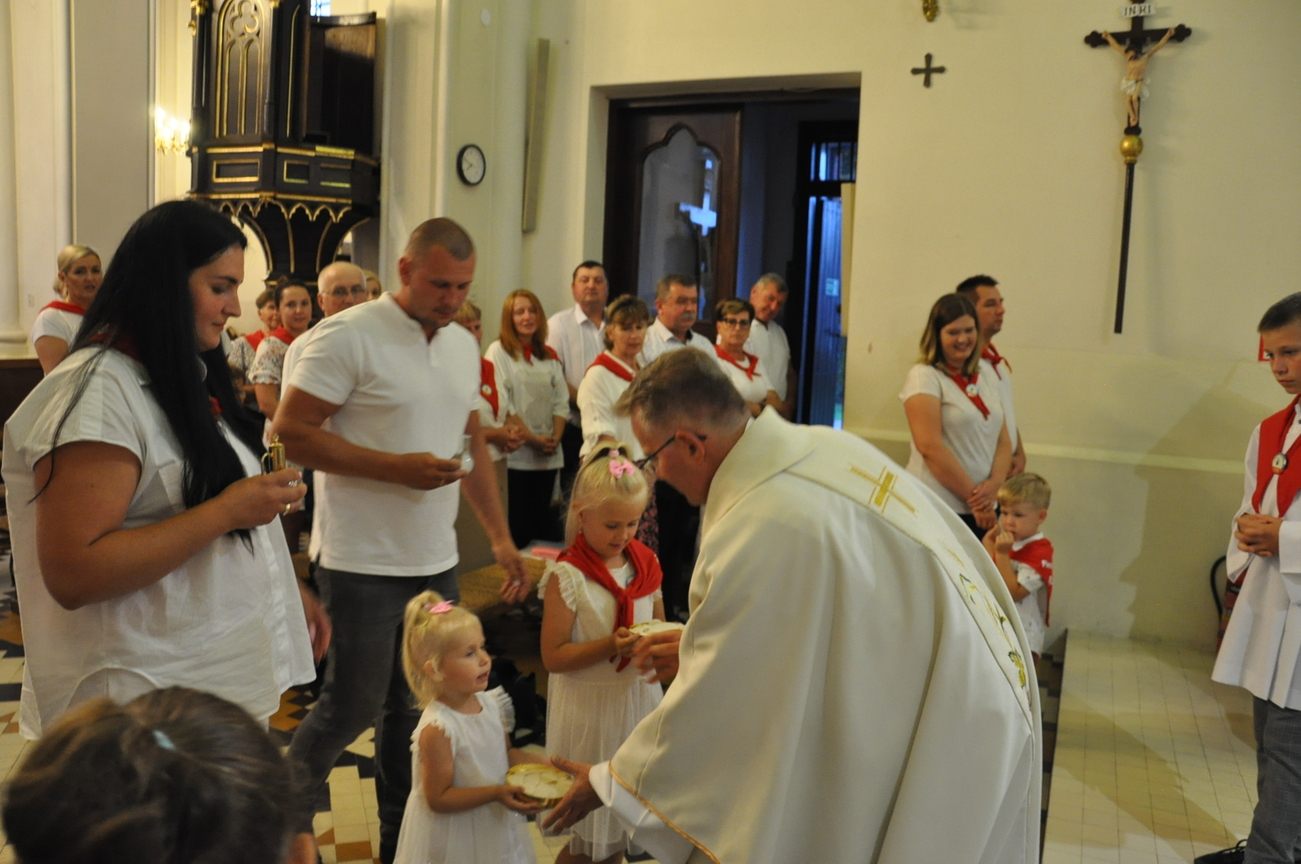 Czwarty dzień pielgrzymki przebiegał pod hasłem RODZINA. Szczególnym patronem  dnia dzisiejszego był Św. Józef, którego wizerunek w uroczystej procesji do ołtarza  przynieśli przedstawiciele mężów i ojców naszej rodziny parafialnej. Małżonkowie przed Bogiem i w obecności swoich dzieci odnowili przysięgę małżeńską i jak to było w dniu ślubu, razem podeszli aby przyjąć Pana Jezusa do swego serca i życia rodzinnego. A rozważając tajemnice Różańca Świętego dziękowali za otrzymane łaski i prosili o błogosławieństwo na dalsze lata.