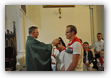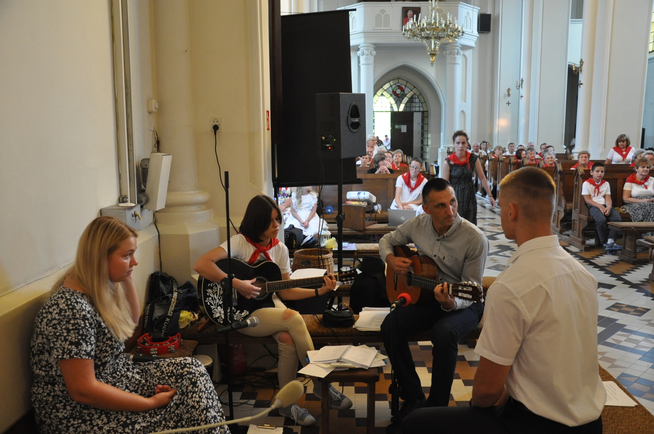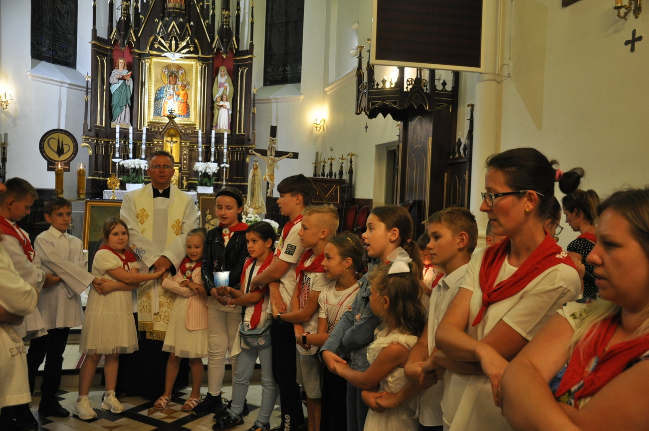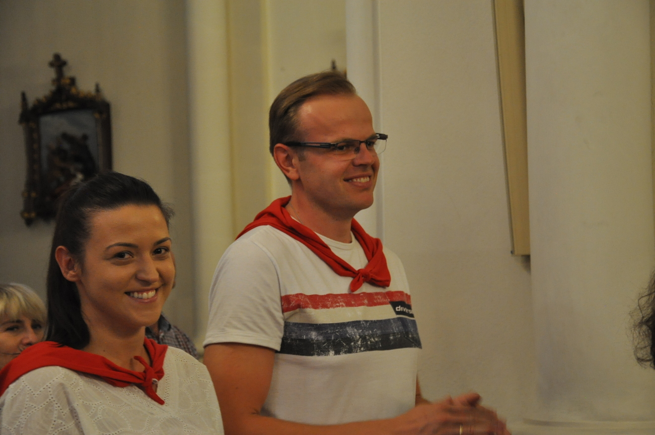To już 12 dzień Duchowego Pielgrzymowania. Według planu trasy Pieszej Pielgrzymki dzisiaj dotarliśmy do Mirowa, a tam tradycją są śluby pielgrzymkowe. W naszej wspólnocie parafialnej podobna tradycja miała miejsce. Co prawda nie ślub, a 1 rocznica ślubu. Podczas Mszy św. modliliśmy się w intencji państwa Mileny i Sebastiana. Ks. Sławomir udzielił małżonkom uroczystego błogosławieństwa. Oczywiście nie zabrakło też wyśpiewanych życzeń od wszystkich parafian i braw.