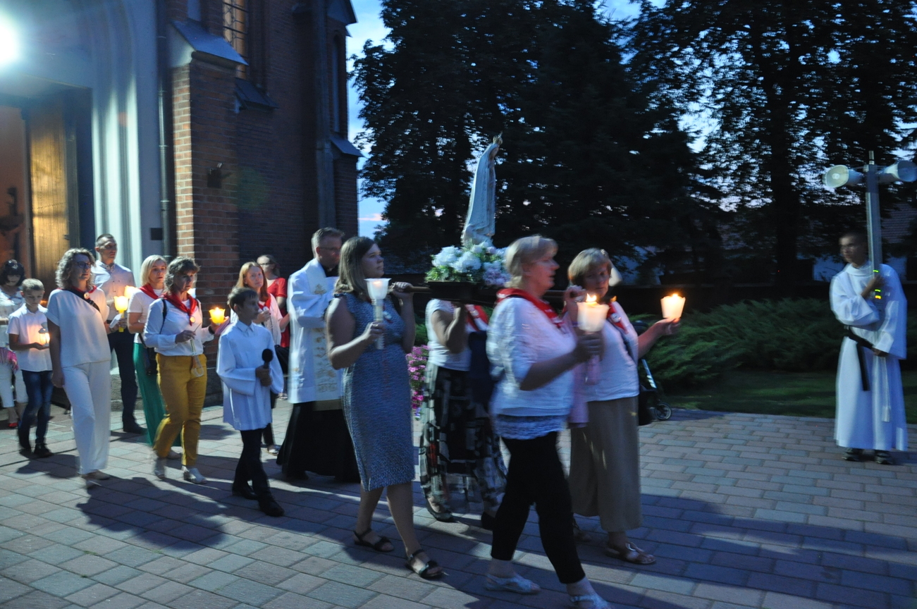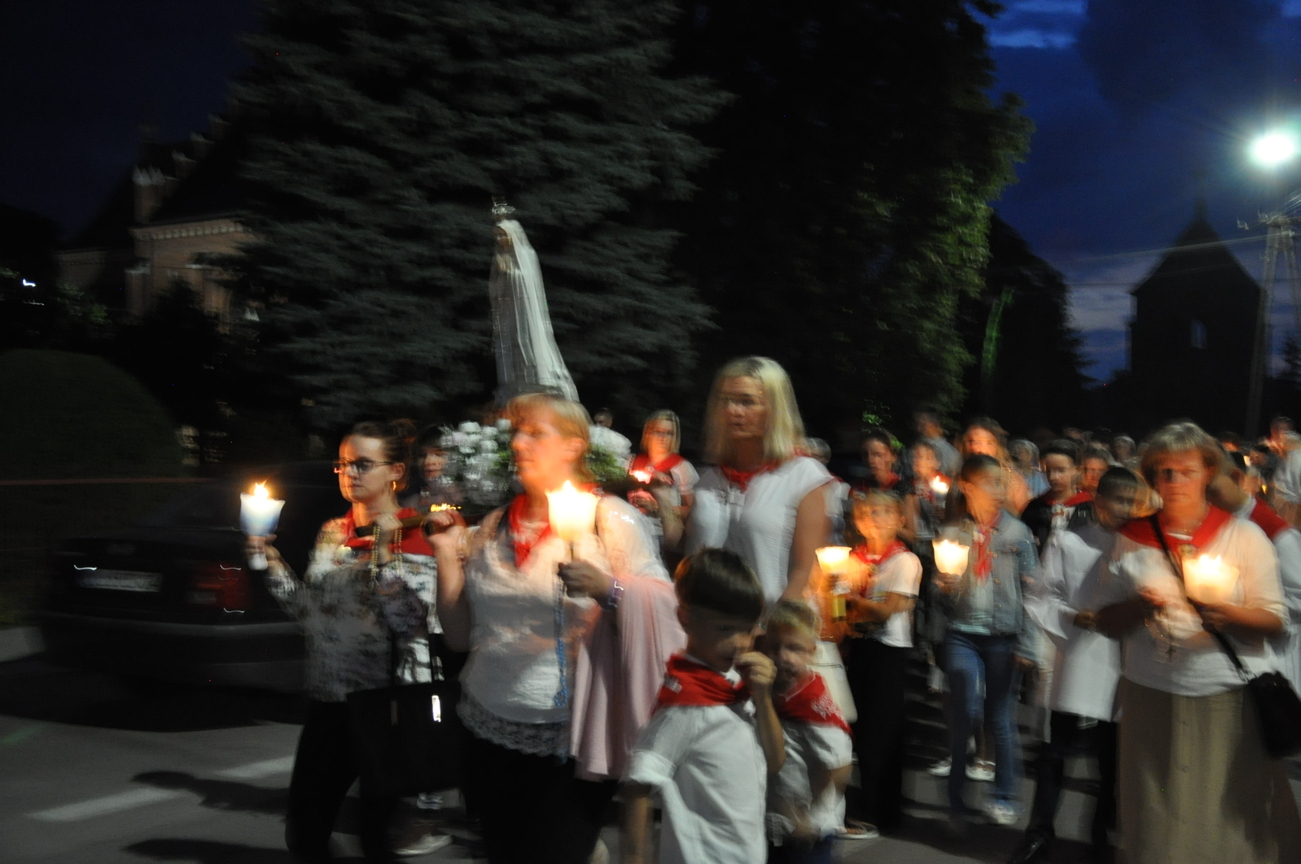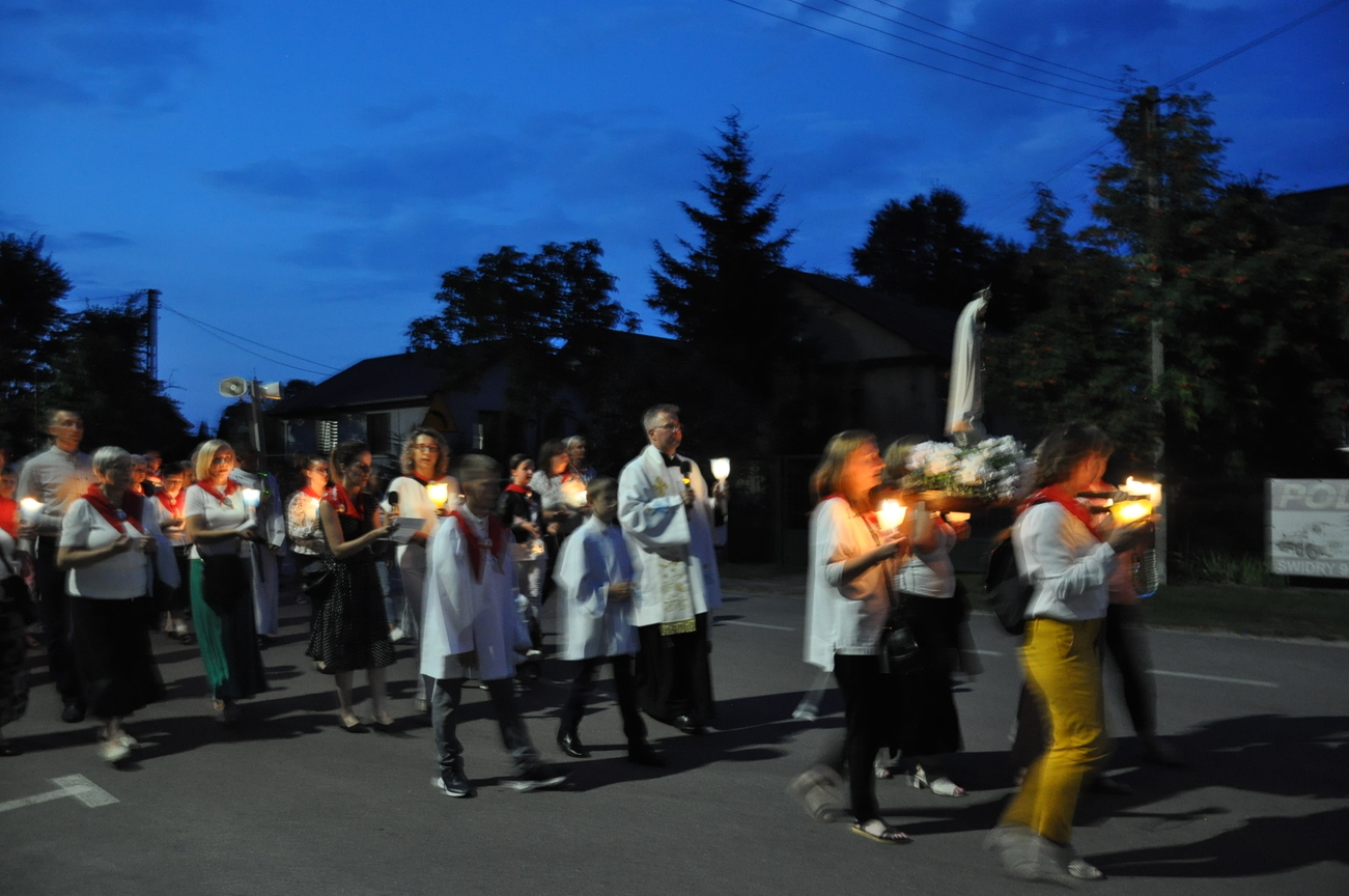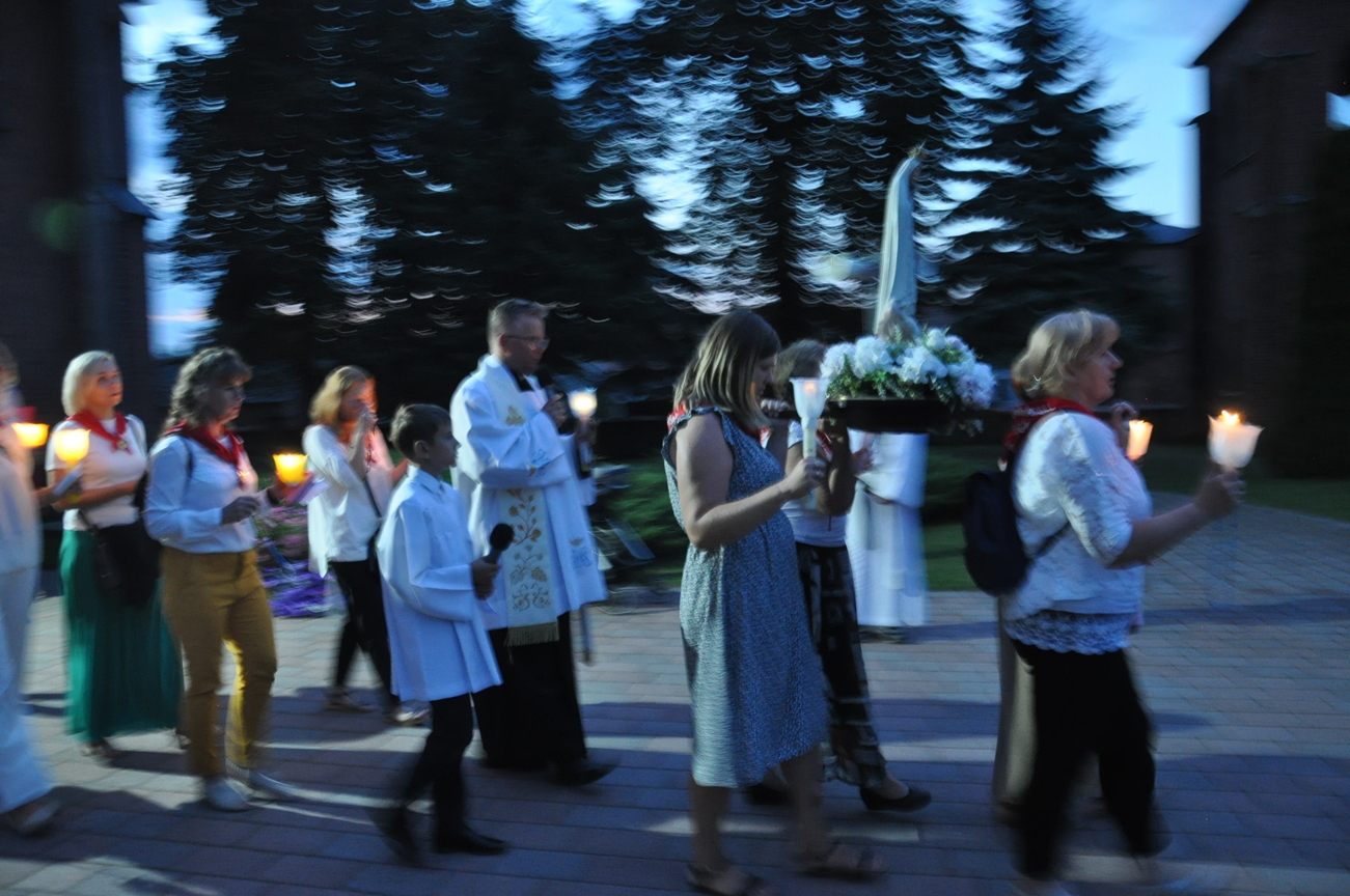 Nasze modlitewne czuwanie zakończyliśmy nabożeństwem fatimskim. Odmawiając różaniec i niosąc figurkę Matki Bożej Fatimskiej udaliśmy się pod Krzyż Misyjny na cmentarzu.