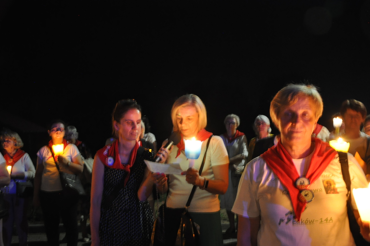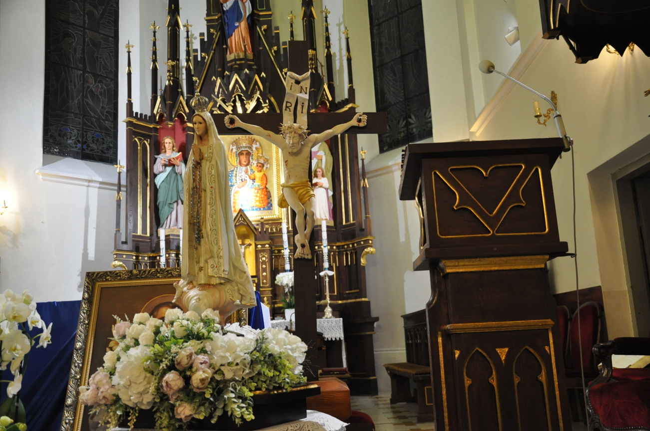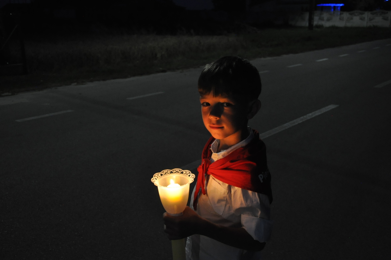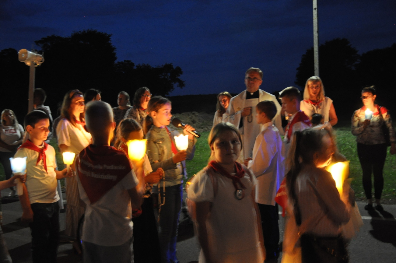 Nasze modlitewne czuwanie zakończyliśmy nabożeństwem fatimskim. Odmawiając różaniec i niosąc figurkę Matki Bożej Fatimskiej udaliśmy się pod Krzyż Misyjny na cmentarzu.