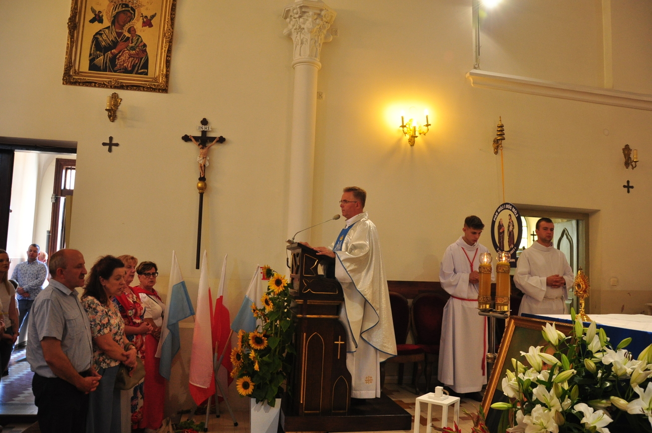 Na zakończenie spotkania Eucharystycznego zostały poświęcone bukiety z ziół, warzyw, owoców i kwiatów przyniesionych jako wyraz wdzięczności Matce Bożej za opiekę.