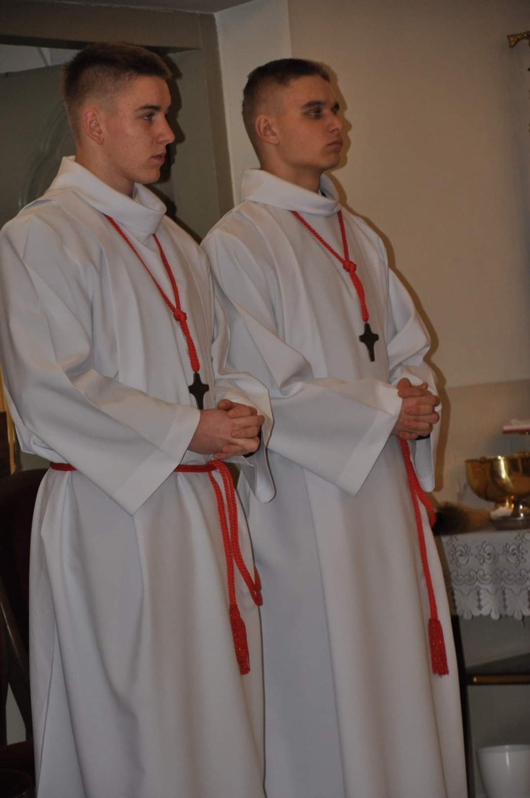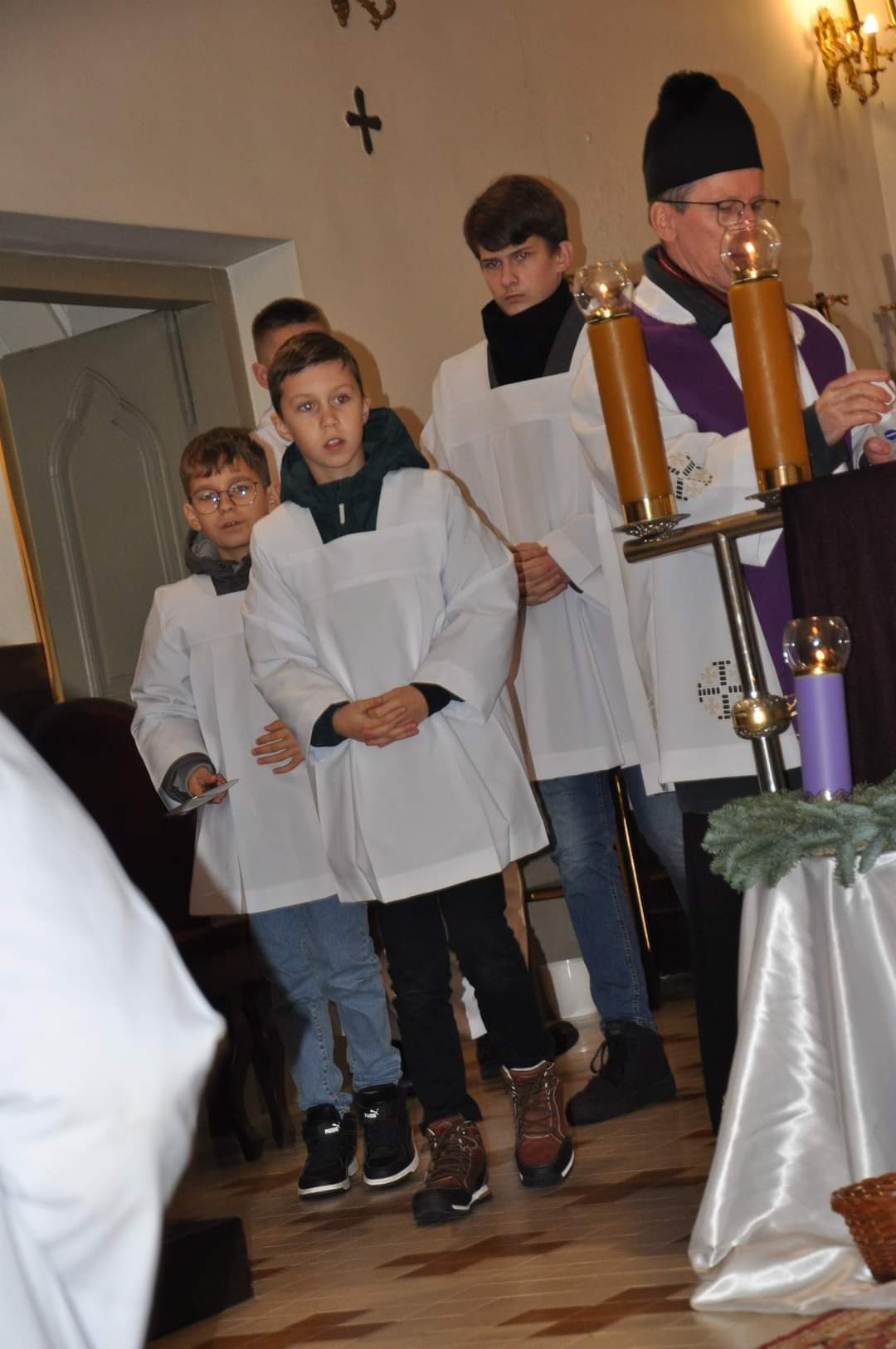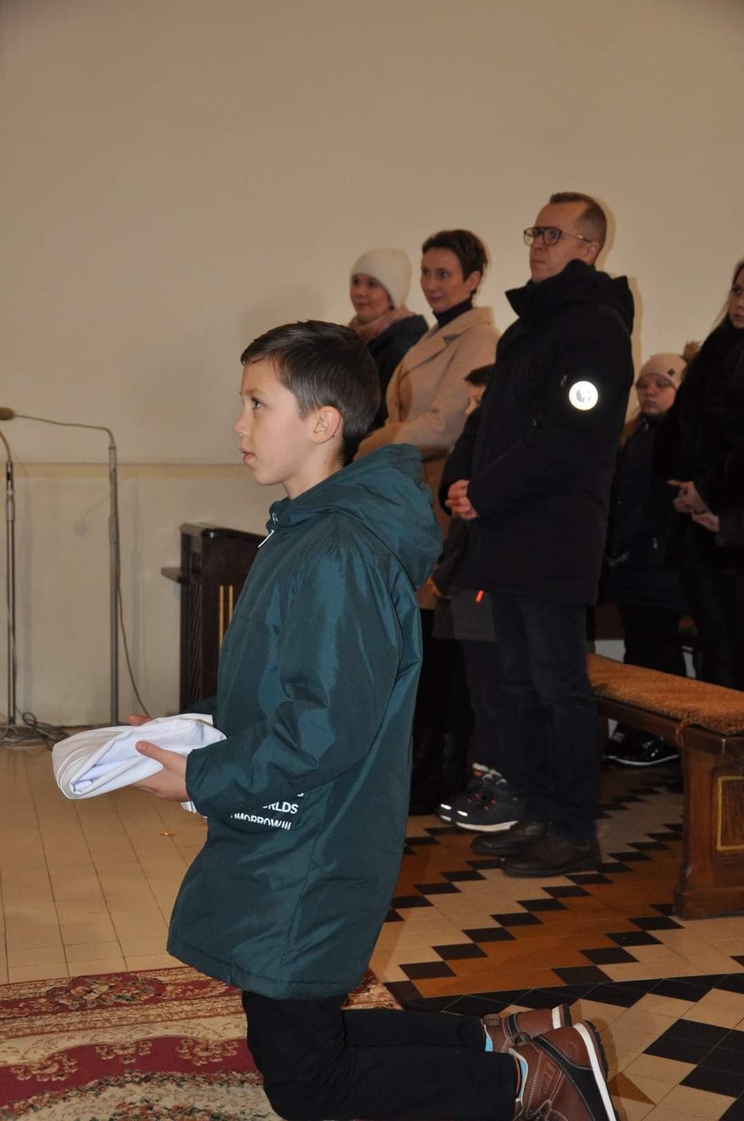 W czasie niedzielnej Eucharystii do grona ministrantów został włączony jeden z kandydatów - Dominik. Ksiądz celebrans poświęcił komżę ministrancką, a rodzice Dominika, pomogli mu włożyć strój służby przy ołtarzu oraz pobłogosławili na lata trwaniu przy ołtarzu.