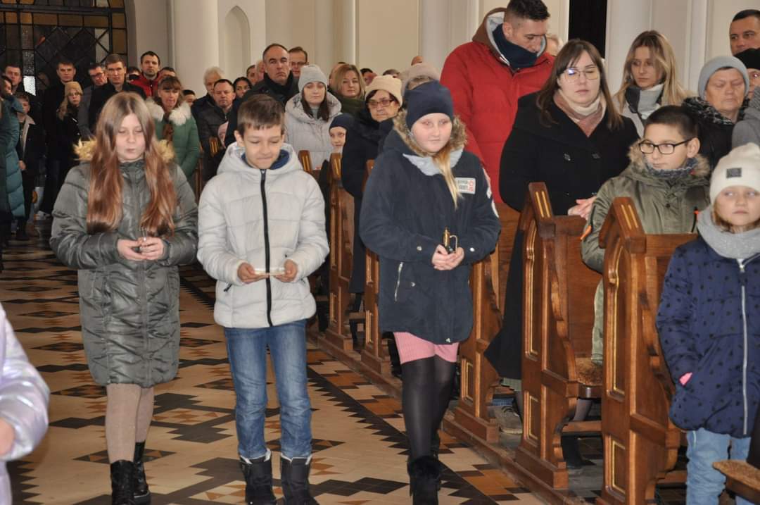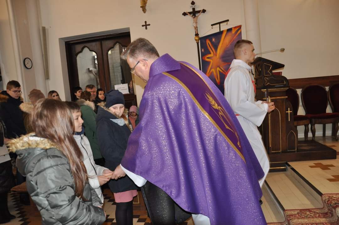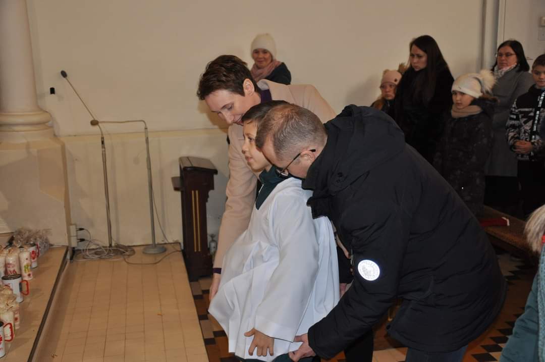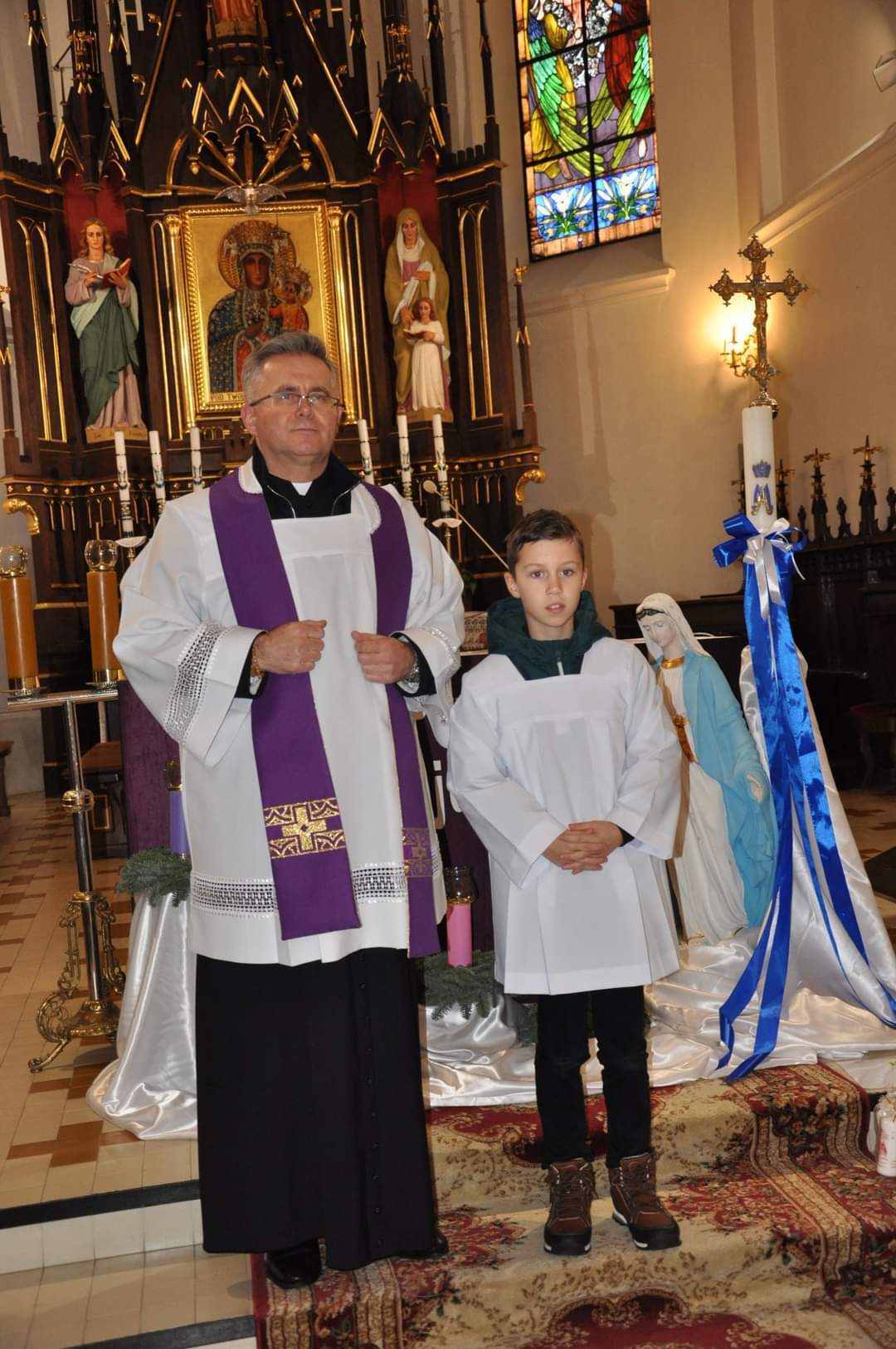 W czasie niedzielnej Eucharystii do grona ministrantów został włączony jeden z kandydatów - Dominik. Ksiądz celebrans poświęcił komżę ministrancką, a rodzice Dominika, pomogli mu włożyć strój służby przy ołtarzu oraz pobłogosławili na lata trwaniu przy ołtarzu.