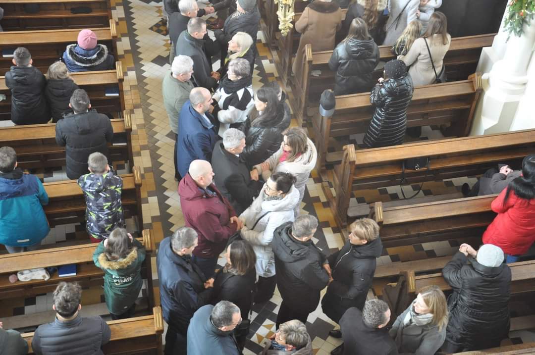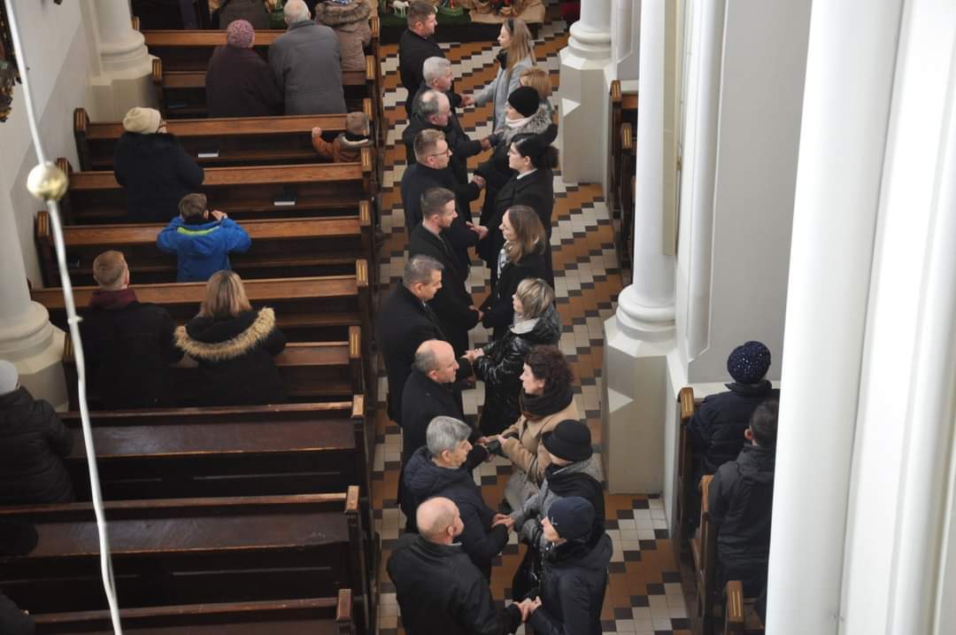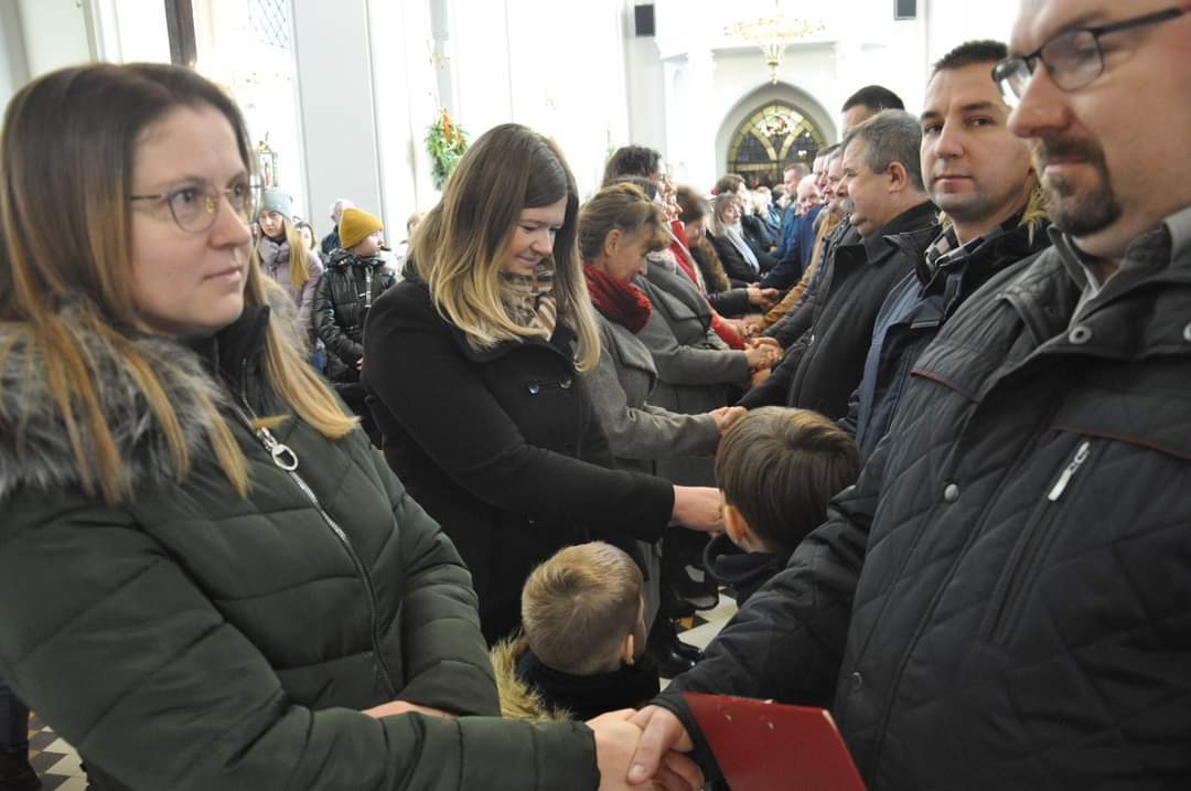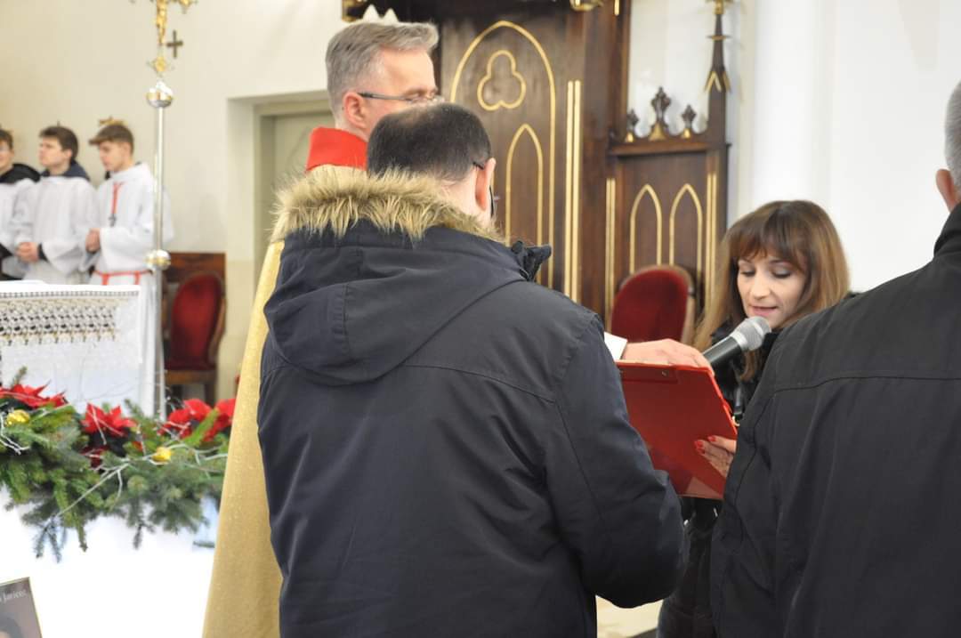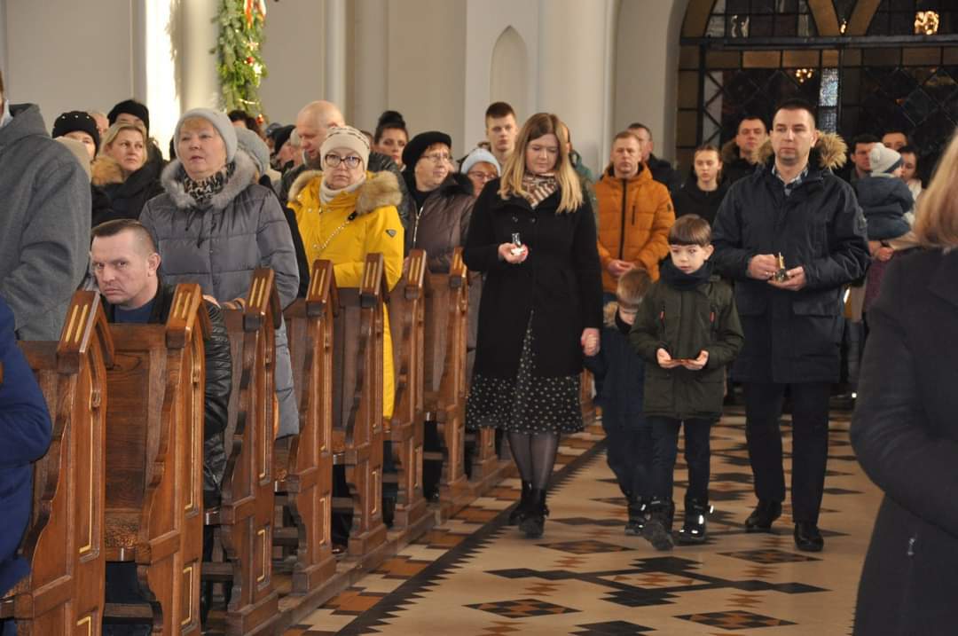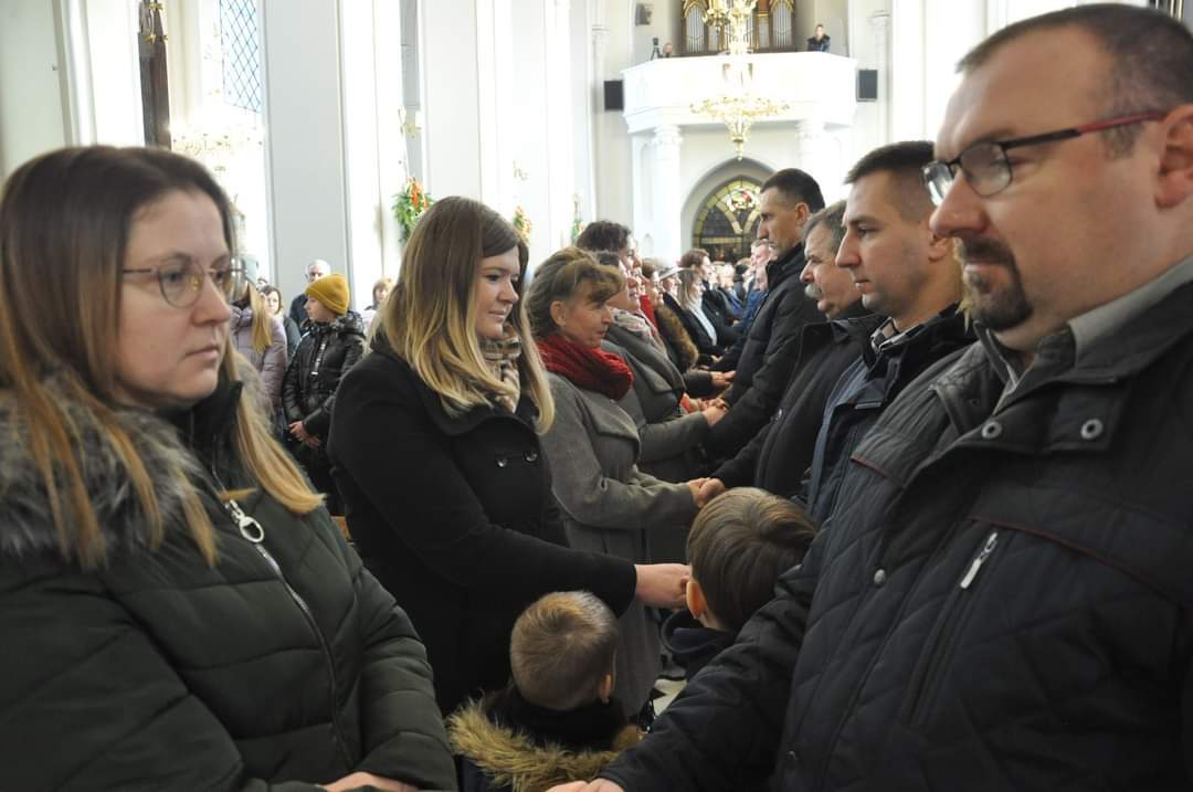 Podczas Mszy świętych o godzinie 10 oraz o godzinie 12 małżonkowie odnowili przysięgę małżeńską. Homilia skłaniała nas do pochylenie się nad pytaniem: CZY W CENTRUM NASZEGO ŻYCIA RODZINNEGO JEST JEZUS?? Tak było w Rodzinie z Nazaretu. Nie złamały ich żadne troski - ani konieczność ucieczki do obcego kraju, ani trudy dnia codziennego, ani bolesne słowa i zdrady bliskich osób. Ale oni pokazują nam dziś jak żyć: UFAĆ BOGU WE WSZYTSKIM, tym co dobre i co trudne. Po homilii przedstawiciel mężów oraz przedstawicielka żon odczytali poruszające treści. Oto fragment: