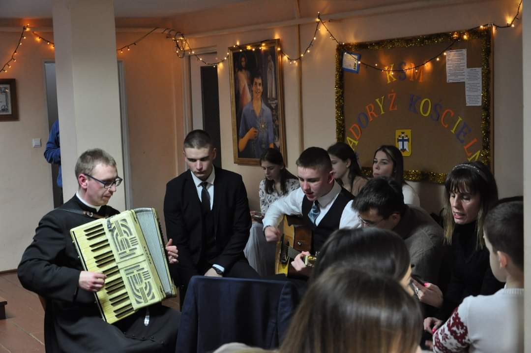 Tego dnia w Ewangelii usłyszeliśmy o gotowości wędrówki, pójścia dobrą drogą.  I wraz z nią gościliśmy pieszych i duchowych pielgrzymów gr. 12 B z dekanatu adamowskiego, gdzie po wspólnym kolędowaniu odbyło się w salce parafialnej spotkanie opłatkowe.