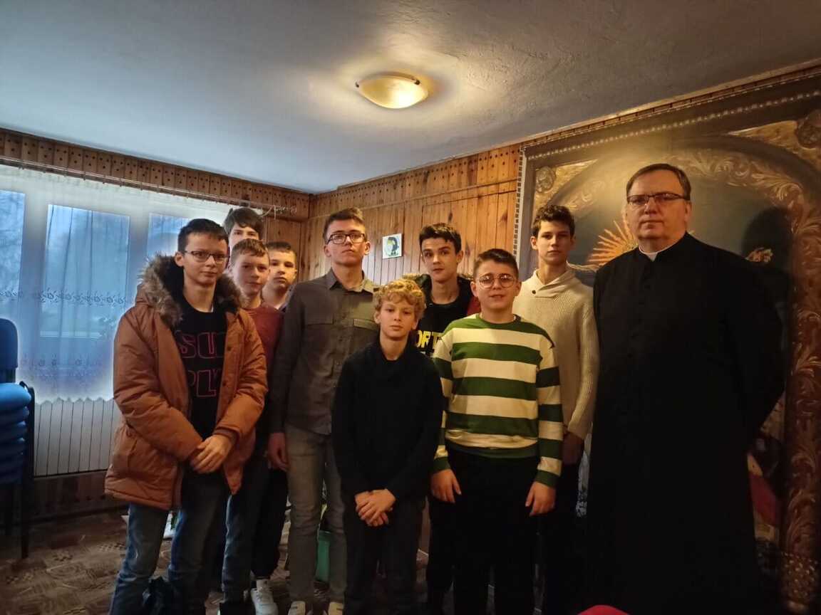 10 lutego w Rykach odbyło się kolejne spotkanie szkoleniowe z kursu na lektora. Wśród innych przedstawicieli naszego dekanatu byli z ministranci z naszej parafii. Uczestniczyli w wielu punktach podnosząc swoje kwalifikację służby przy ołtarzu.  Z muzykologii ćwiczyli rozgrzewanie aparatu mówiącego, uczyli się przybierać odpowiednią postawę podczas czytania, odpowiedniego sposobu wdychania i wypuszczania powietrza.