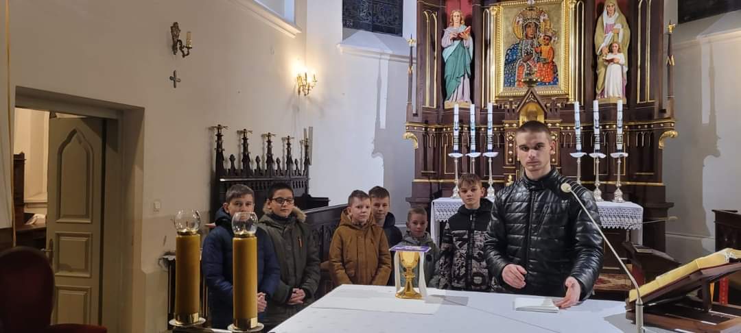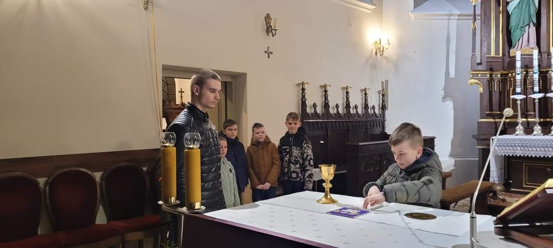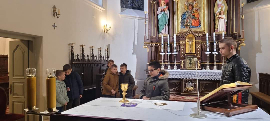 29 lutego odbyło się spotkanie kandydatów na ministrantów, którzy przygotowują się do pełnienia służby przy ołtarzu. Lektor Krzysztof jako starszy kolega przygotował i przeprowadził z chłopcami spotkanie. Dziękujemy.
