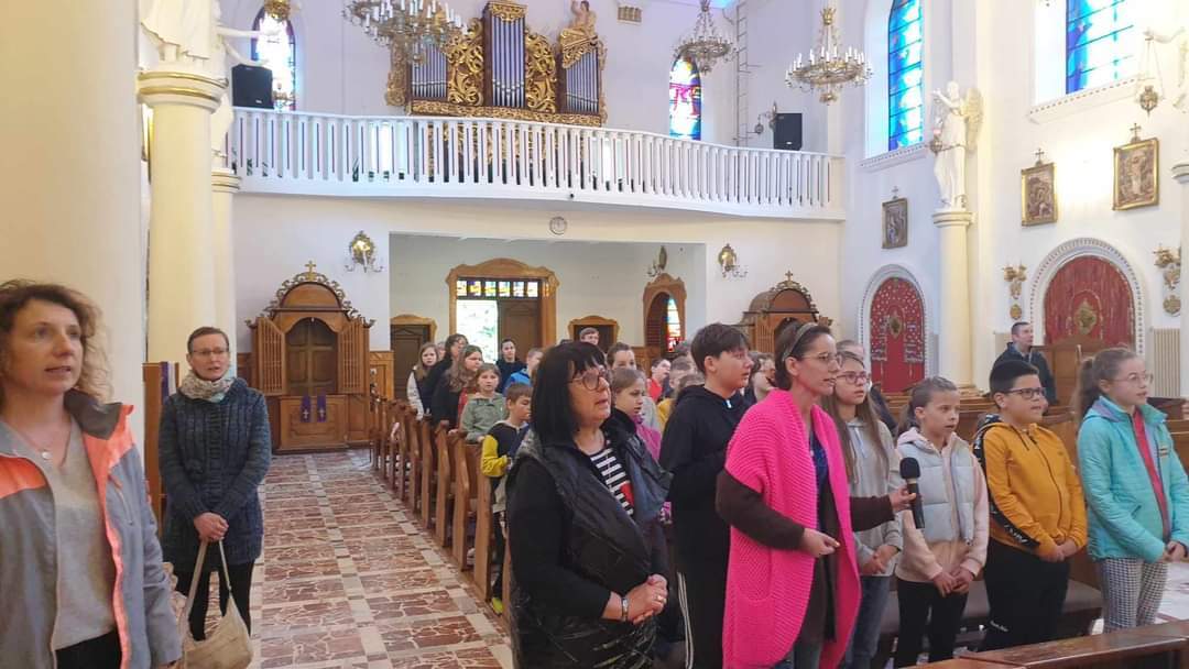 7 maja odbyła się pielgrzymka dziękczynna uczniów klas czwartych przeżywających ROCZNICĘ PIERWSZEJ KOMUNII SWIĘTEJ pod wodzą ks. Kanonika Mieczysława oraz pań katechetek, pielgrzymi o świcie udali się w kierunku ziemi sandomierskiej, aby tam - po Mszy świętej w sanktuarium w Kałkowie oraz zwiedzaniu okolicy -  udać się na drugi co do wysokości  szczyt gór świętokrzyskich - wzgórze Święty Krzyż.  Piękna pogoda dodawała uroku wędrówce. Serdeczne pozdrowienia i wyrazy wdzięczności kierujemy w stronę wszystkich, którzy umożliwili dzieciom tę wyprawę.