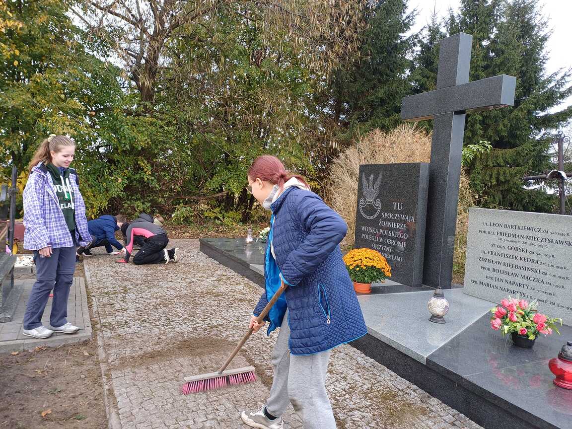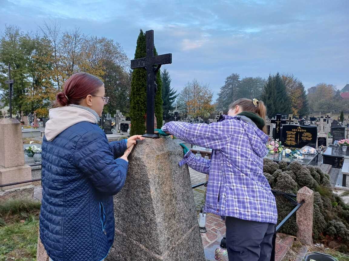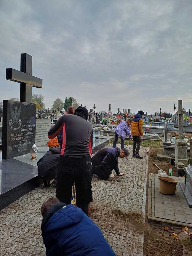 Dzisiejszego poranka, 26 X 2024 r., spotkanie rozpoczęliśmy od wspólnego odmówienia jutrzni. Następnie udaliśmy się na miejscowy cmentarz, gdzie uprzątnęliśmy mogiłę żołnierzy oraz groby śp. ks. Tomasza Bujalskiego i śp. ks. Józefa Szyszko. Praca przy mogiłach była dla nas nie tylko gestem szacunku, ale też ważną lekcją historii i pamięci.