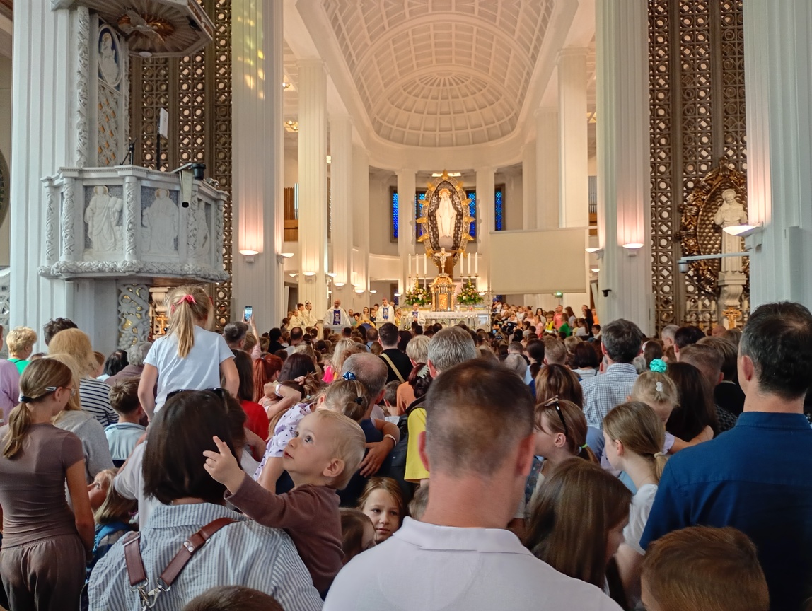 Już od rana teren sanktuarium tętnił radosnym gwarem najmłodszych pielgrzymów z całej Polski. Uroczystości rozpoczęły się Mszą Świętą, której przewodniczył ks. Bp Wojciech Osial z Łowicza. Po Eucharystii czekał ciepły posiłek, który dodał sił do dalszej zabawy.