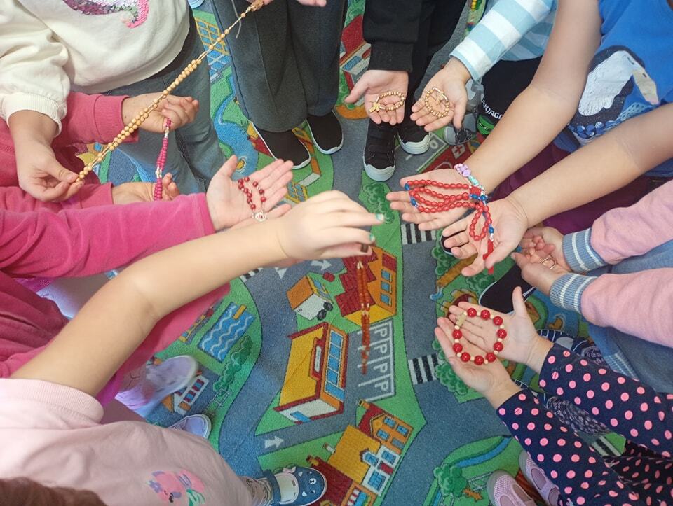W sposób szczególny zapraszamy dzieci, które w tym miesiącu spotykają się na modlitwie różańcowej, ucząc się zawierzenia i ufności wobec Matki Bożej. Pięknym znakiem tej modlitwy jest figurka Maryi, którą najmłodsi – w drodze losowania – zabierają do swoich domów, by modlić się wspólnie z rodziną.