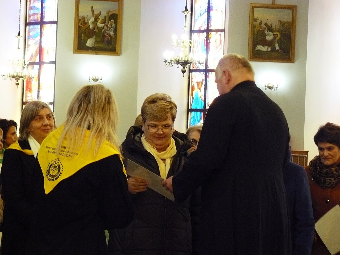 Podczas uroczystości wręczono nominacje i podziękowania dla zelatorów parafialnych. Z radością informujemy, że p. Jadwiga Strzyżewska odebrała nominację na zelatorkę parafialną, a p. Beata Gajownik otrzymała serdeczne podziękowanie za swoją wierną i gorliwą posługę.