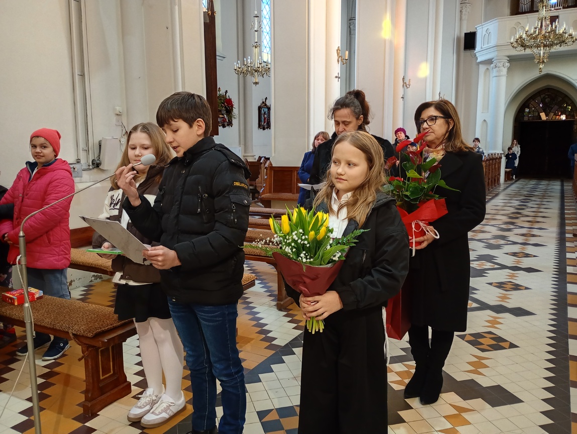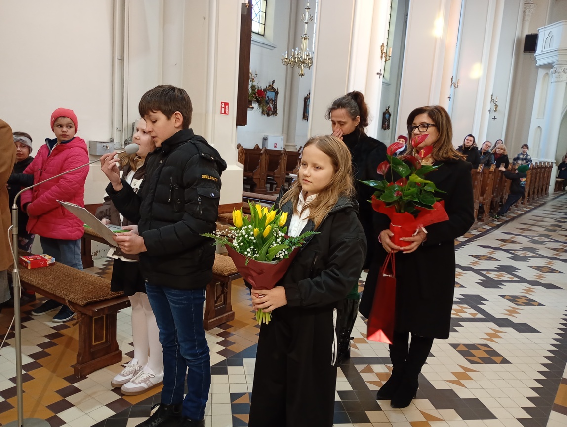 Przedstawiciele dzieci oraz parafian złożyli Dostojnemu Solenizantowi serdeczne życzenia, dziękując za Jego codzienną posługę, troskę o wspólnotę oraz świadectwo wiary. W swoich słowach podkreślili dobroć, pobożność, ciepło oraz oddanie, jakimi Ksiądz Proboszcz obdarza wszystkich parafian, zarówno w chwilach radości, jak i w momentach trudnych.