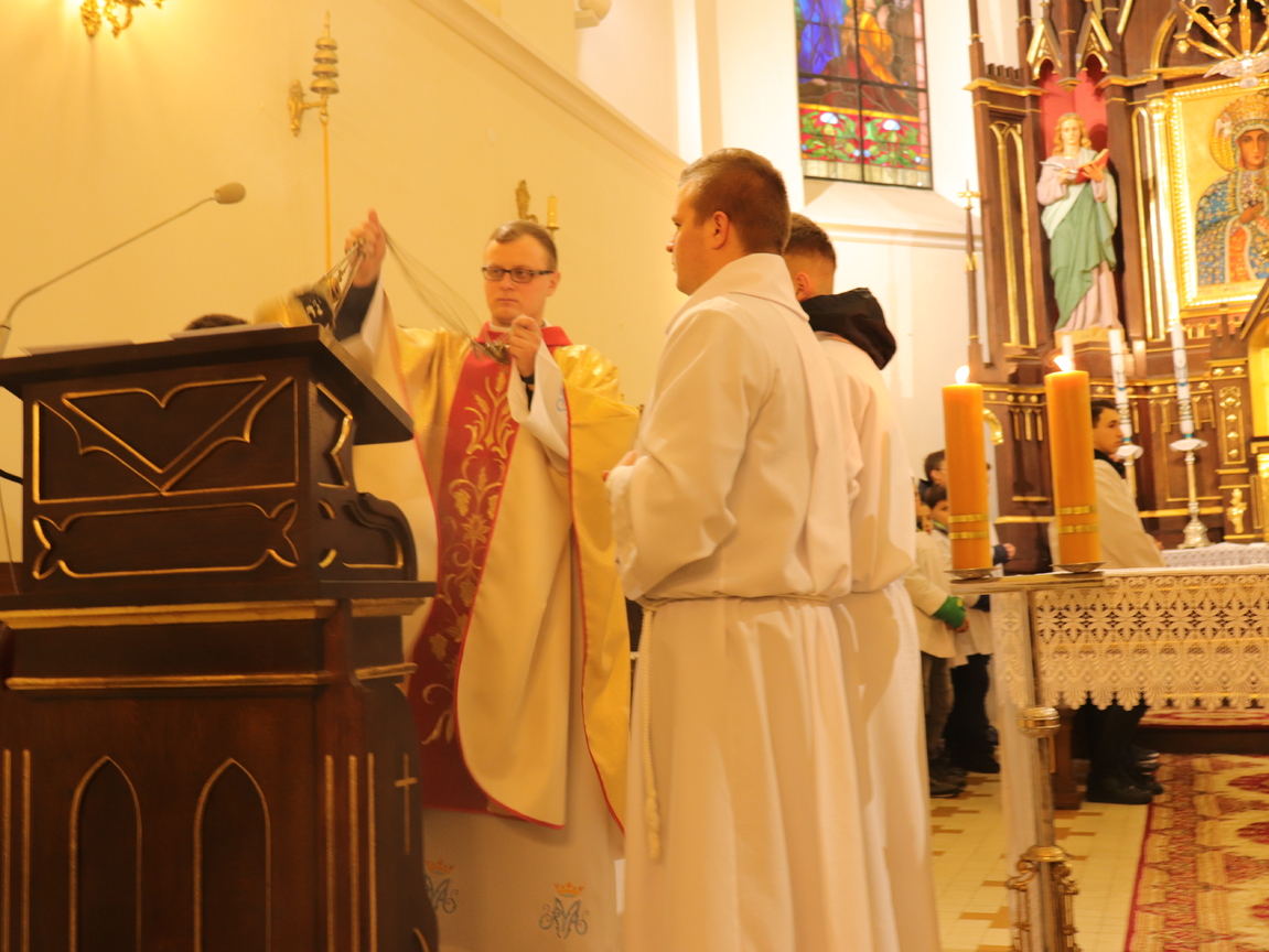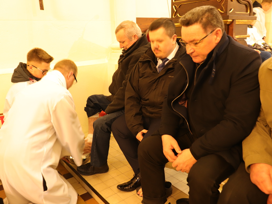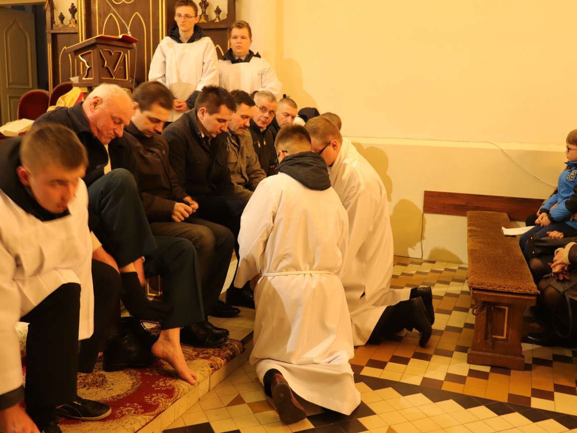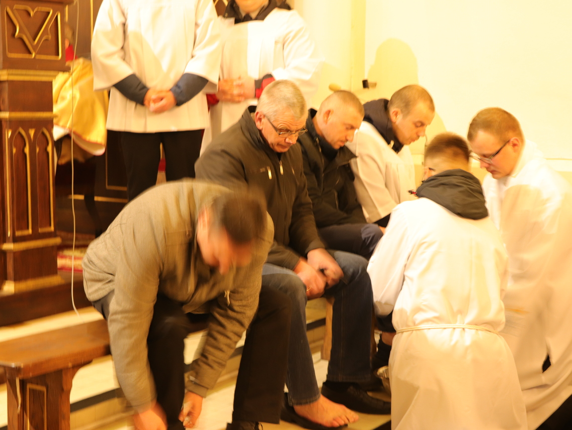 29 marca o godz. 18.00 rozpoczęliśmy w naszej parafii uroczyste przeżywanie Triduum Paschalnego. Na początku Mszy Św. Wieczerzy Pańskiej przedstawiciele naszych parafialnych grup złożyli Księdzu Proboszczowi i Księdzu Wiakriuszowi życzenia w tym szczególnym dniu dla kapłana.