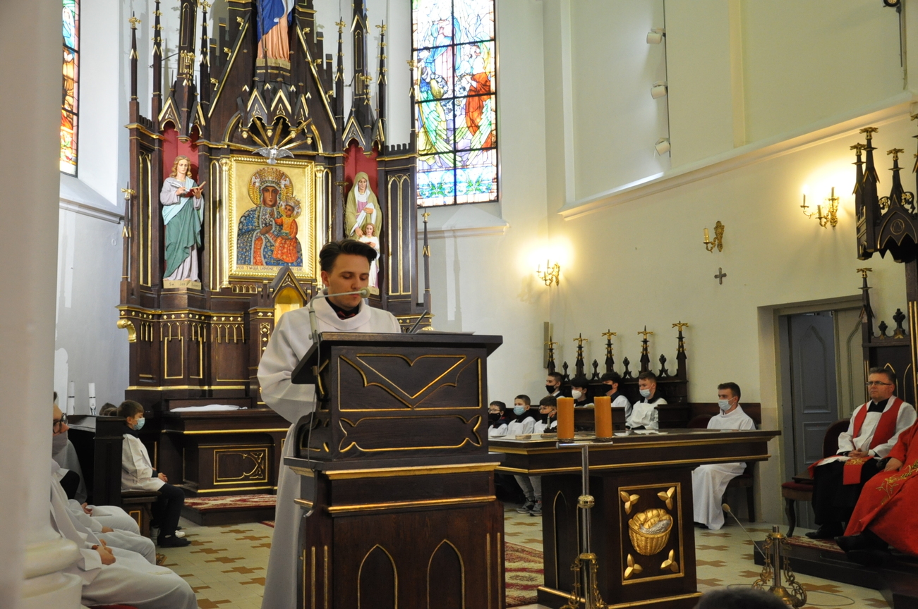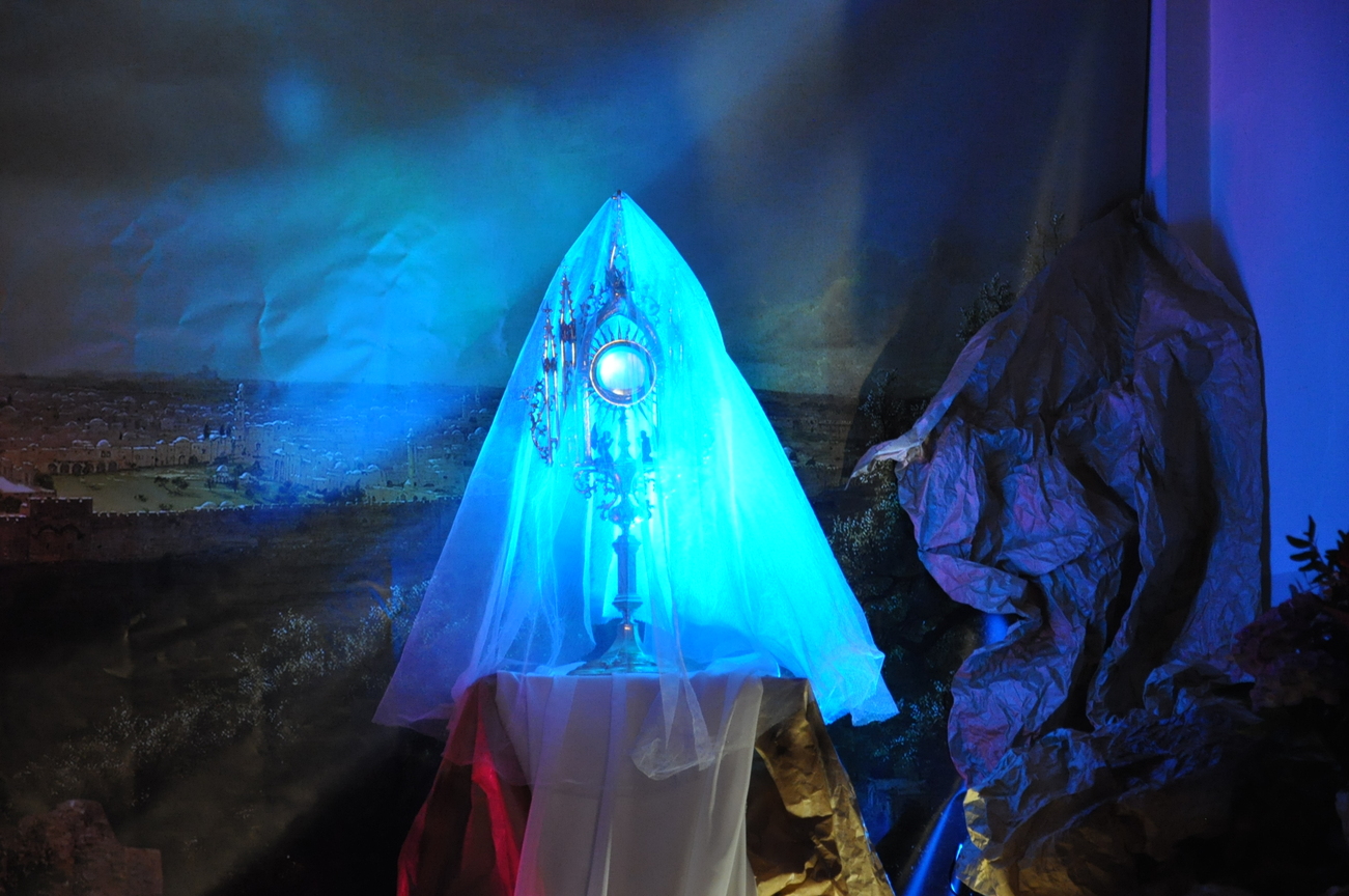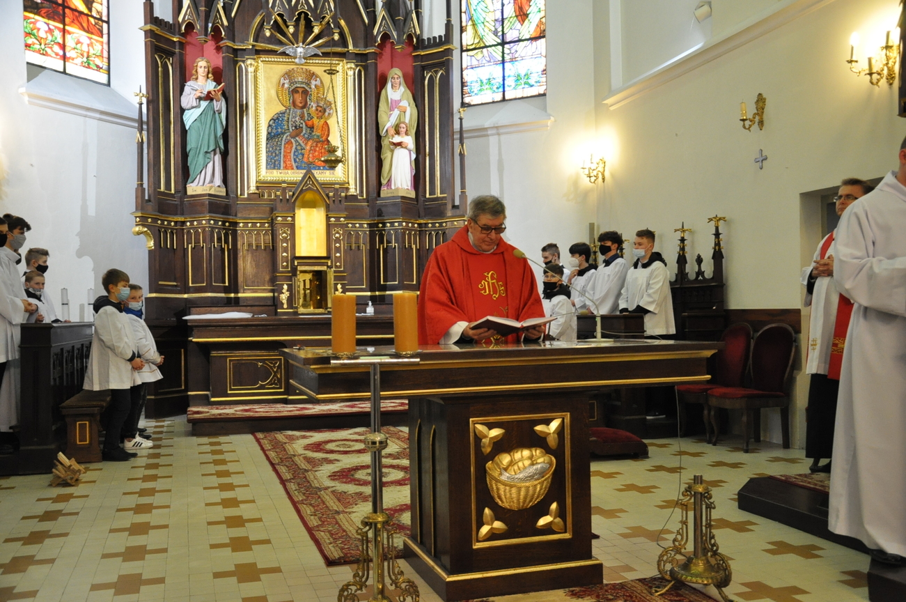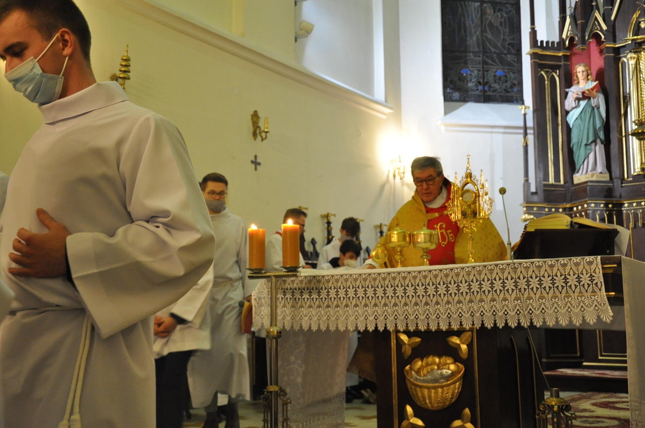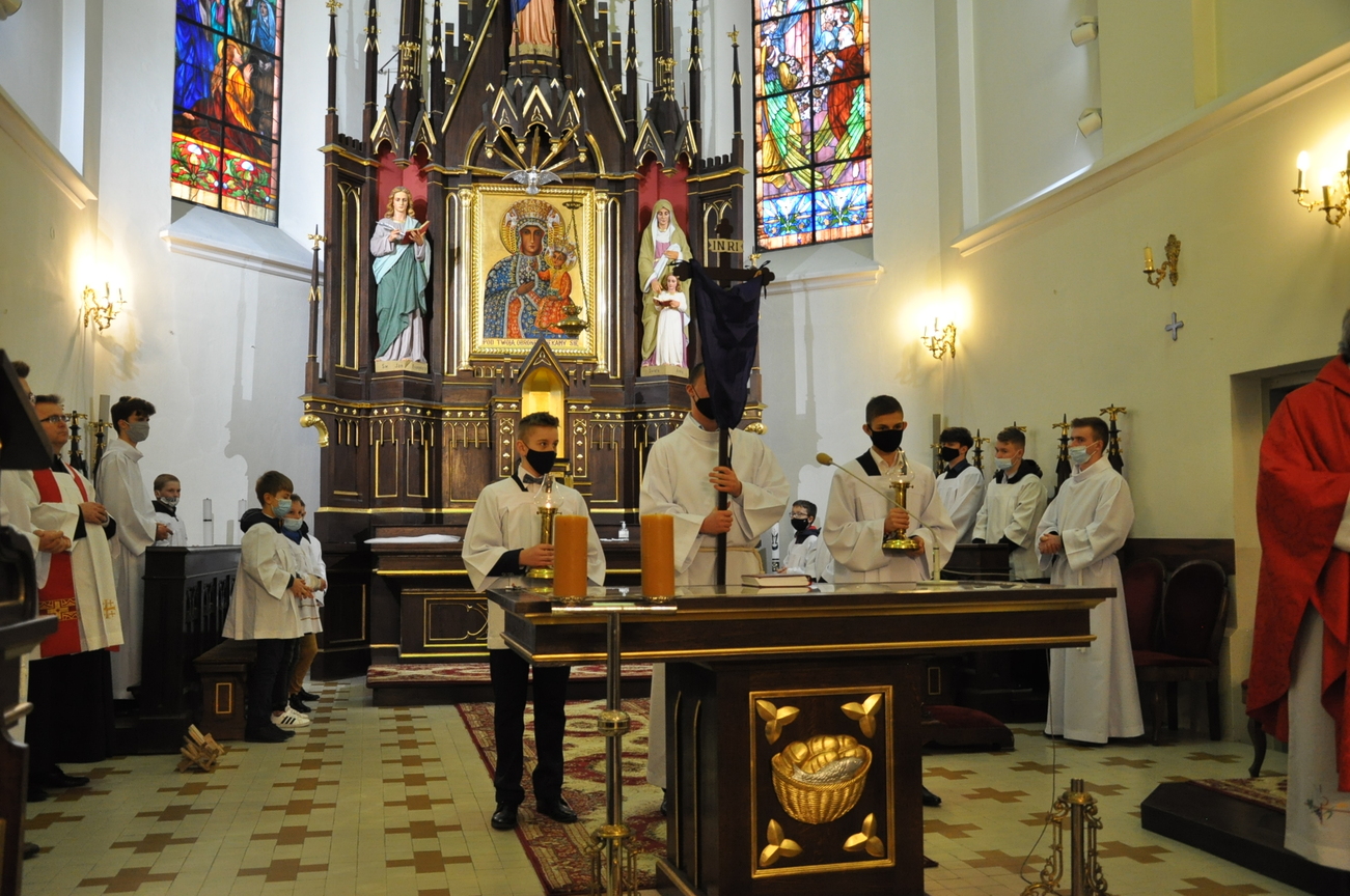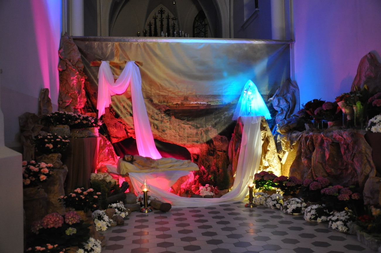 Wielki Piątek to dzień Krzyża, pamiątka śmierci Pana Jezusa. Krzyż jest w centrum liturgii. Przez cały dzień nie sprawuje się Mszy Świętej. Komunii udziela się tylko w czasie Liturgii Męki Pańskiej. Zakazuje się sprawowania Sakramentów, poza Namaszczeniem Chorych i Spowiedzią. Na początku celebrans z asystą zbliża się do Ołtarza. Procesja wejścia odbywa się w milczeniu, bez śpiewu. Kapłan oddaje cześć Chrystusowi Zbawicielowi – leżąc krzyżem. Wierni w tym czasie, klęcząc, w milczeniu uwielbiają Pana za Jego miłość i przepraszają za swoje grzechy. Następnie odczytuje się opis Męki Pańskiej z Ewangelii Świętego Jana. Potem uroczyście odsłania się Krzyż. W czasie tej czynności kapłan trzykrotnie śpiewa: „Oto drzewo krzyża, na którym zawisło Zbawienie świata”, na co ludzie odpowiadają: „Pójdźmy z pokłonem.” Następnie wszyscy wierni mogą podejść i ucałować odsłonięty Krzyż – w tym roku ze względu epidemii w naszym imieniu uczynił to ks. Proboszcz. Potem uczestnicy Liturgii mogą przyjąć Komunię.  Na zakończenie Nabożeństwa przenosi się Najświętszy Sakrament do bocznego ołtarza – Grobu Pańskiego, w monstrancji okrytej przezroczystym welonem. Procesja odbywa się przy śpiewie: „Odszedł Pasterz nasz, co ukochał lud”. Po liturgii znowu odkrywa się ołtarz. Adoracja Najświętszego Sakramentu w Grobie Pańskim trwa do późnych godzin wieczornych.