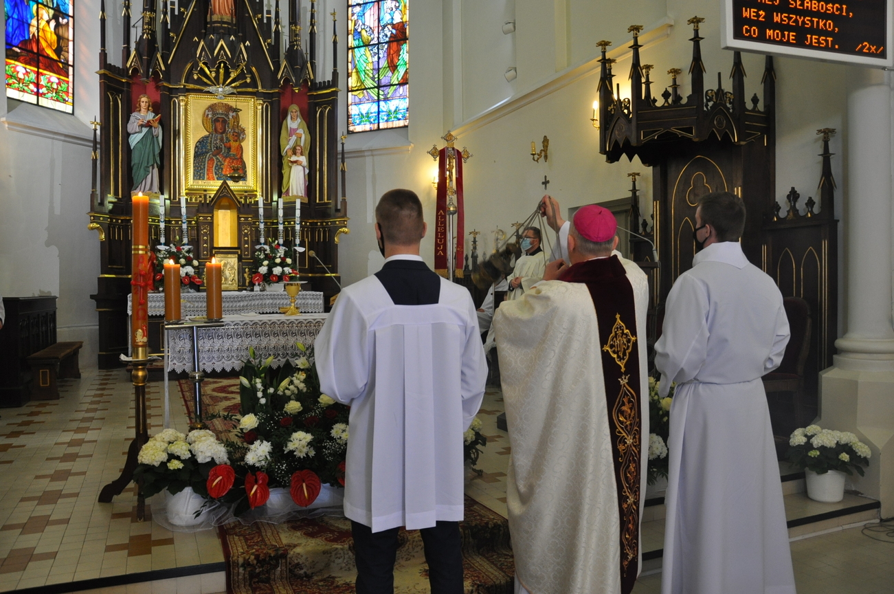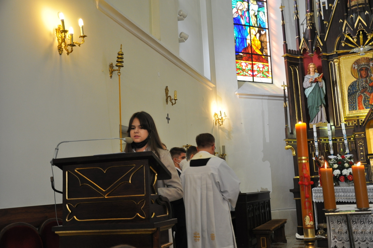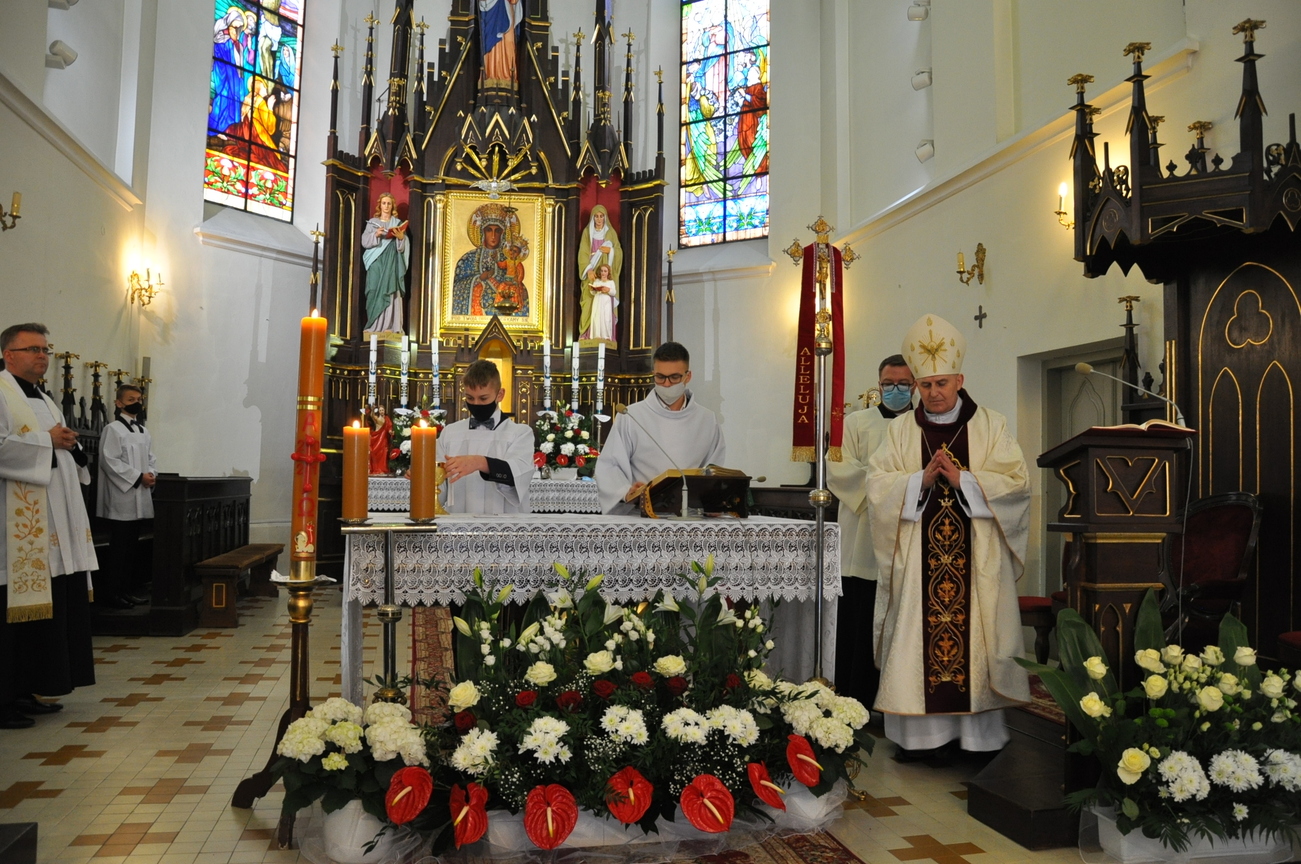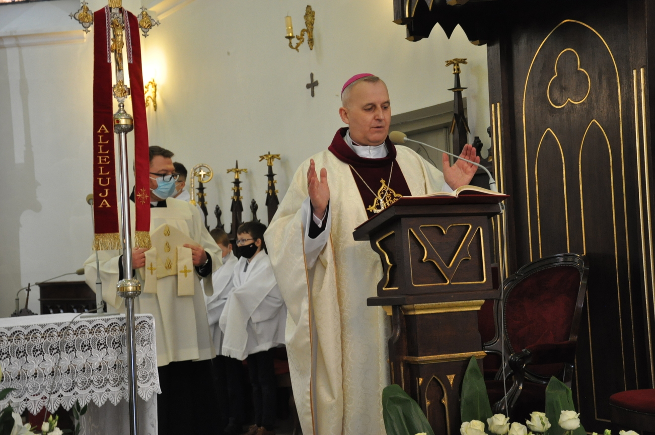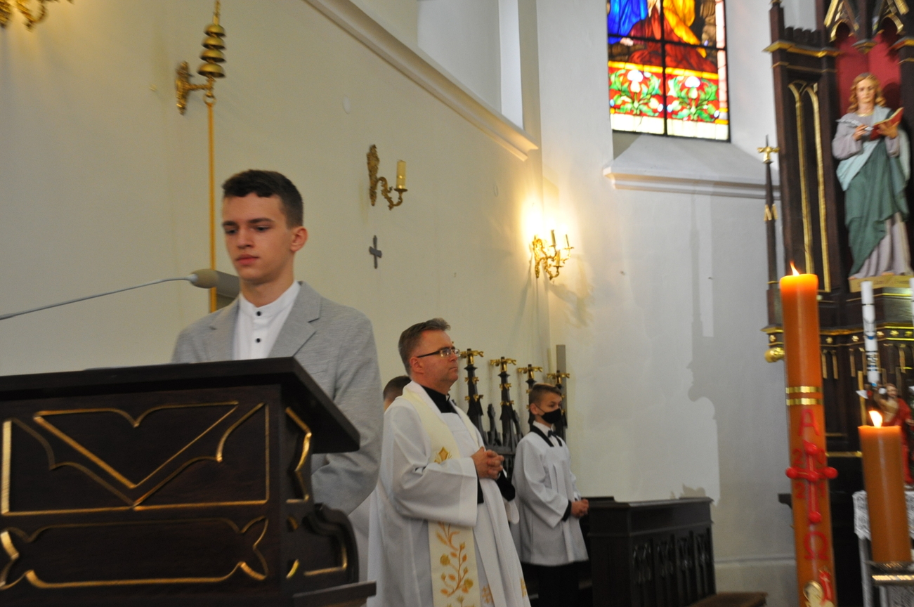 18 kwietnia na Mszy św. o godz. 12.00 Ksiądz Biskup Grzegorz Suchodolski udzielił naszej młodzieży sakramentu bierzmowania. W trakcie Eucharystii podczas procesji z darami, młodzi przynieśli jako swój dar dla Kościoła dwa nowo zakupione czerwone ornaty i ofiary na Misję.  Niech Duch Święty, którego otrzymali umocni ich do mężnego wyznawania wiary. A pamiątkowe dla nich, krzyże które na zakończenie Eucharystii zostały poświęcone  i rozdane niech im pomagają w trwaniu przy Chrystusie.