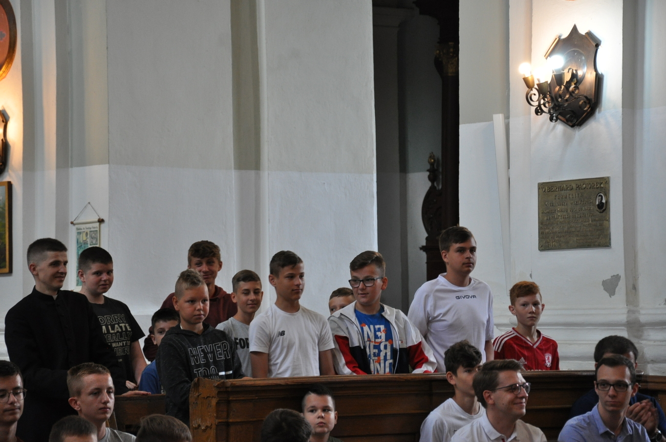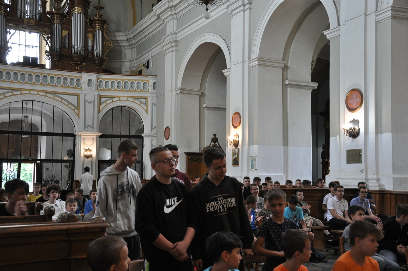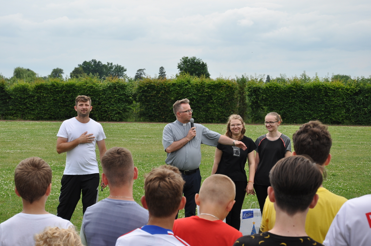 26 czerwca w Woli Gułowskiej odbyło się koczowisko dla ministrantów i lektorów z dekanatu Adamowskiego i obydwu Łukowskich. Organizatorem wydarzenia był ks. Sławomir Pękała. Była wspólna Eucharystia, potem pokaz przygotowany przez strażaków. Następnie pora obiadowa więc trzeba było posilić ciało – uczestnicy udali się do stołówki na zjedzenie bigosu. Po przerwie odbyły się rozgrywki sportowe między przybyłymi grupami ministrantów. Na końcu podsumowaliśmy rozegrane mecze. Uczestnicy otrzymali nagrody. W ramach pamiątki dostali bransoletki i obrazki. Wspólną imprezę zakończyliśmy grillem i deserem. Chłopcom bardzo się podobał pierwszy dzień wakacji, nie mogą się doczekać kolejnych meczów.