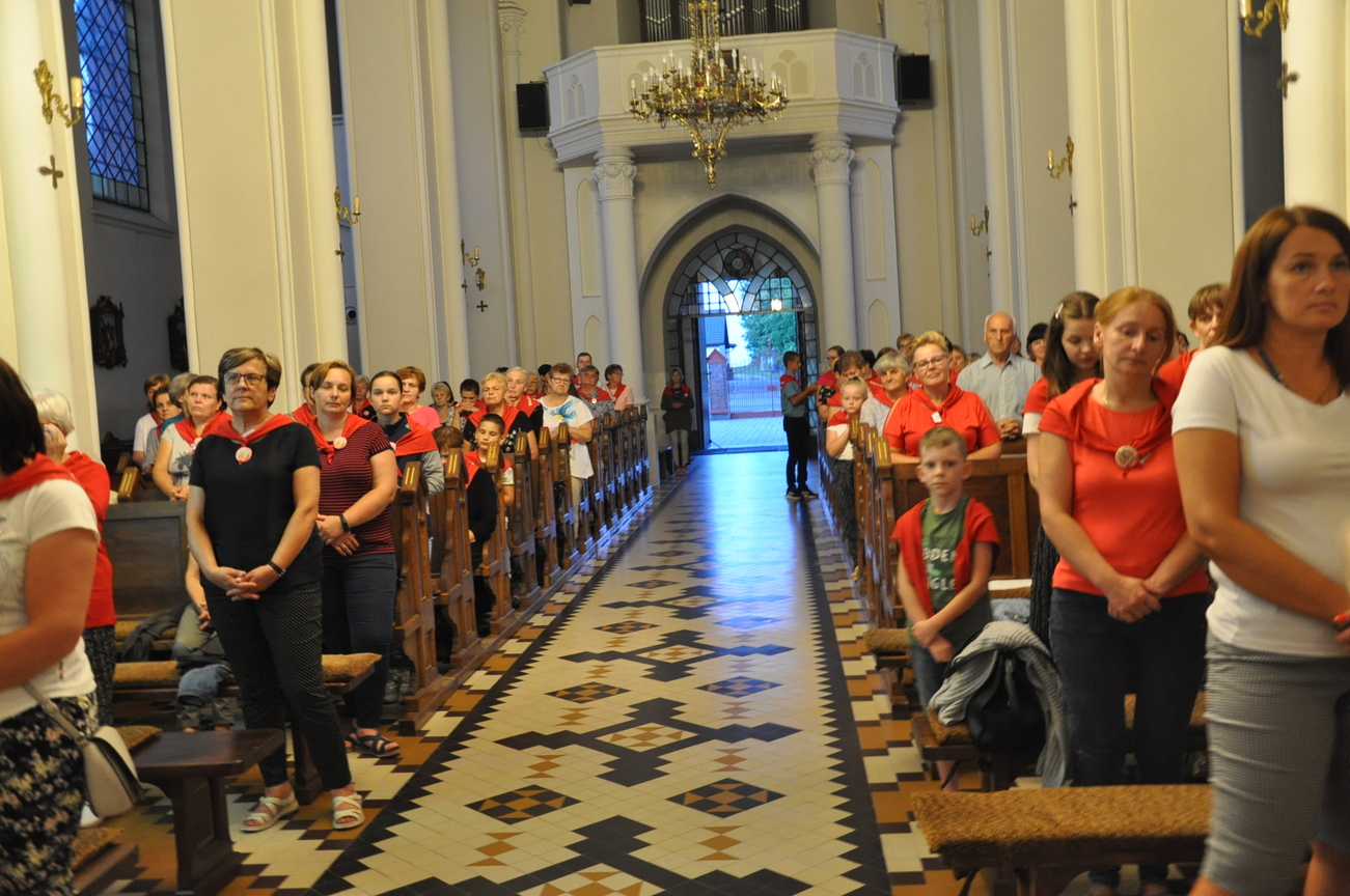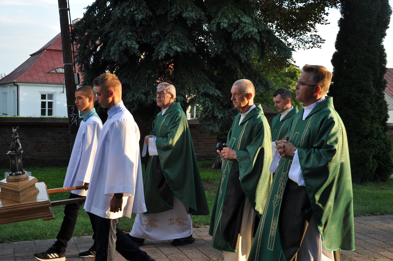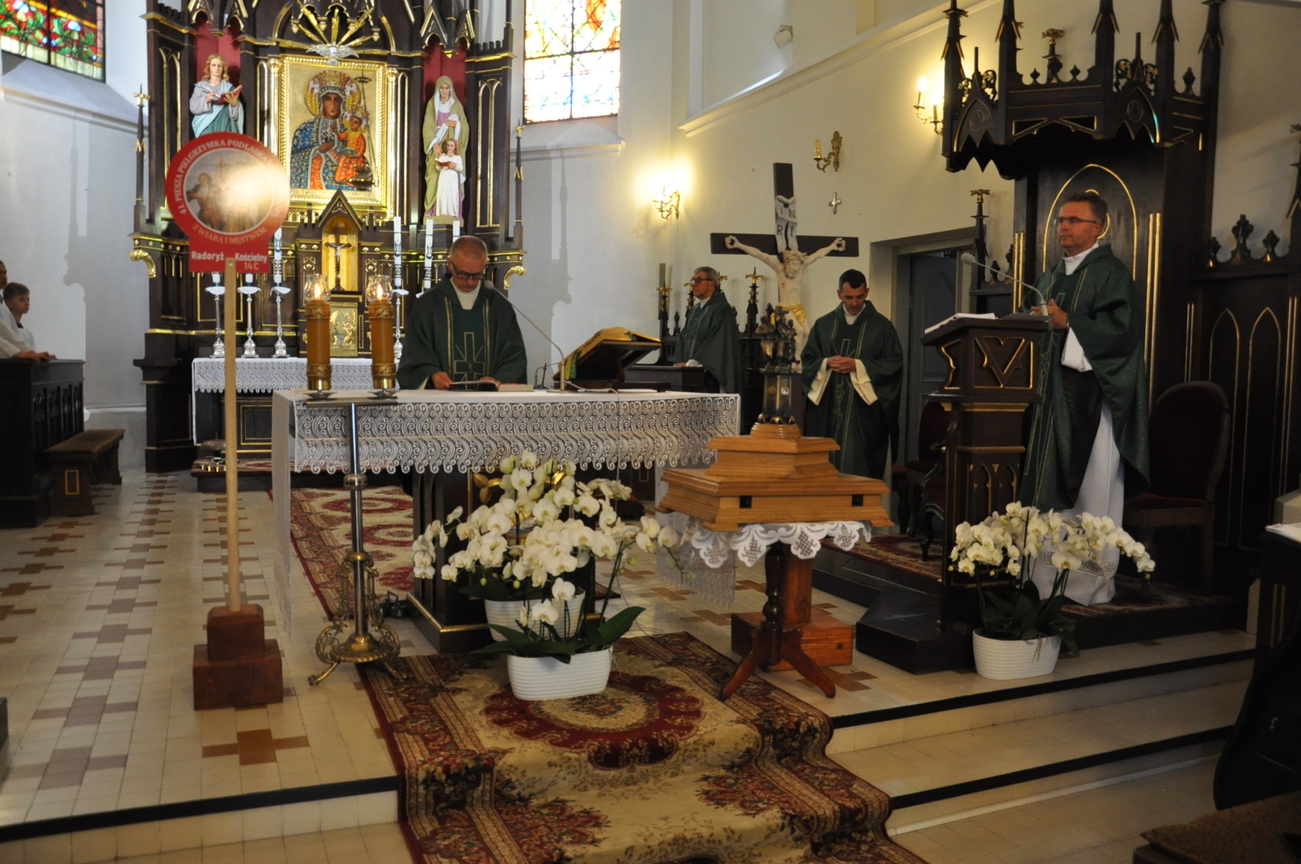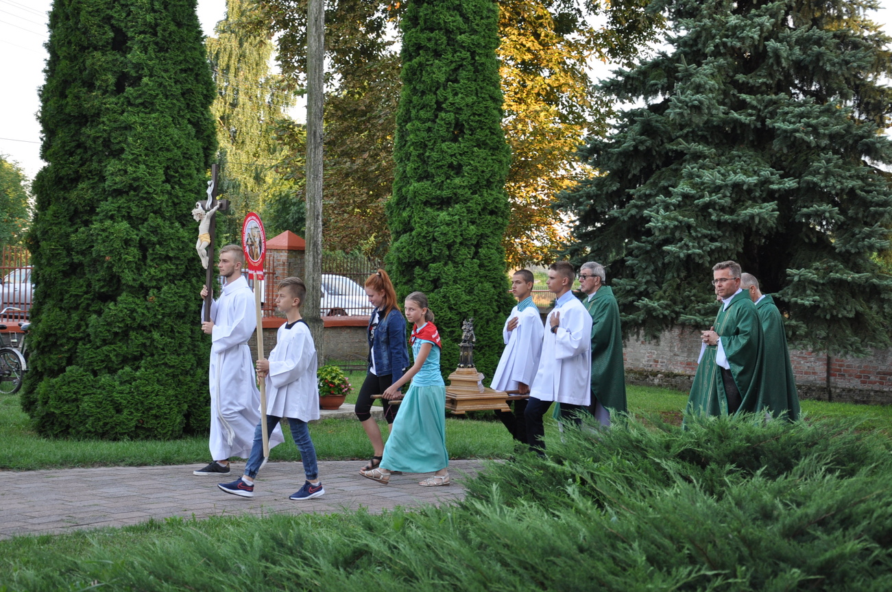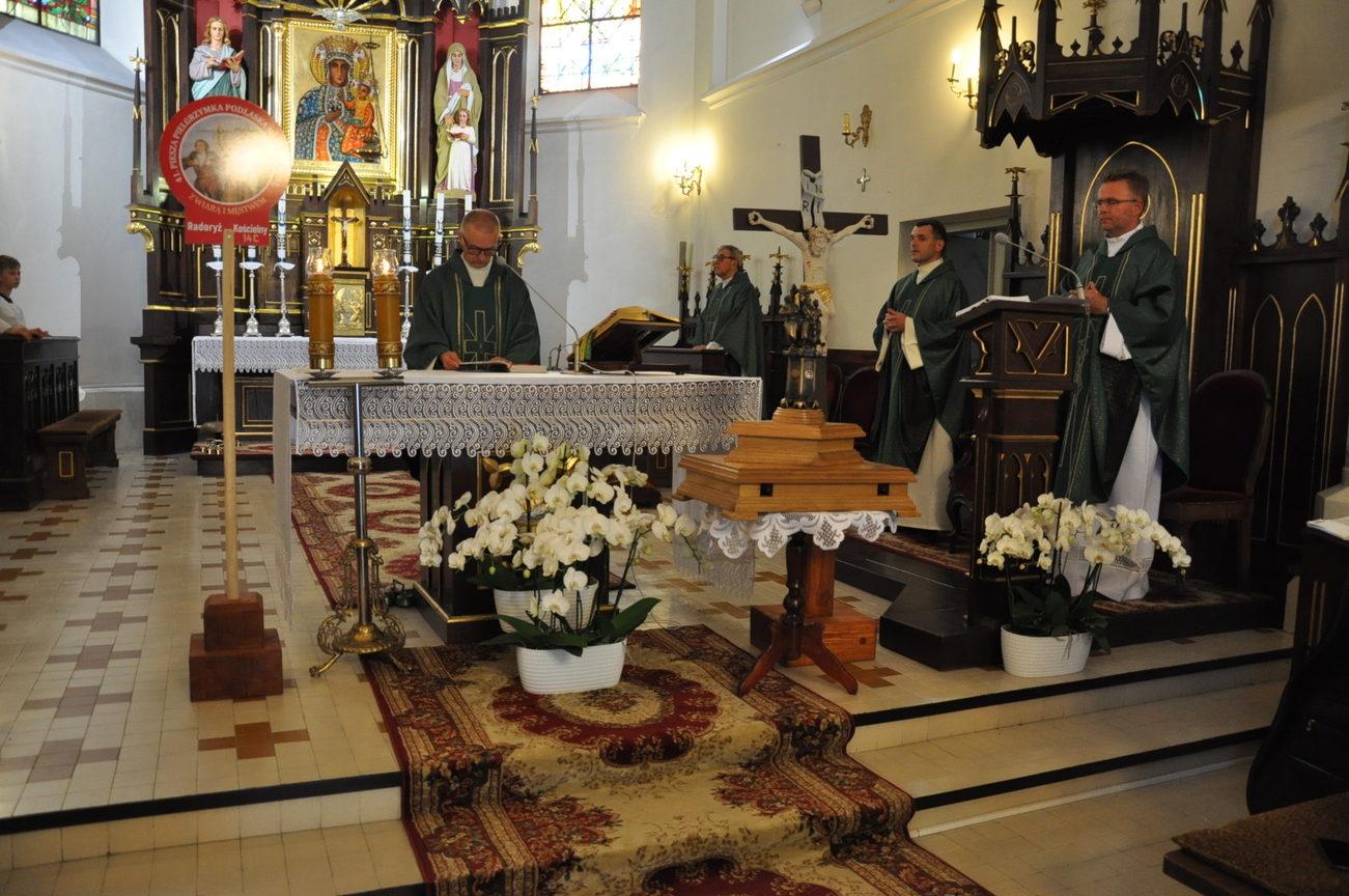 Dzień dzisiejszy naznaczony był wieloma symbolami. W uroczystym, procesyjnym wejściu został przyniesiony przed ołtarz znaczek tegorocznej pielgrzymki, oraz kopia Krzyża Pratulińskiego, którego poświęcenia dokonał ksiądz proboszcz Zbigniew Daniluk.